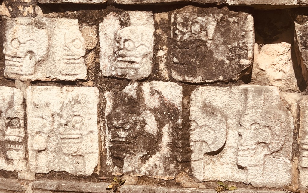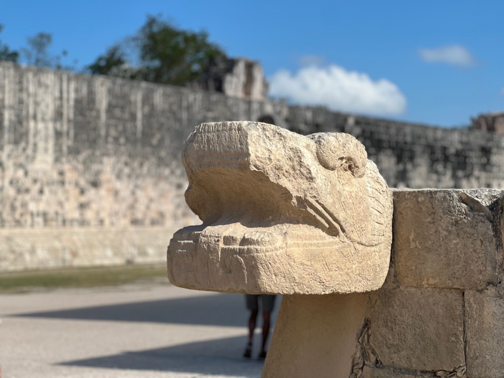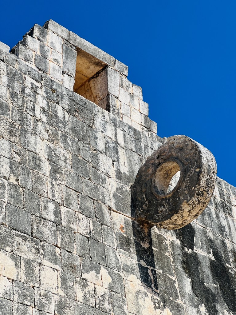 Just across from El Castillo is the ball court, where Mayans played a 7 aside game of ball – where they tried to get a 3.5 kg ball through a 20 foot high hoop using only their shoulders, hips and knees. Think Quidditch, but without the brooms and Golden Snitch. The winning Captain (or maybe the losing one) had the honour of being sacrificed. Yay! The 7 players per team is believed to represent the 7 pleiades.