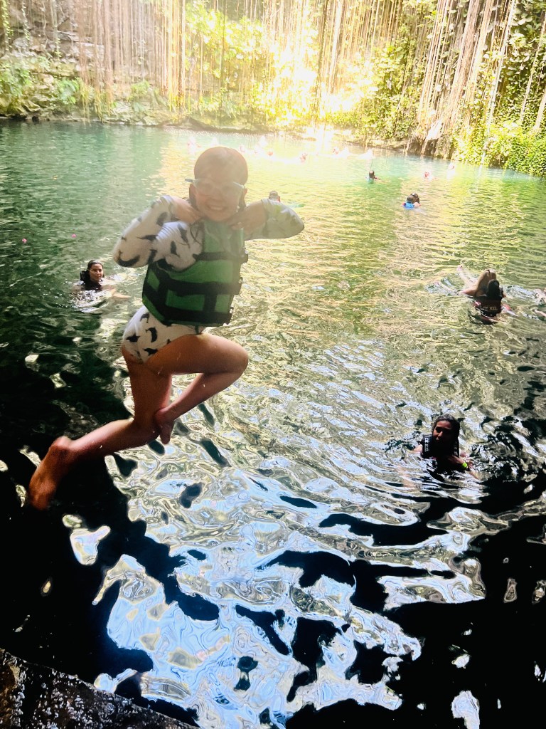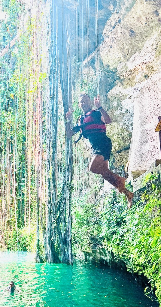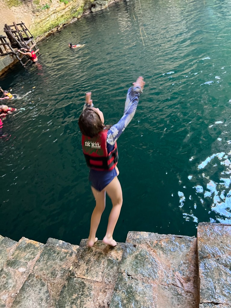 We made our way down to the pool. For the first hour or so we shared the cenote with about 10 others, floating in the warm water, marvelling at the rock formations and vegetation, and jumping off platforms of various heights.