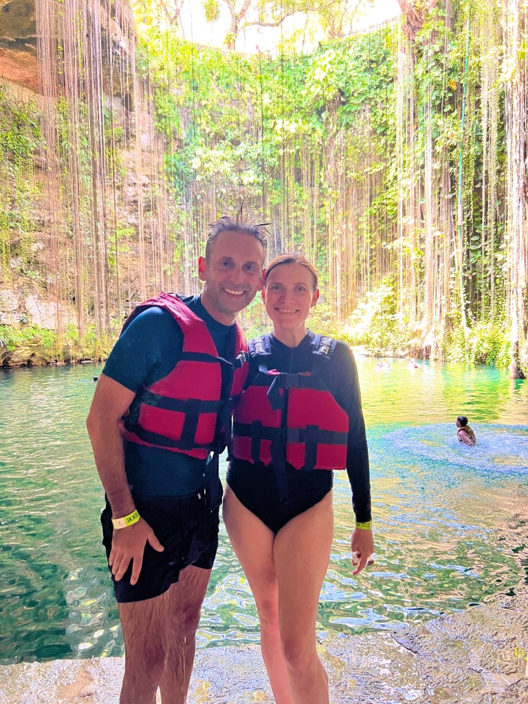 After 2.5 hours of Mayan history and with it getting harder and harder to escape the 35 degree heat or the busloads of crowds streaming in, we made our escape, navigated through the acres of gift shops, back to the car and onwards to ‘Ik Kil’ for our first cenote experience.