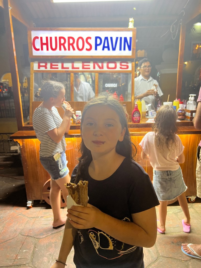 Our last night in Valladolid was spent eating excellent tacos across from the main square, having a drink and watching the sunset from an awesome rooftop bar, and then watching the kids enjoy local crepes and churros whilst listening to music in the park.