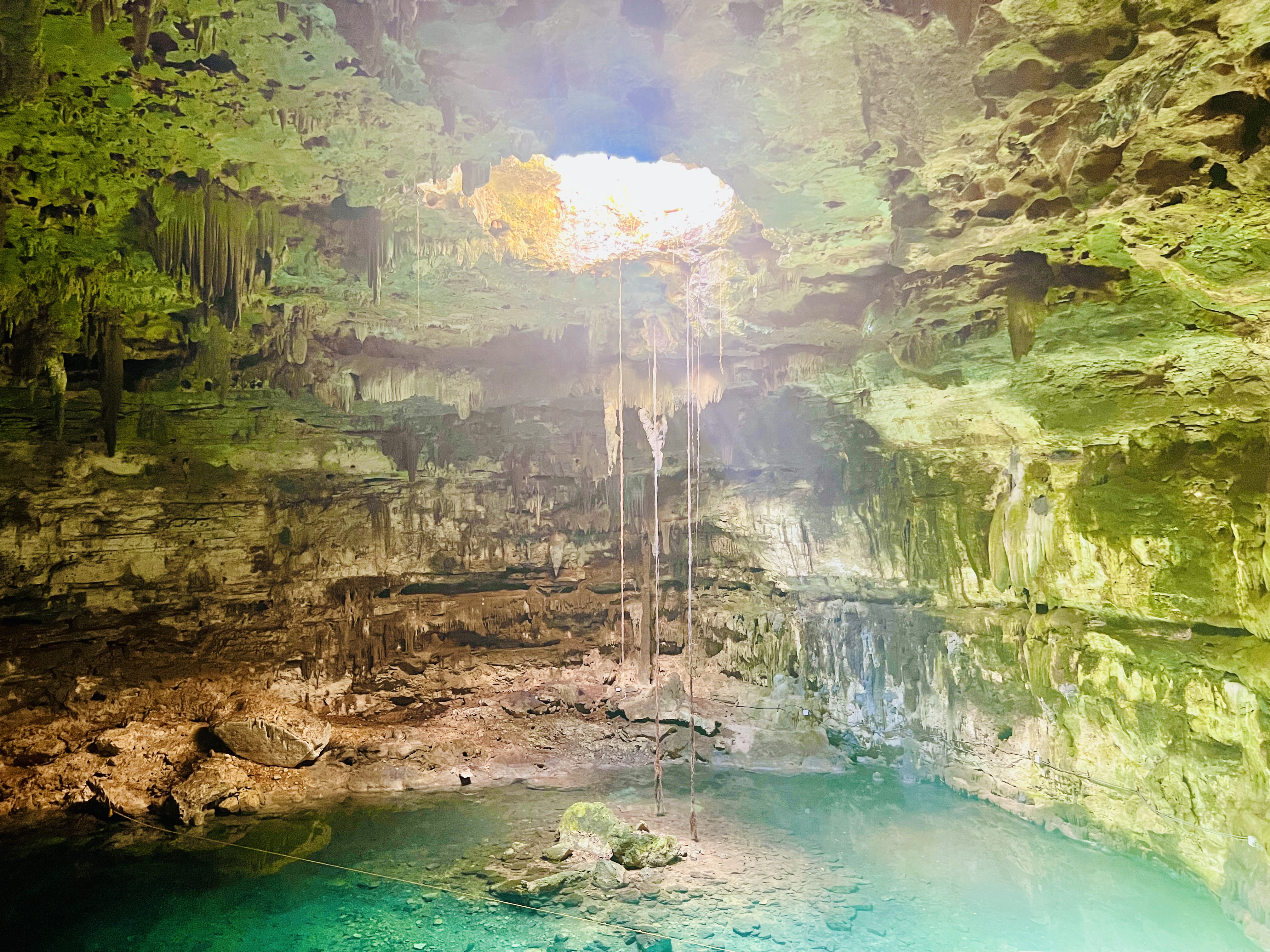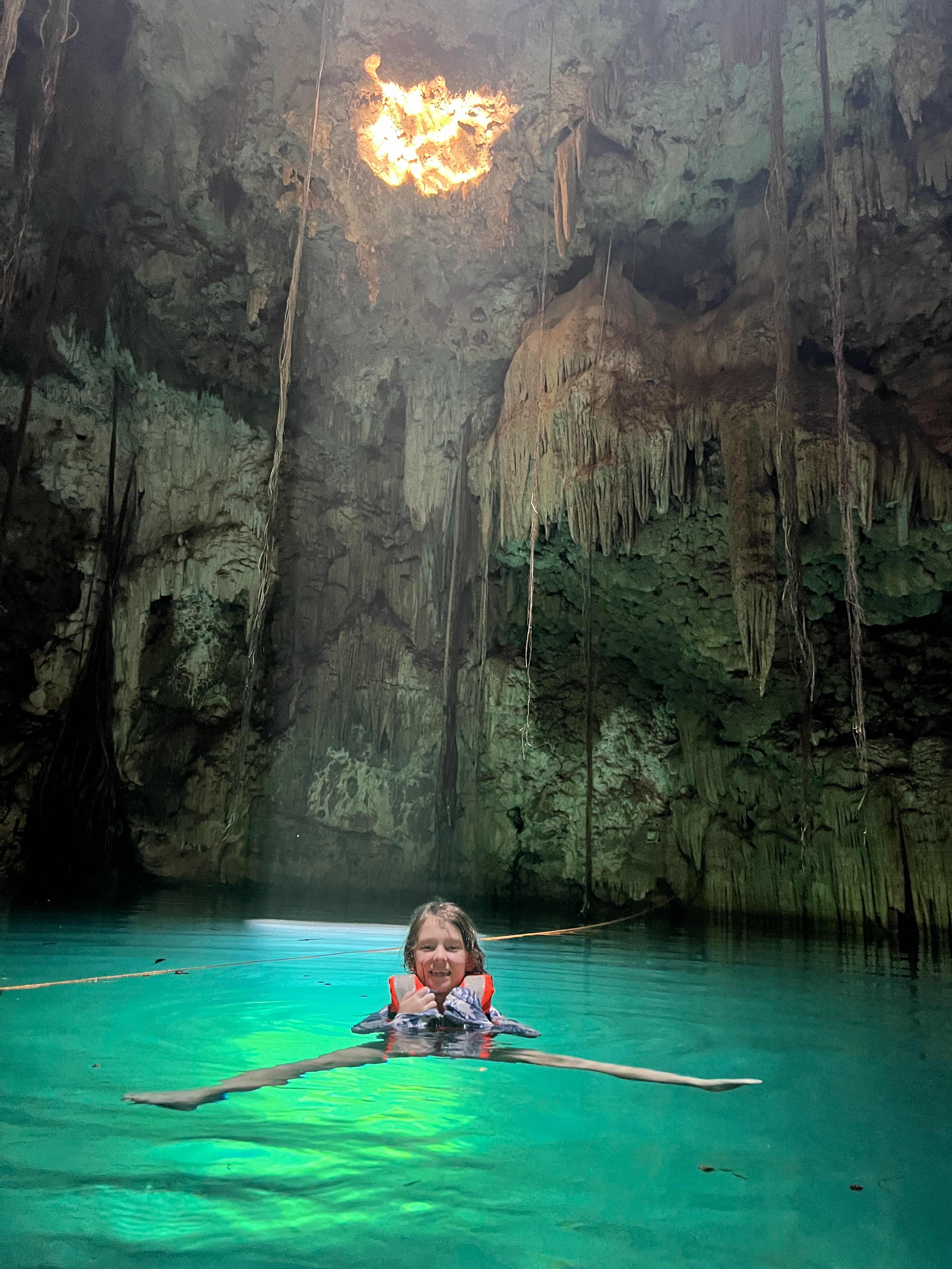 The second of cenote, Cenote Xkeken, was basically a cave, with a single narrow hole in the roof which cast a spotlight into the sparkling water. Stalactites dripped down from the ceiling and bats nestled in the crevices. It was a place of incredible peace and beauty, until we arrived at least. Within minutes the only other 2 people there had escaped our children, and we had the place to ourselves for the next half an hour.