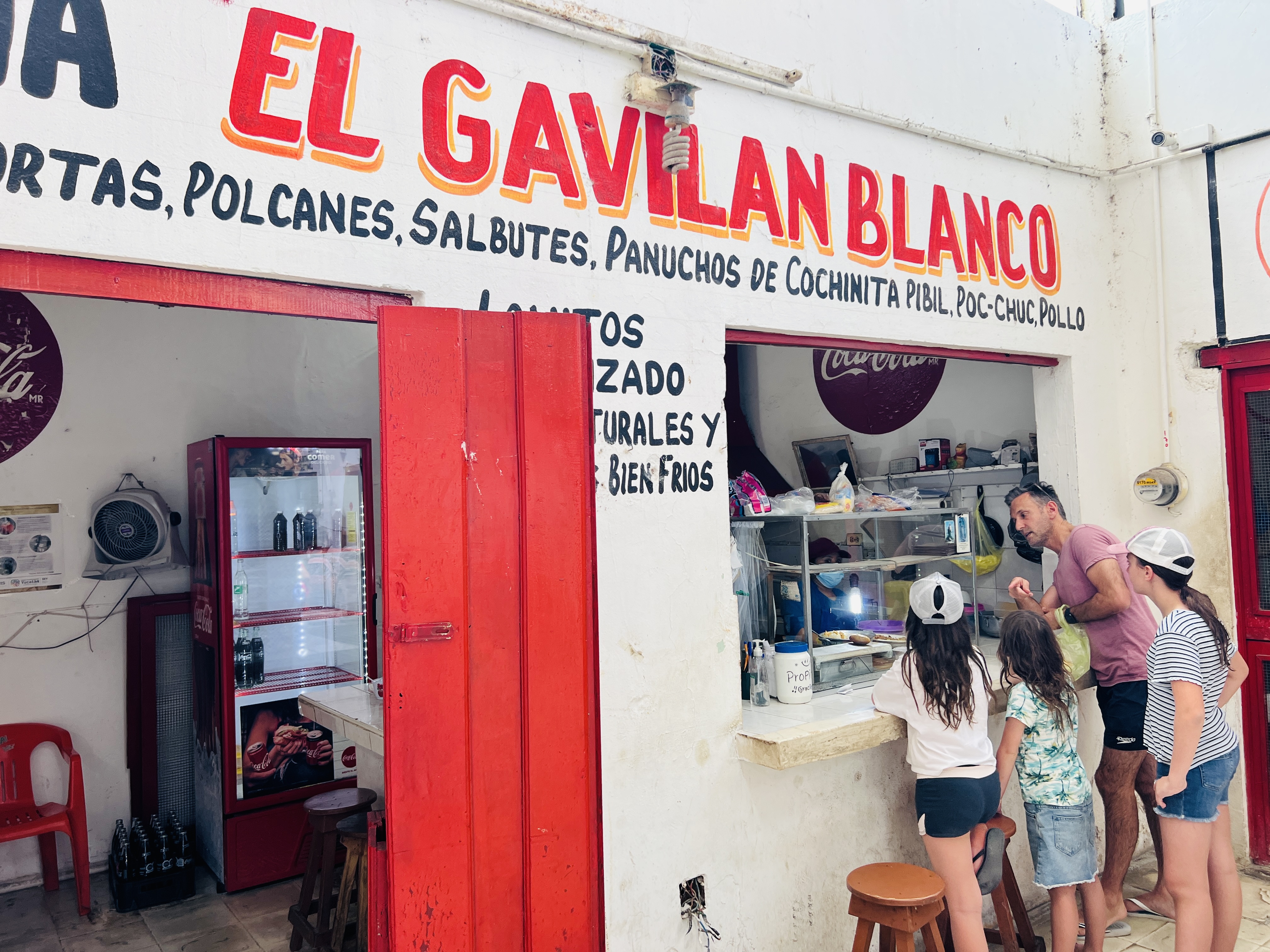 In time, Sena announced she was done with cenotes and wanted to move out for lunch. We doubled back to Valladolid for the last time and made our way to the fresh food markets. We made our way paste the butchery section, the kids openly staying at the entire animals up on hooks in the 30 degree temperatures, and headed for the relative safety of the fresh fruit. Fistfuls of fresh pineapple, mango and melon later, we feasted on amazing fresh tacos and walked out with the whole experience costing less than $10 for the family. Now this felt like travelling.