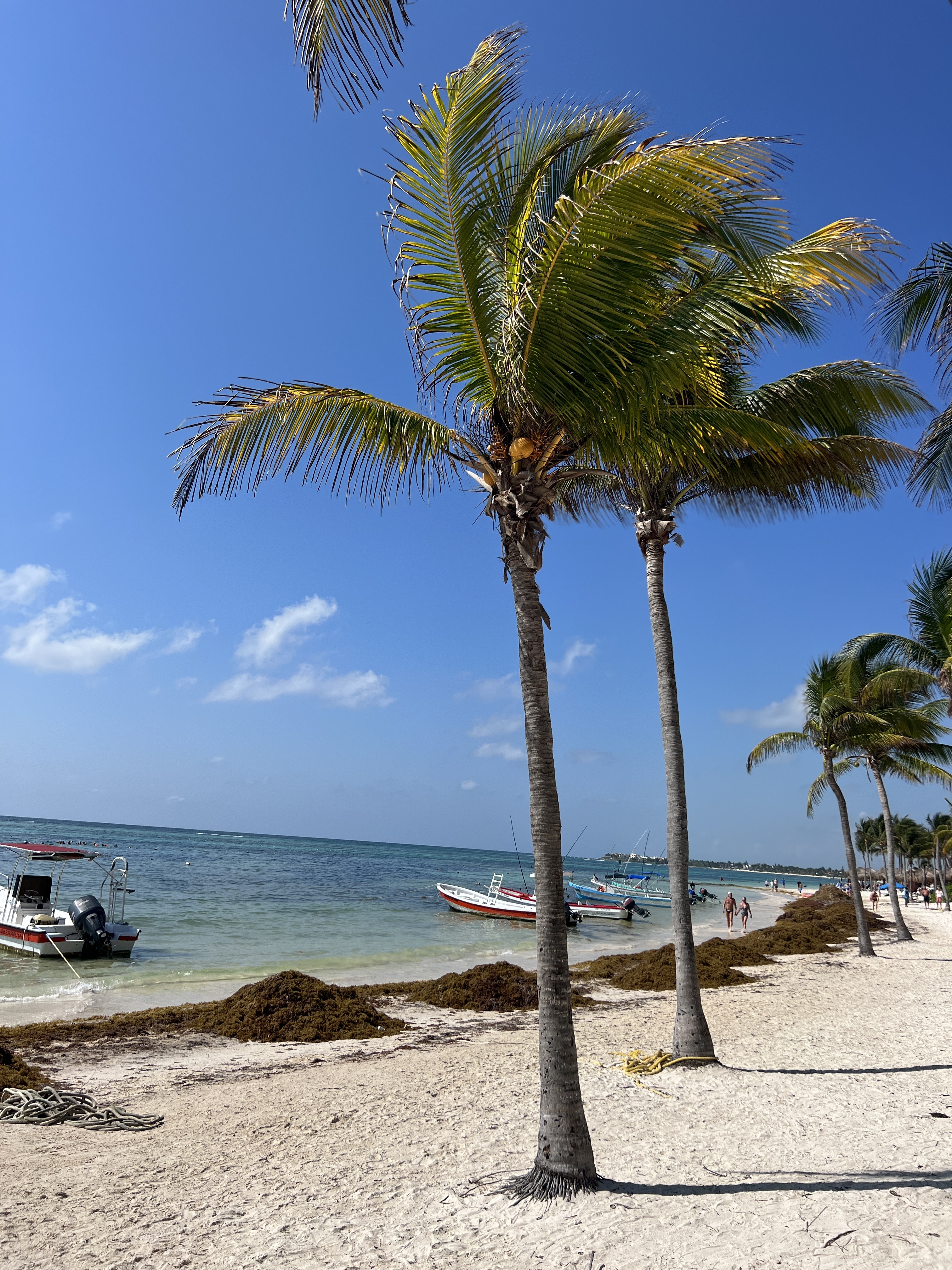 Alas, no. We were greeted by large mounds of seaweed, brown water and a run of rustic beach bars with (unsurprisingly) no one in them. There were scores of empty boats lined up along the shoreline and in the water. The ever-reliable coconut trees still stood sentry over the scene, but they somehow looked a little sadder than we remembered.