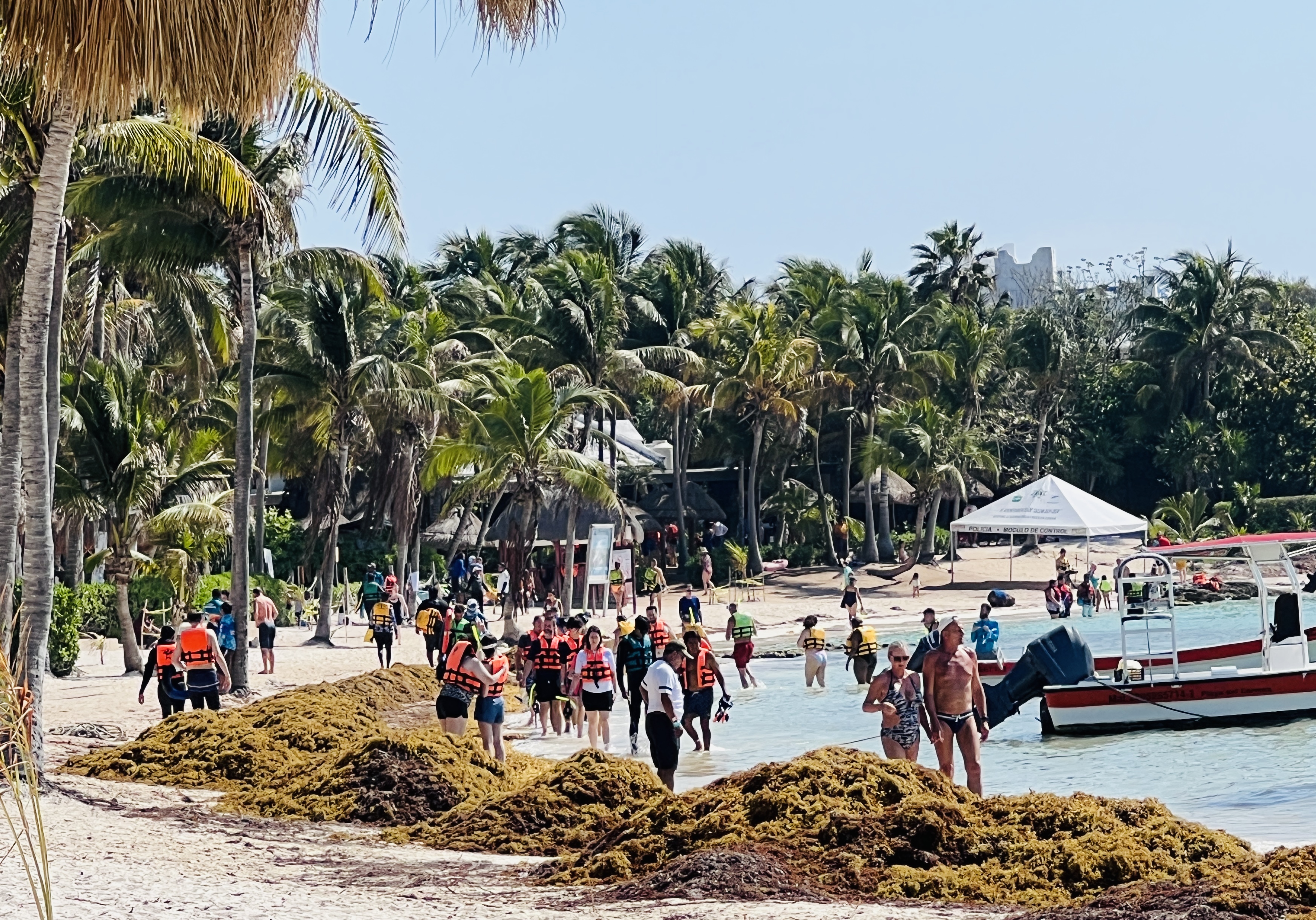 Tulum feels particularly vulnerable to this, mainly because of its pristine point of departure. Its beaches are still coconut palm fringed, but the water is brown, the sand is brown and it all stinks like rotten eggs.