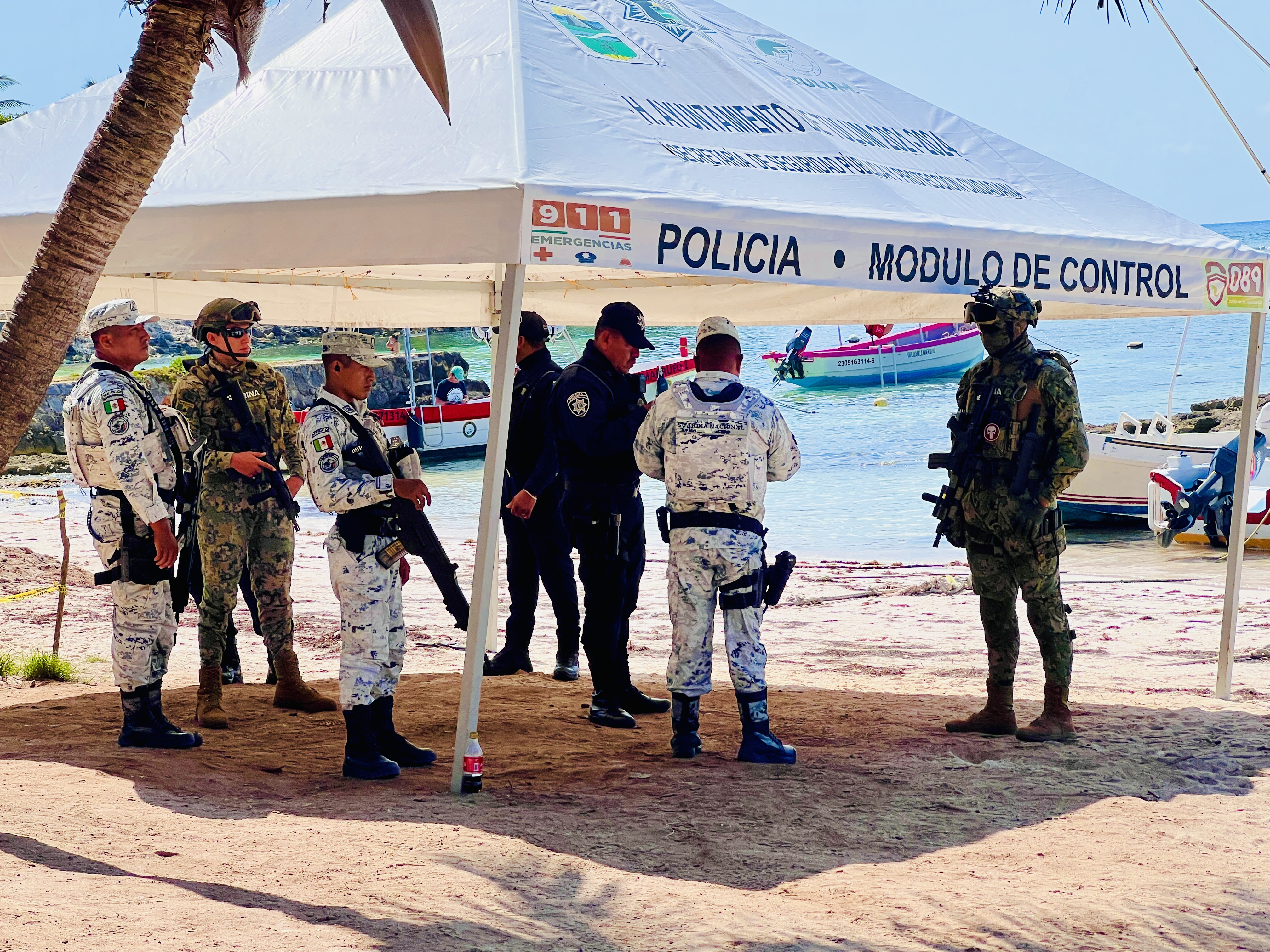 Unfortunately, we were pipped at the first point. There was an impromptu police barricade at our turnoff, and we couldn’t head north. Unfazed by this minor setback, we did a u-turn and went the long way around, up the highway and down towards the famous Mayan ruins. We passed the first throng of people trying to convince us to park with them (still some 2 kms from the beach). We lied our way passed two armed check points, claiming a reservation at a local hotel. We hit the beach road and found a parking area, negotiating a $20 parking fee and the vague promise of another $100 of consummation at a nearby restaurant that we had no intention of ever visiting.