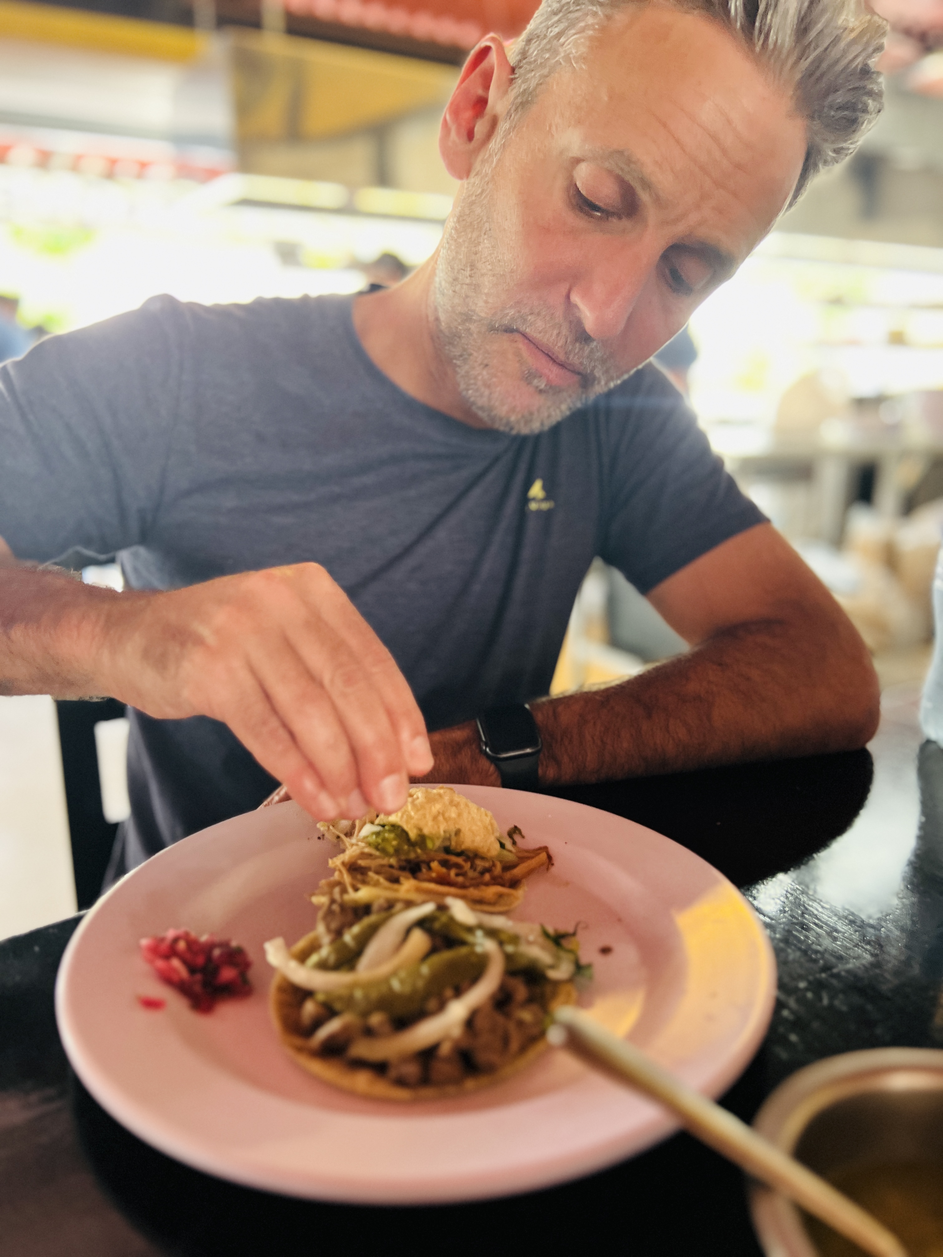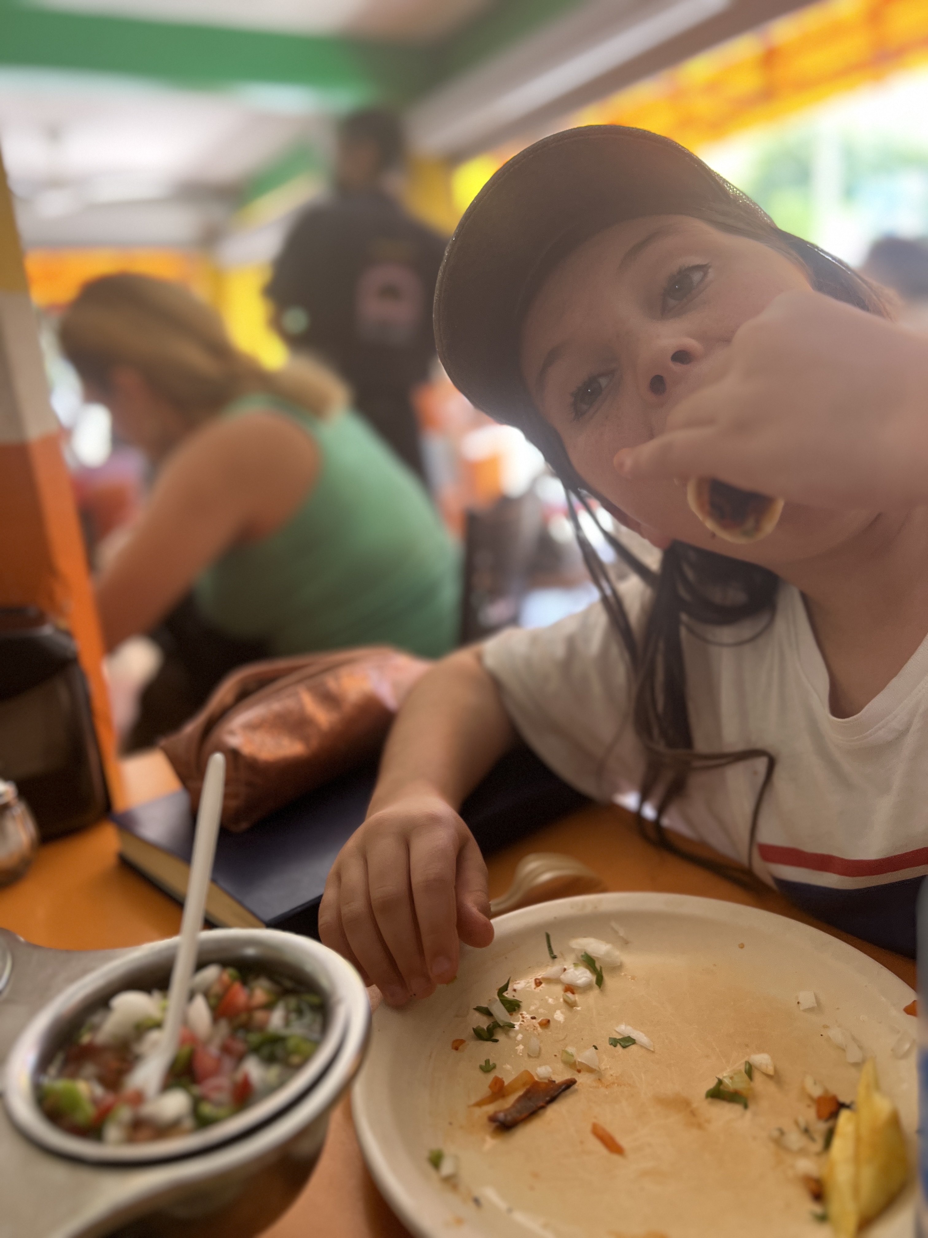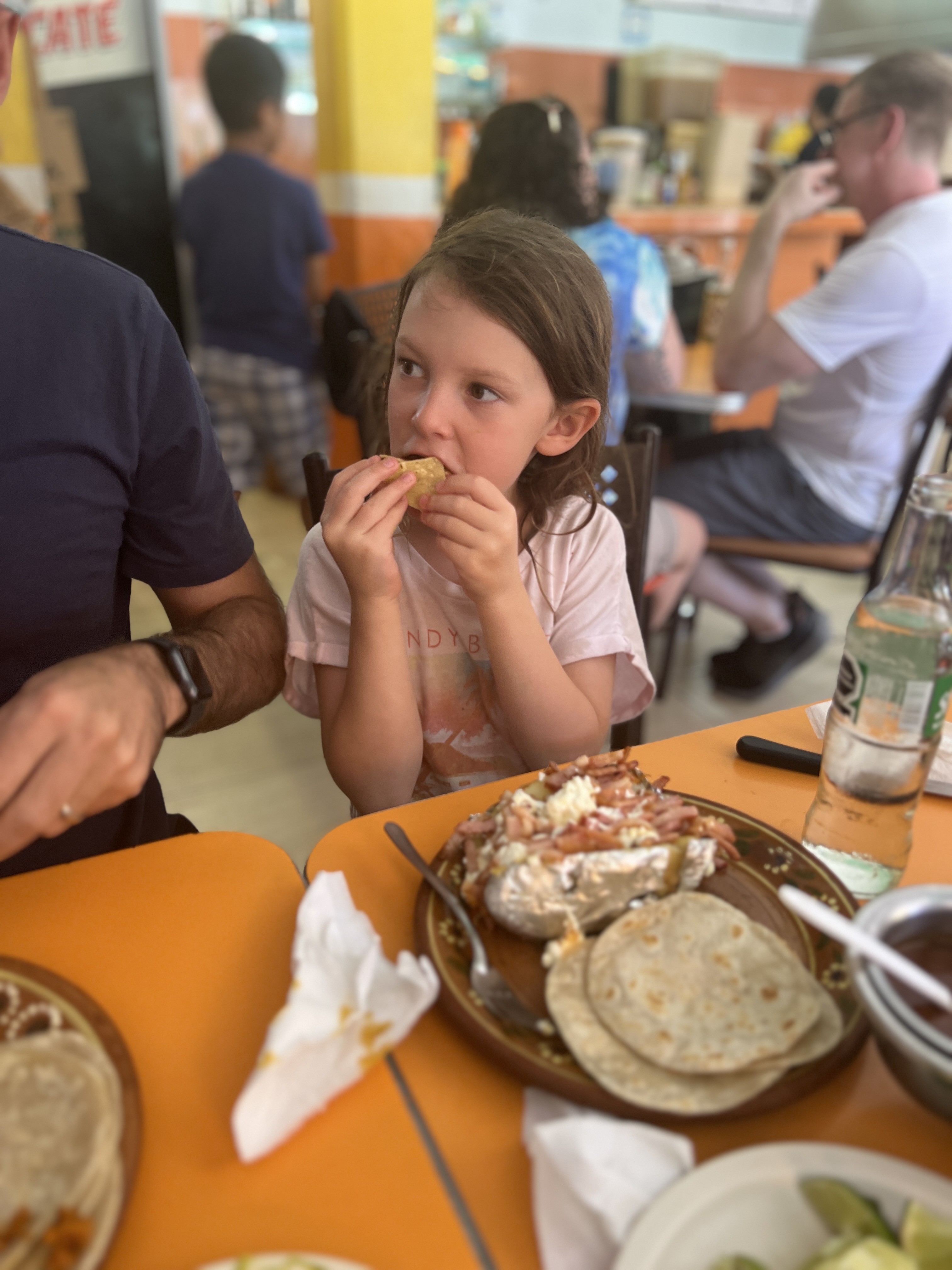 Our first stop was Taqueria Honorio, a local restaurant serving tacos and the like at scale to both tourists and locals (yes, they were here, just massively outnumbered) in a marketplace like setting. It was pretty well known and there was a line, but we got ourselves a table quickly enough and were treated to the best food we’ve had since Vegas, if not all trip (barring, perhaps, Barry’s tortilla). Simple, tasty tacos of pork, chicken, beef and vegetables with different accompaniments for each, served on a single plate with no cutlery. Drinks were served out of bottles with no glasses. These guys liked washing up as much as we did.