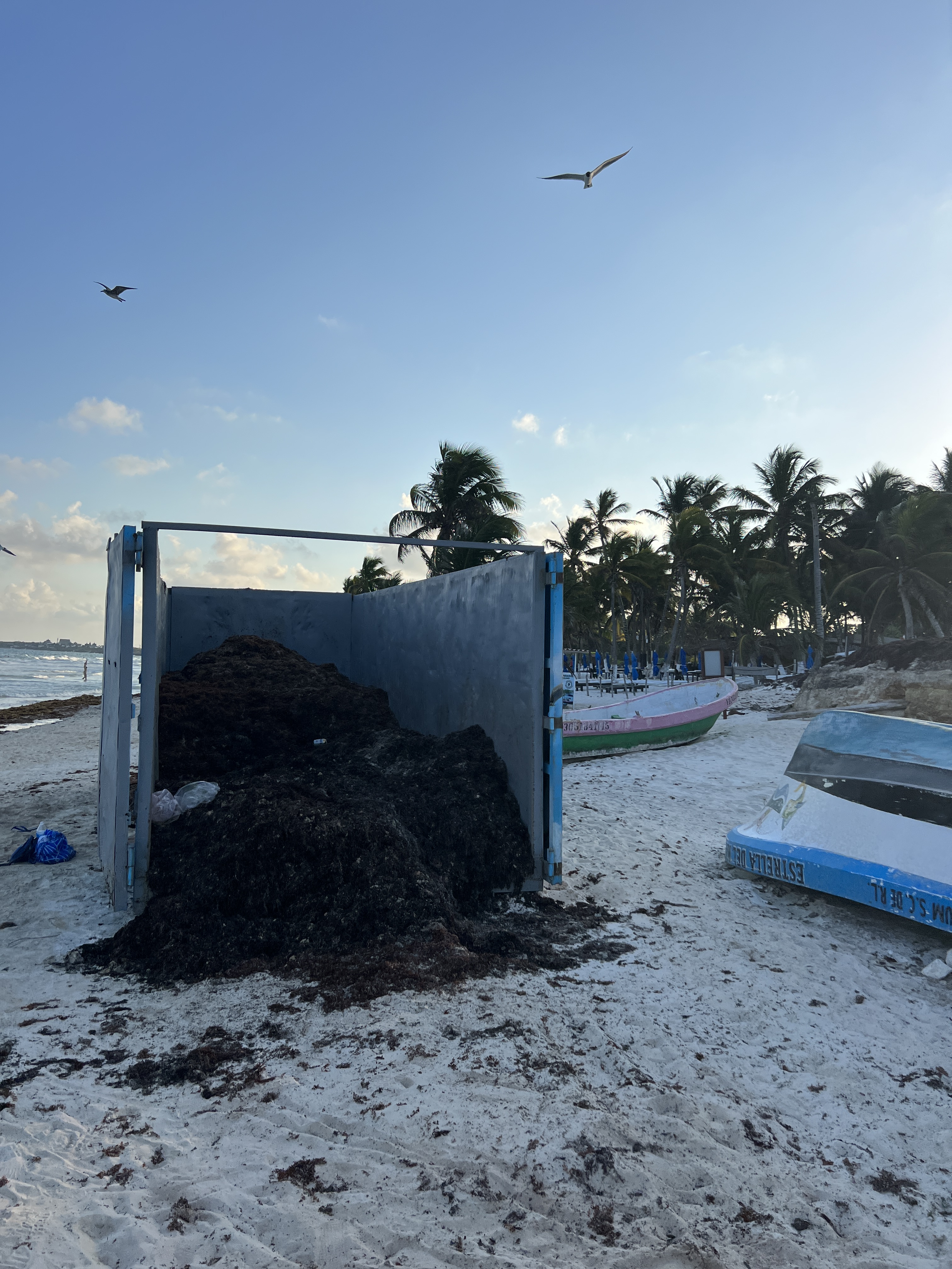 About 8 years ago, the seaweed arrived. This can’t be blamed on local overdevelopment. Apparently this is a result of both over farming and run off in the Amazon, global warming and hurricanes which has caused seaweed to proliferate and decorate many of the beaches in this area in enormous quantities. Sometimes it disappears for a day or two, or even a month in winter, but it always comes back and in quantities that create mounds taller than me on the beach.