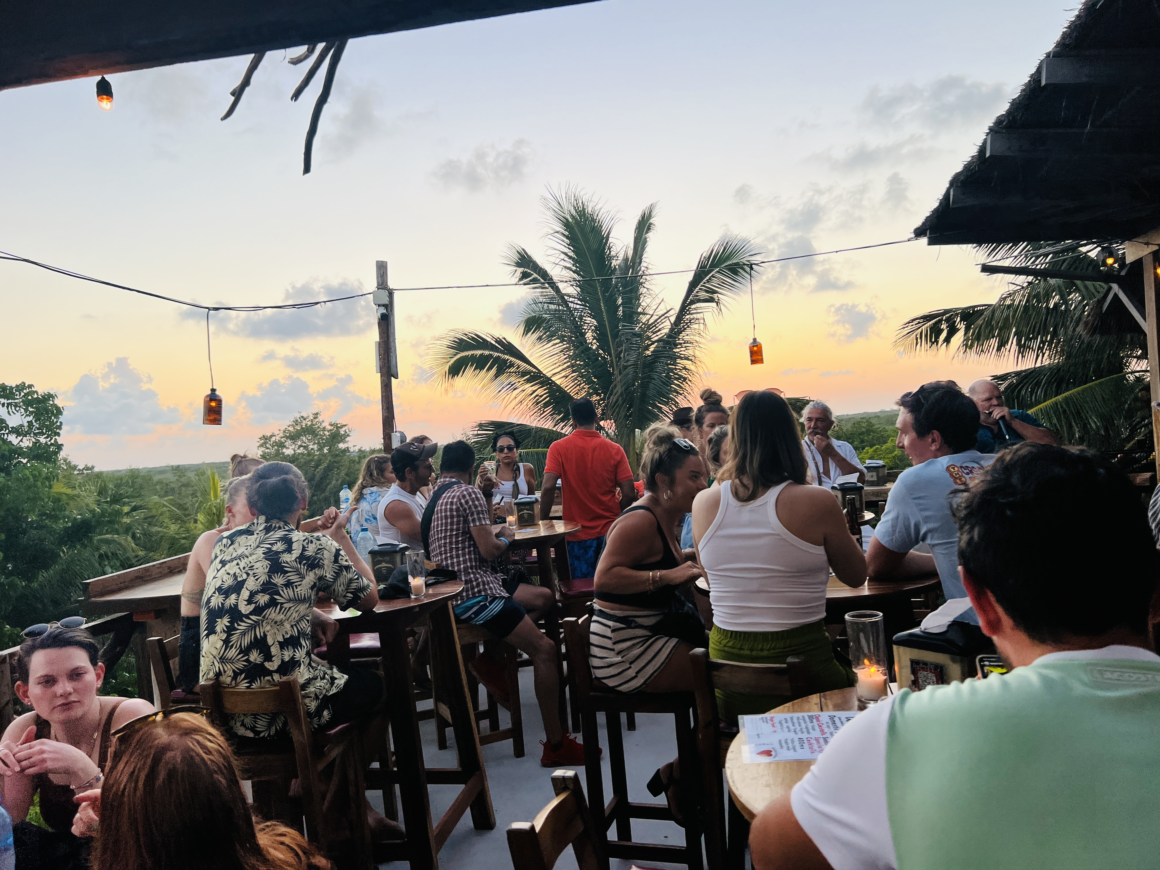 From there, we made our way a couple of kilometres south to the (even more) built up area of the beach where the majority of the major resorts, swanky restaurants and Ibiza-esque beach bars had sprung up. We found a place called Mateos Grill with a rooftop terrace and an incredible sunset over the jungle, very tasty Mojitos and a live band. We enjoyed a drink whilst Jessie and Sena wrapped themselves in a hammock to escape the noise.