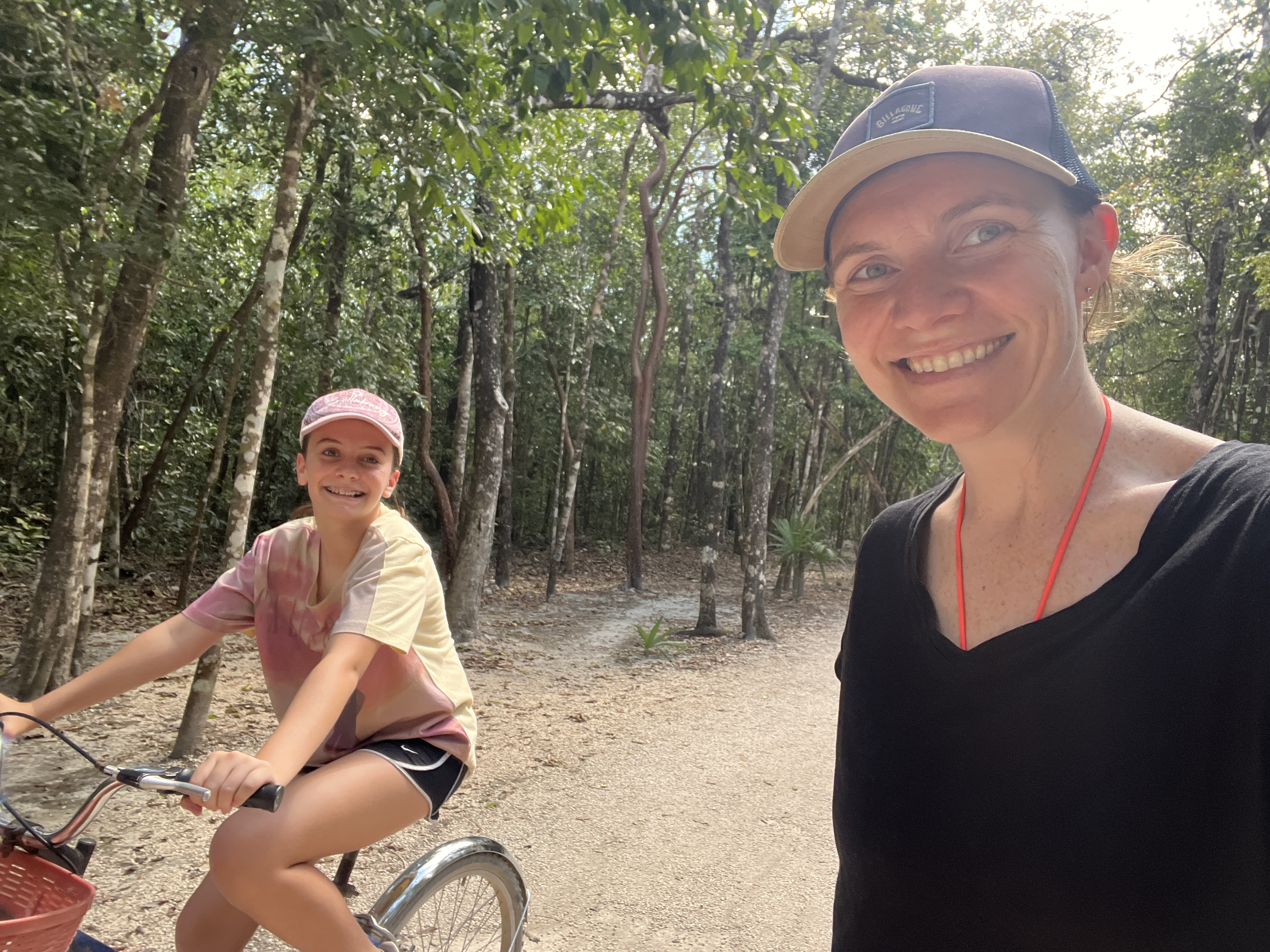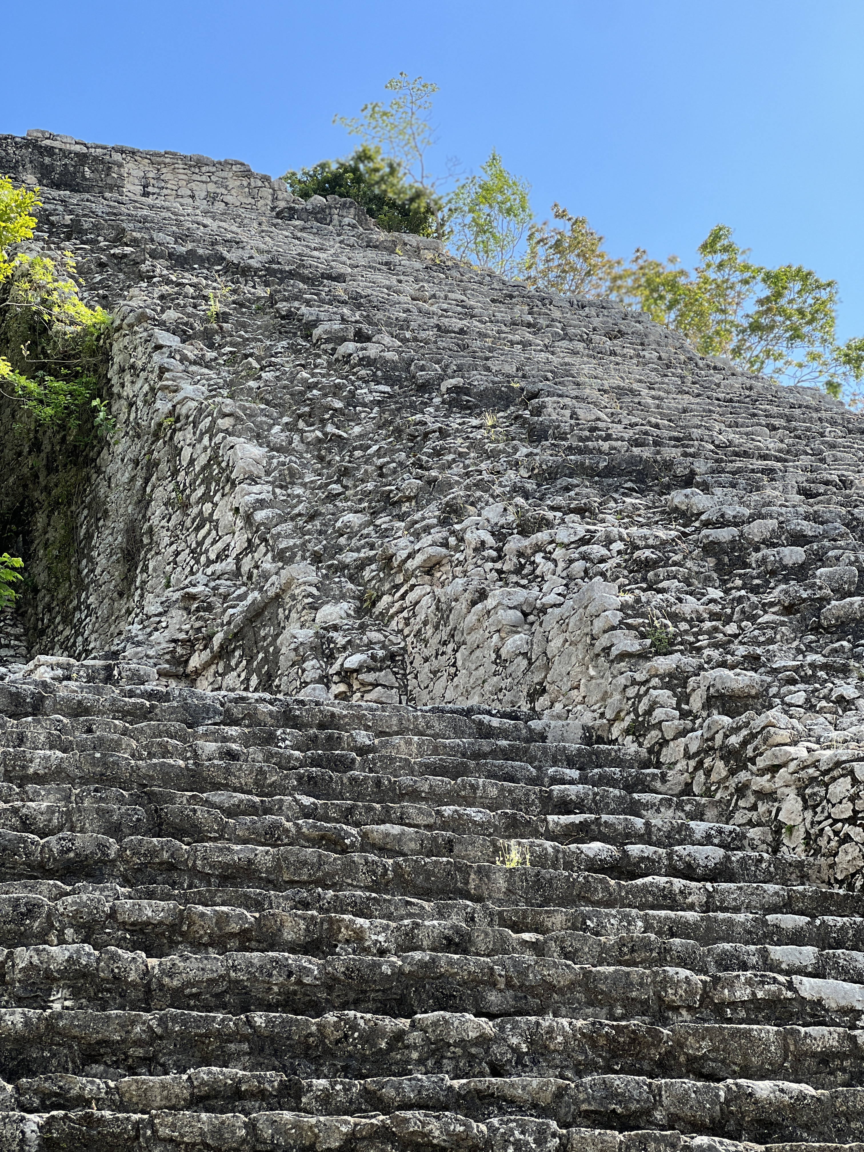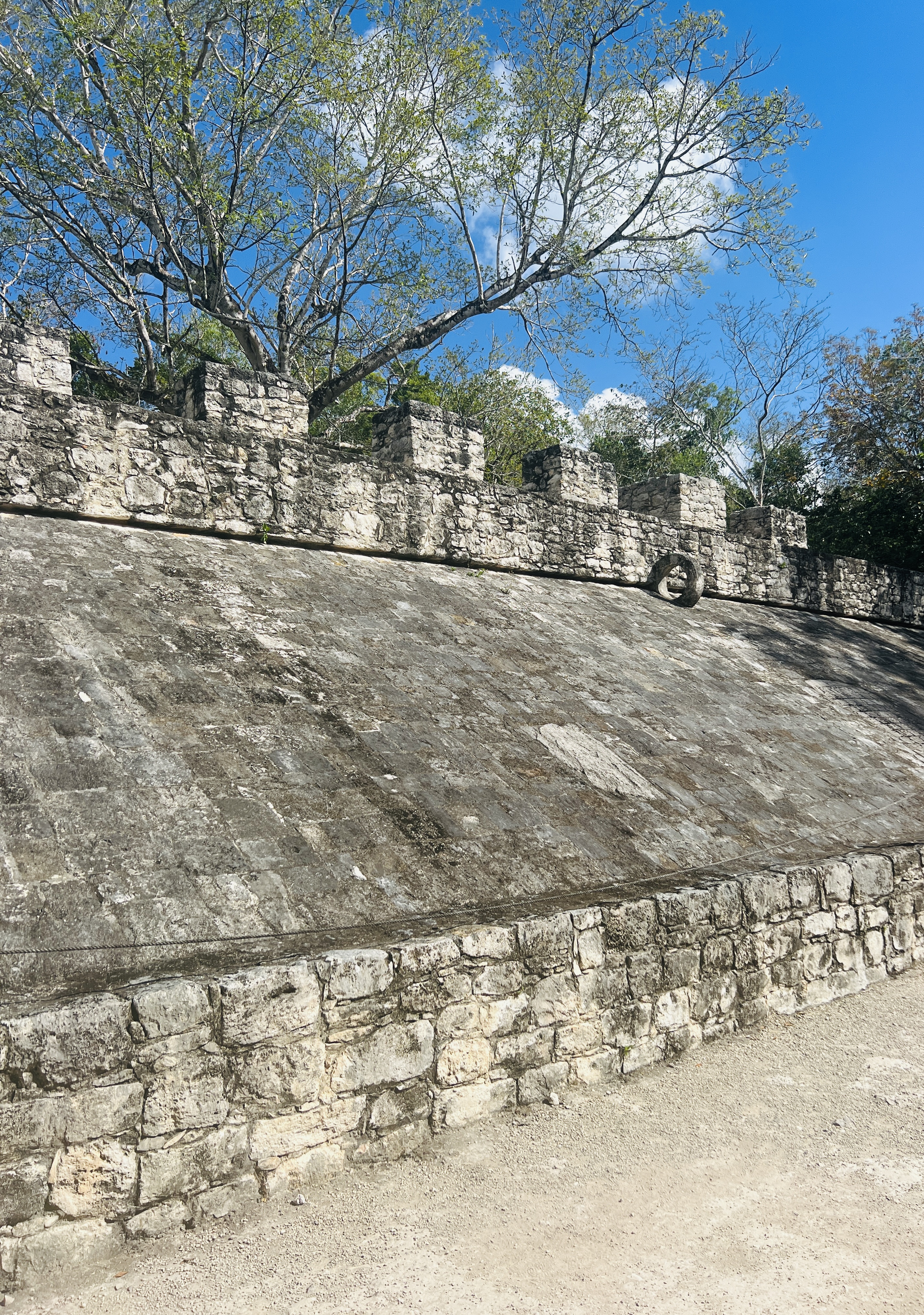Solution? Hiring bikes – and passing the morning riding around rocky white limestone paths under the shade of the beautiful trees between sites. We spent most of our time between Nohoch Mul and the really interesting ball court (much smaller than Chichen Itza, with much larger rings and sloped walls – making everything look much easier to win – and therefore die).