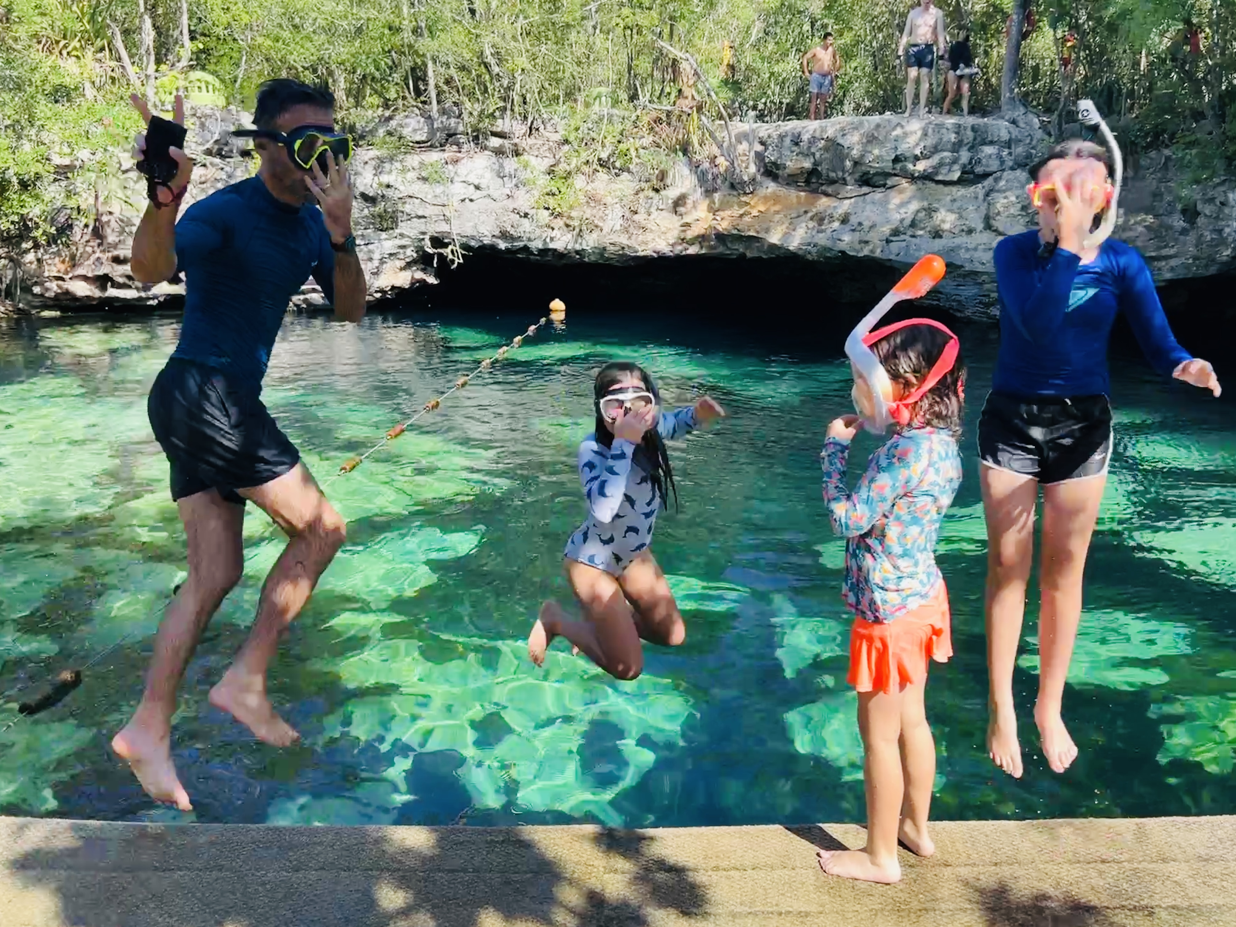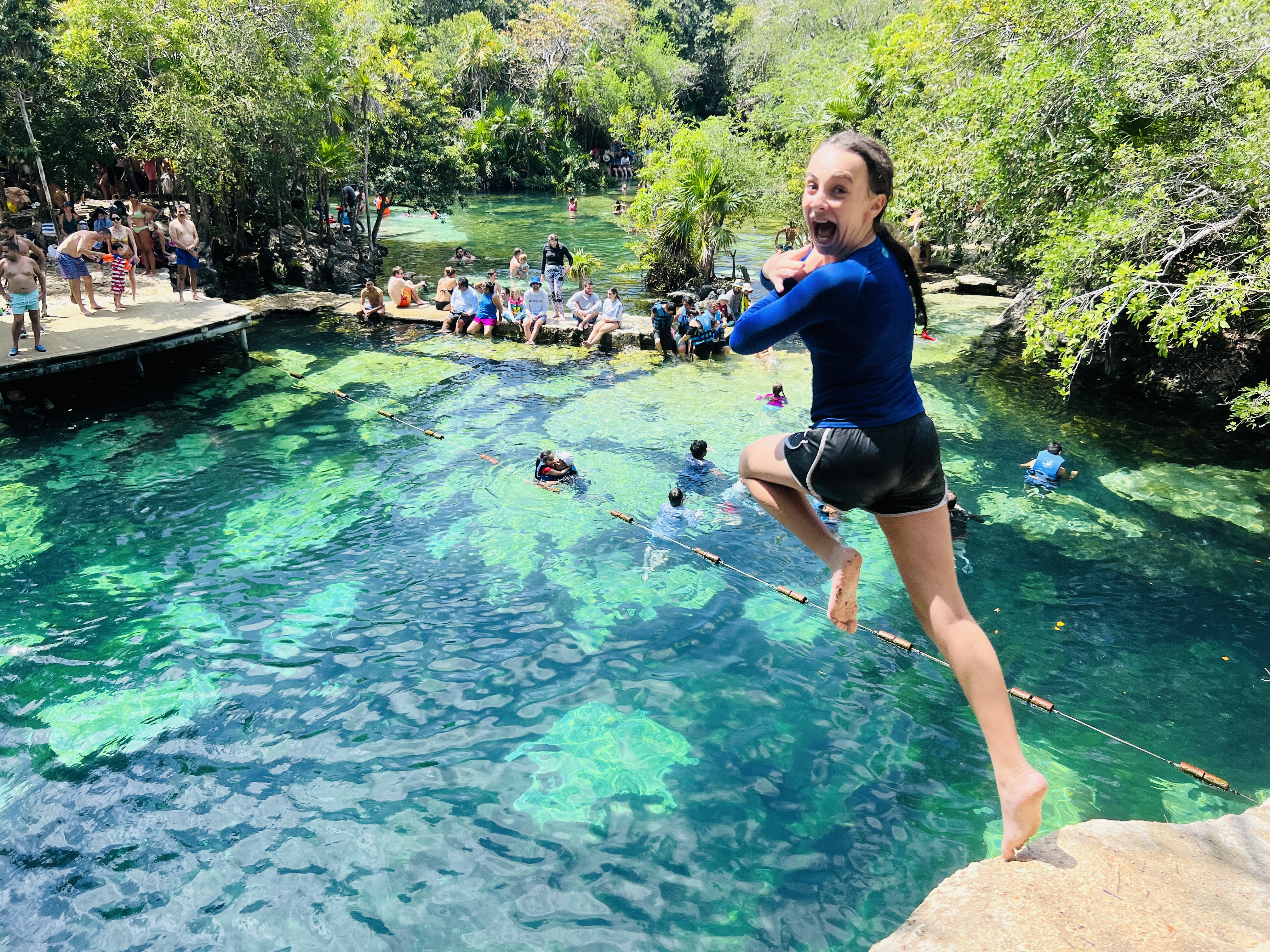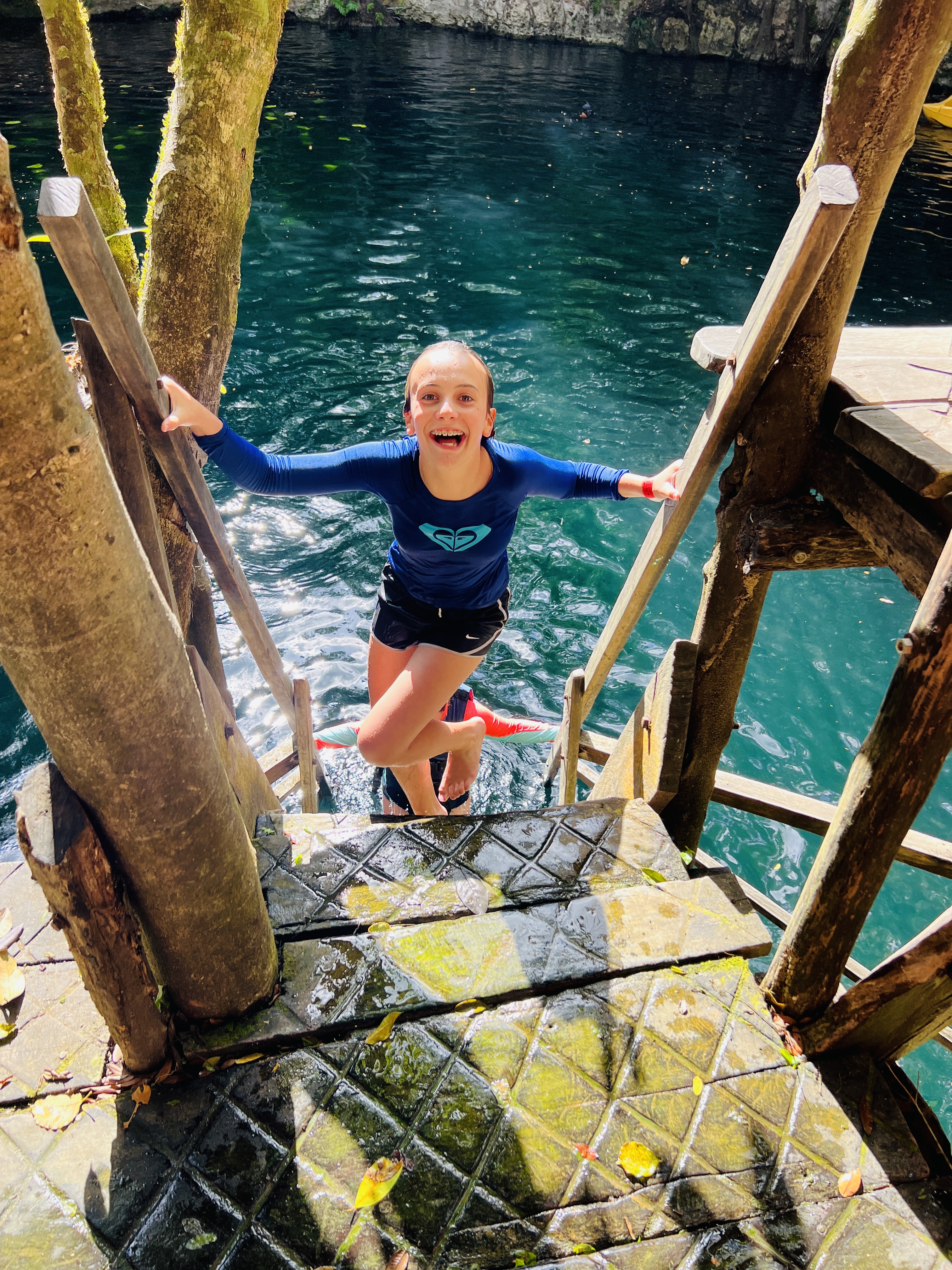 It was here that Sena discovered that she ‘liked to fly’ by throwing herself off high platforms into the water below. It turns out that she has an amazing head for heights and large drops – much to our (and others) amusement. (Side note here – the first time she lined up for the 4+ metre jump at this cenote we felt like some of the other visitors were going to call Child Protection on us, and there was a round of applause once she made the jump and safely surfaced with a big grin on her face). Needless to say, this was not her last jump.