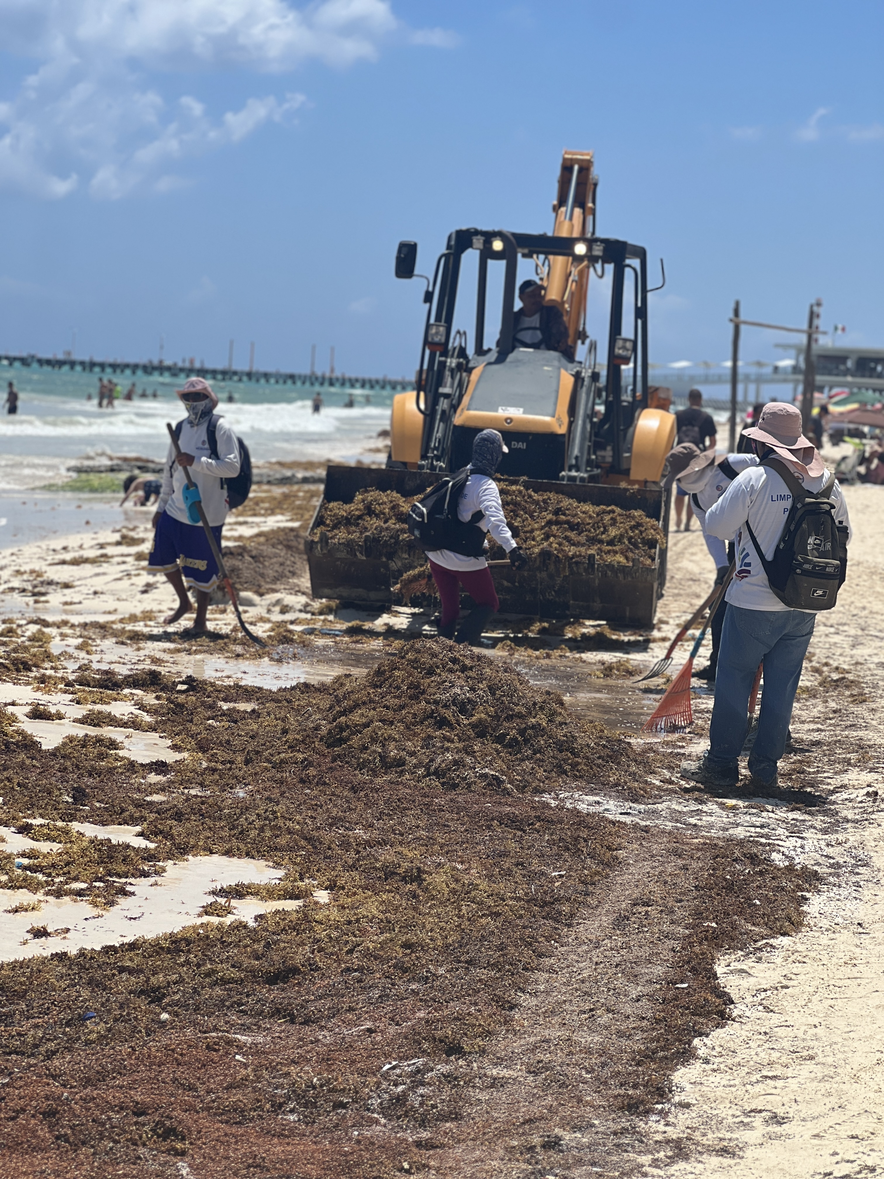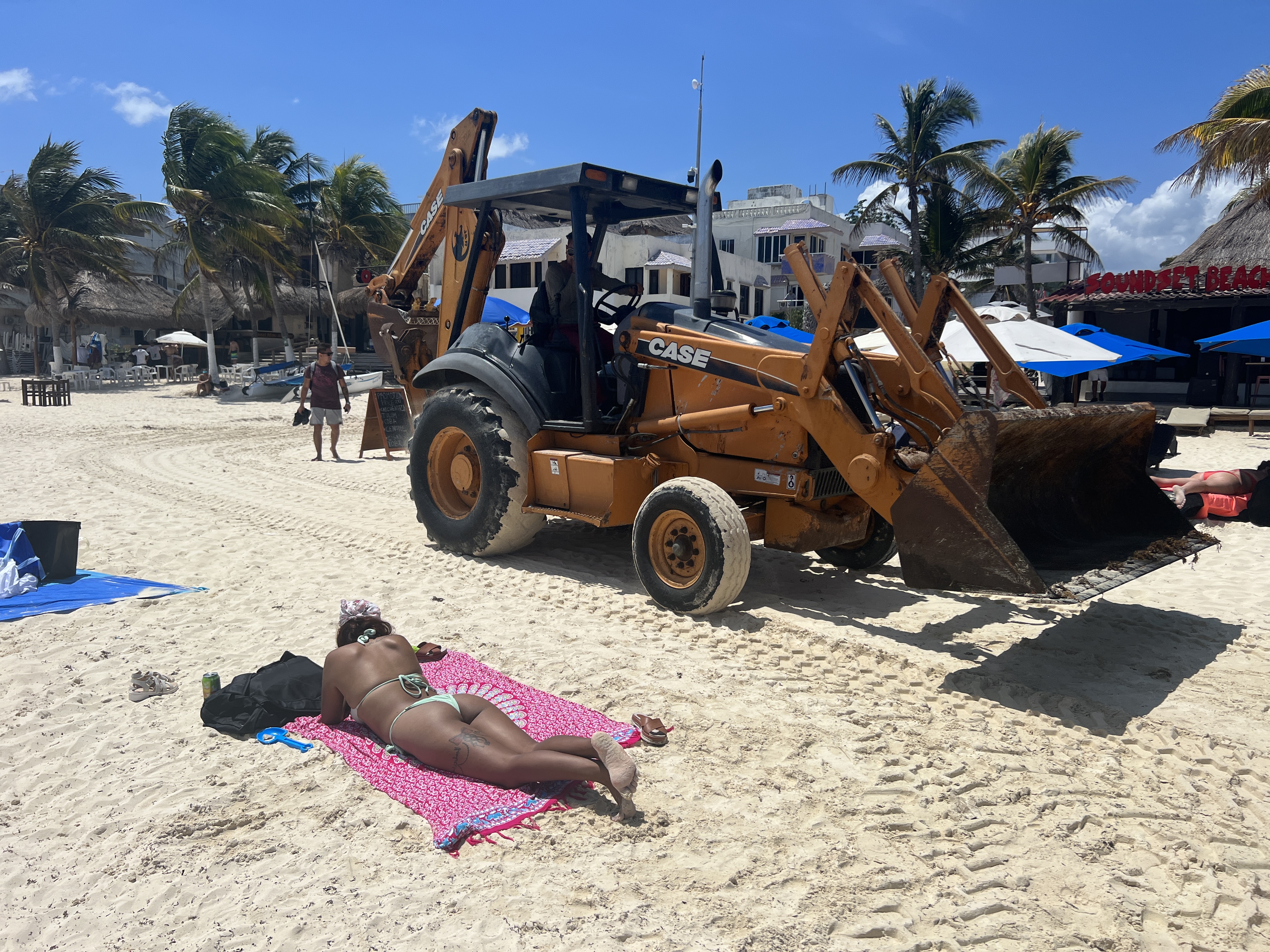 From there we stopped for lunch at El Fogon and a quick explore at Playa del Carmen – which has certainly grown over the last 15 years, but still felt more ‘in control’ than Tulum in this respect. We were able to access the beach and wander along it, walking past large piles of seaweed, beach bars and tourists desperately trying to sunbake and think tranquil thoughts whilst excavators drove within meters of their heads in the never-ending struggle against the seaweed.