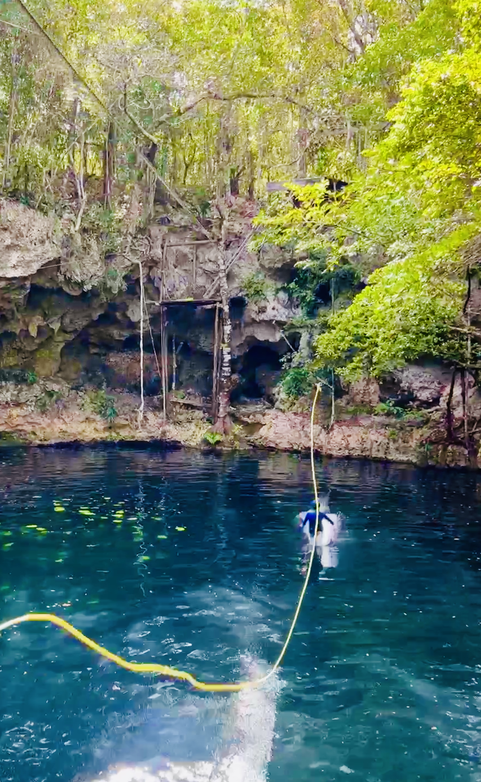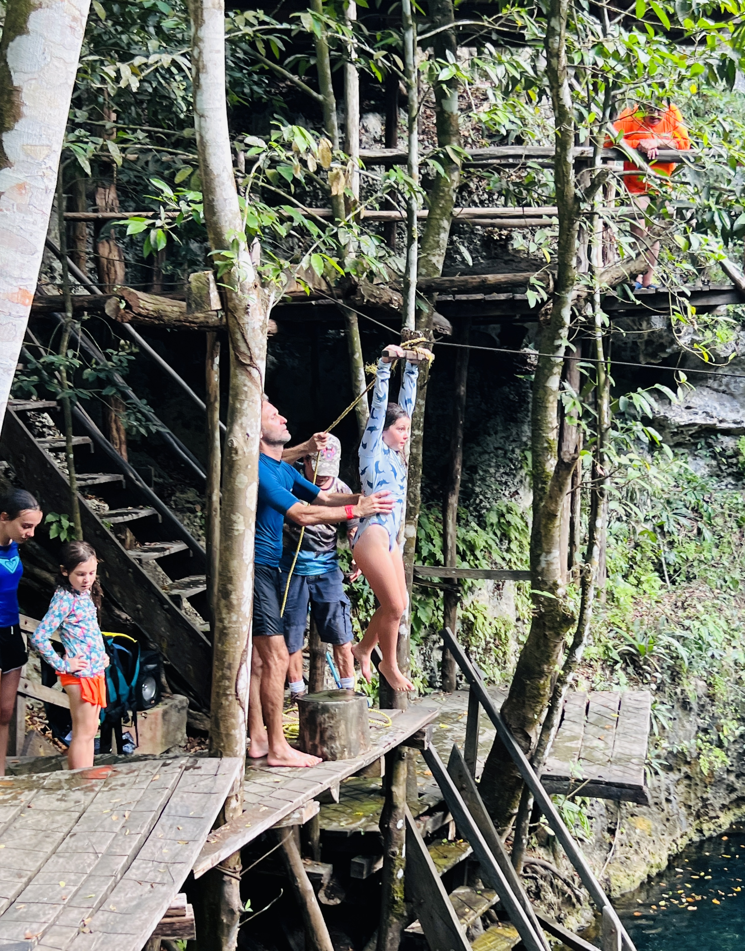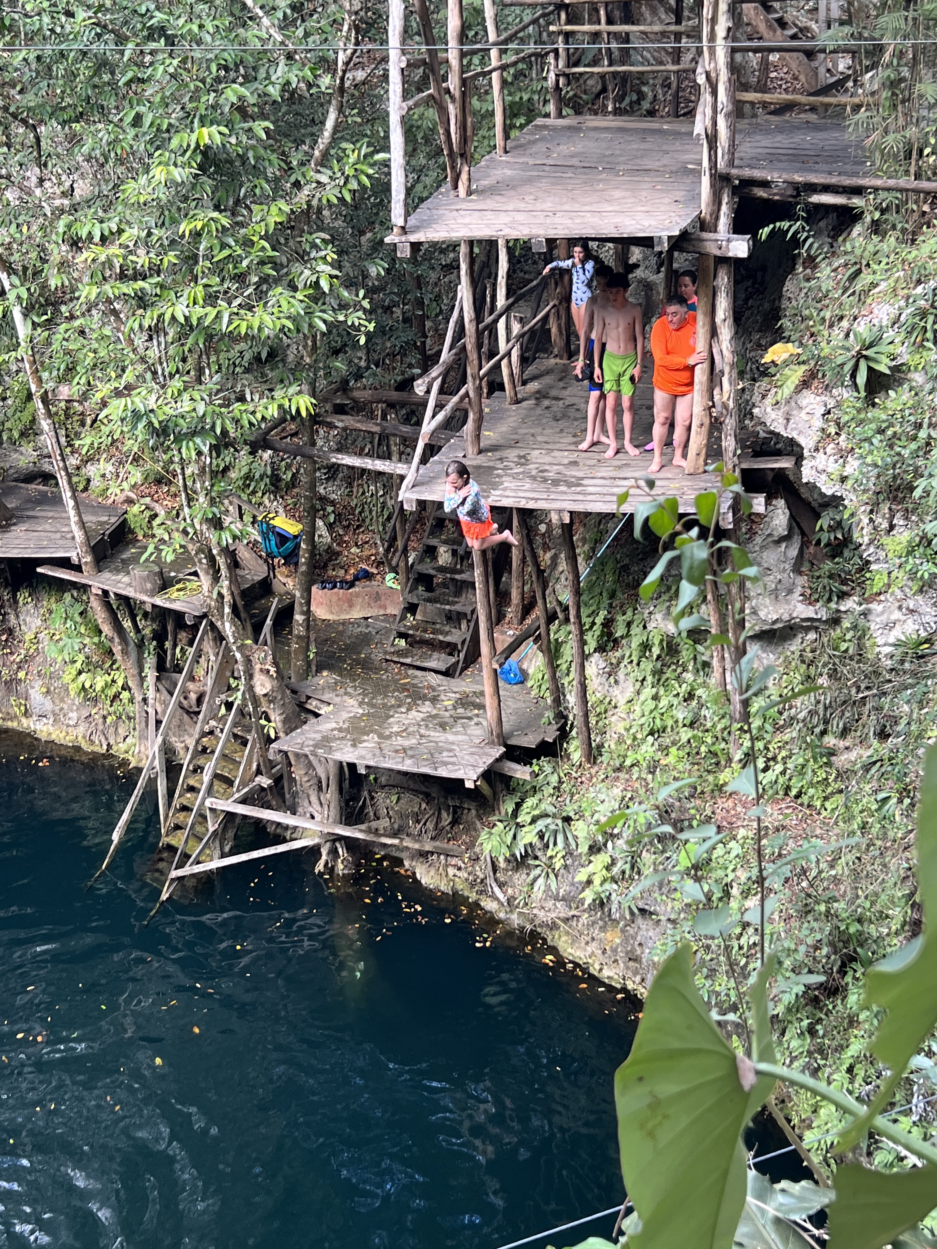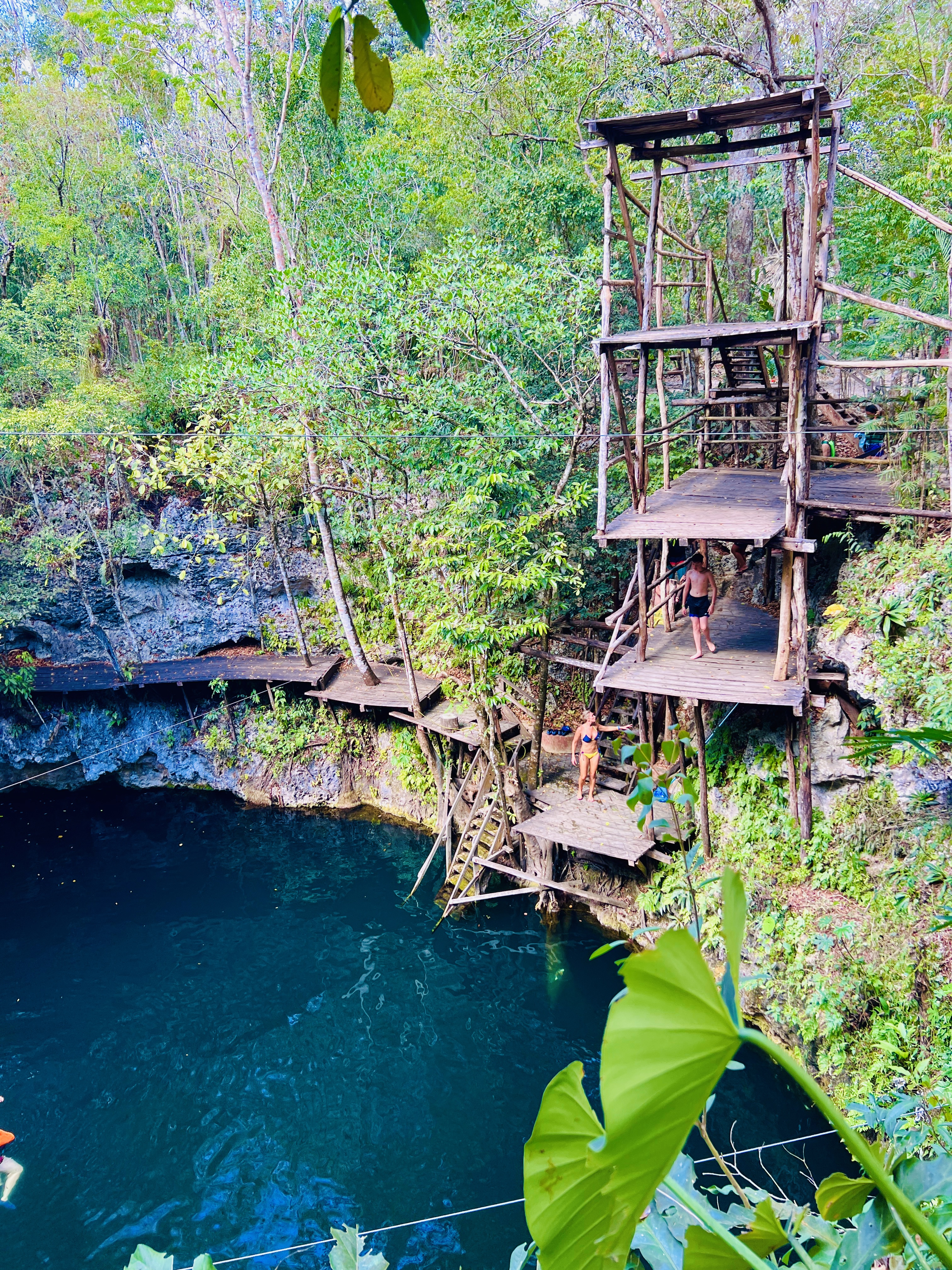 It was located in the middle of the jungle and not the prettiest cenote we had been to. Possible realising this, it had doubled down on being the most adventurous. Ziplines from 3 to 10 meters in height criss-crossed the cenote, and a diving platform from 3 to 12 meters went up one side. The whole thing was entirely rickety and looked like it could fall down at any minute.