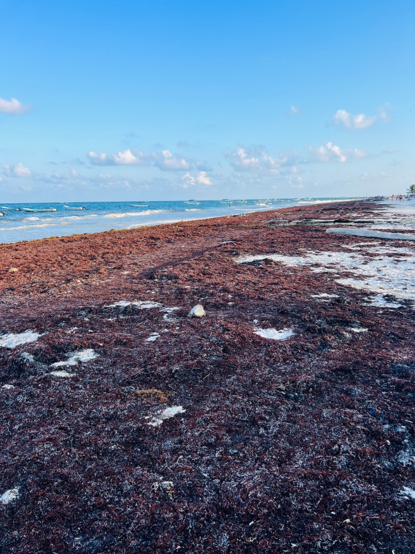 About 8 years ago, the seaweed arrived. This can’t be blamed on local overdevelopment. Apparently this is a result of both over farming and run off in the Amazon, global warming and hurricanes which has caused seaweed to proliferate and decorate many of the beaches in this area in enormous quantities. Sometimes it disappears for a day or two, or even a month in winter, but it always comes back and in quantities that create mounds taller than me on the beach.