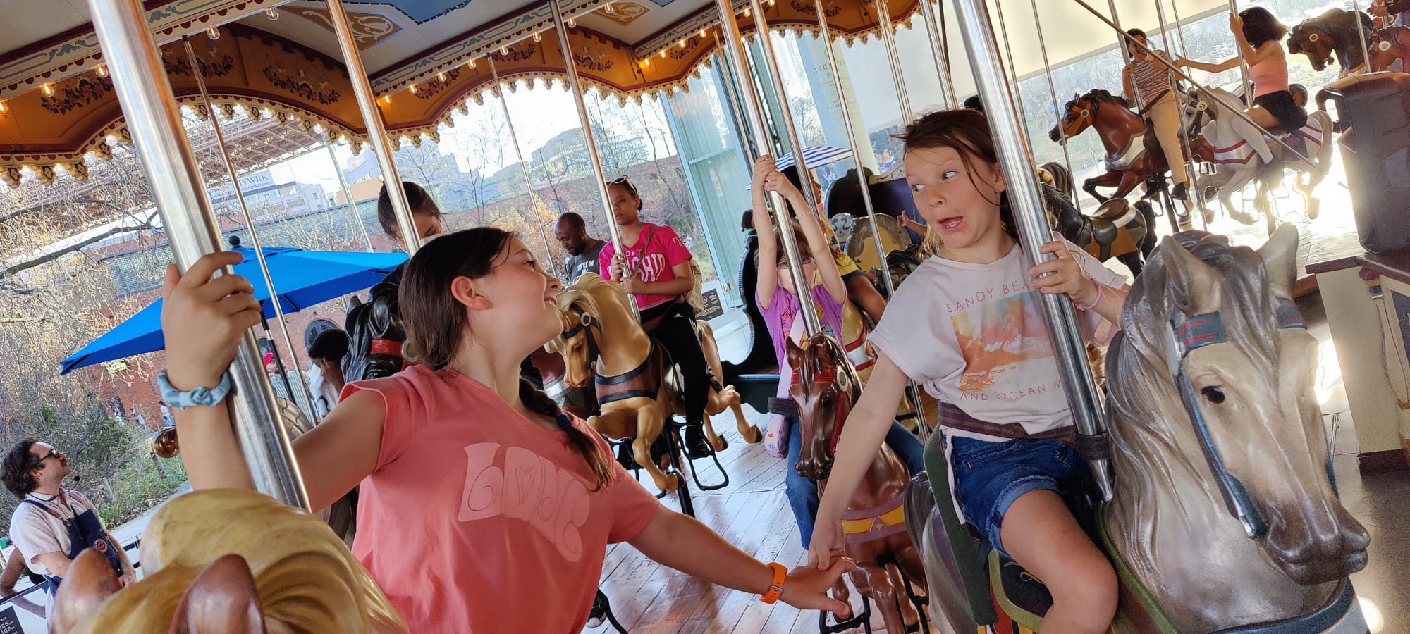 We firstly made our way across to Brooklyn and the beautiful Dumbo area, nestled on the East River between the Brooklyn and Manhattan bridges. Here we caught up with Liz’s cousins Vanessa, David and Rachel and their kids, got to ride the carousel and enjoy the spectacular view back over the Manhattan skyline.