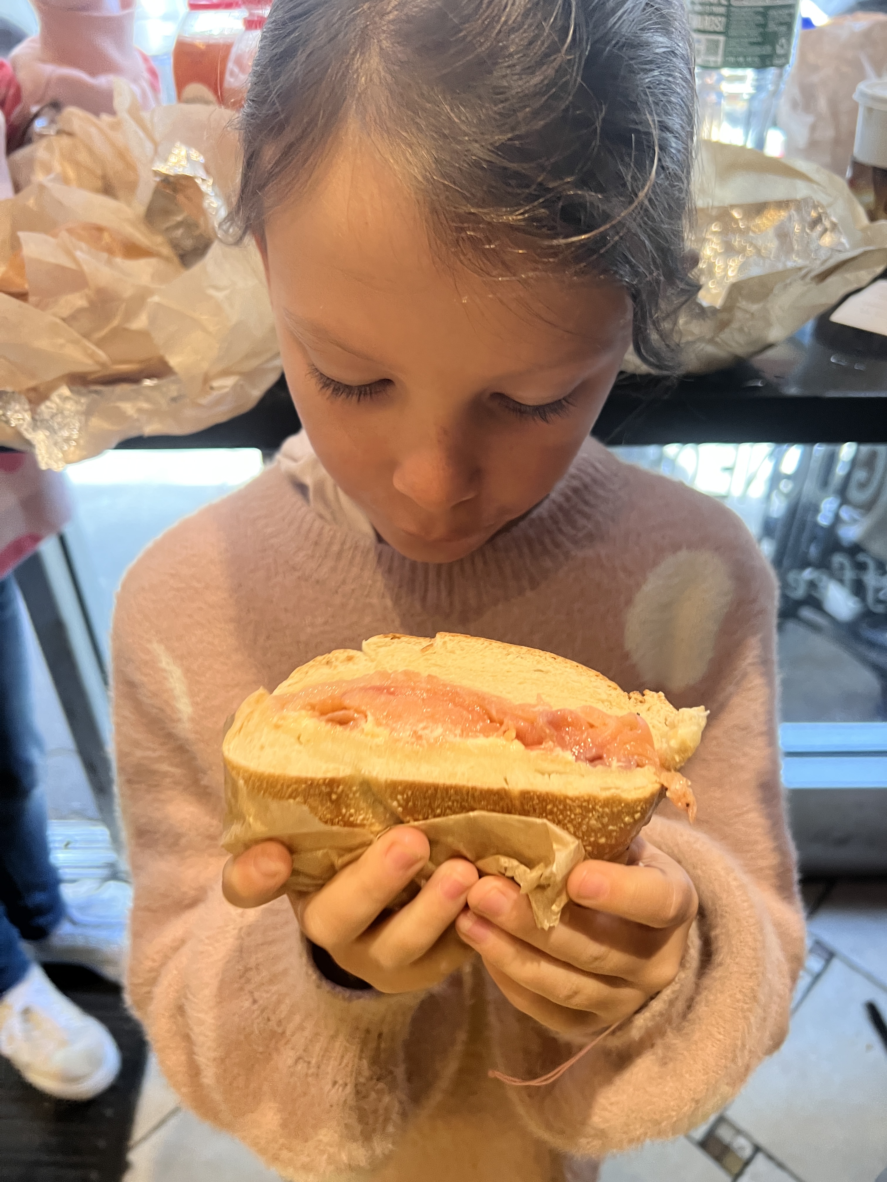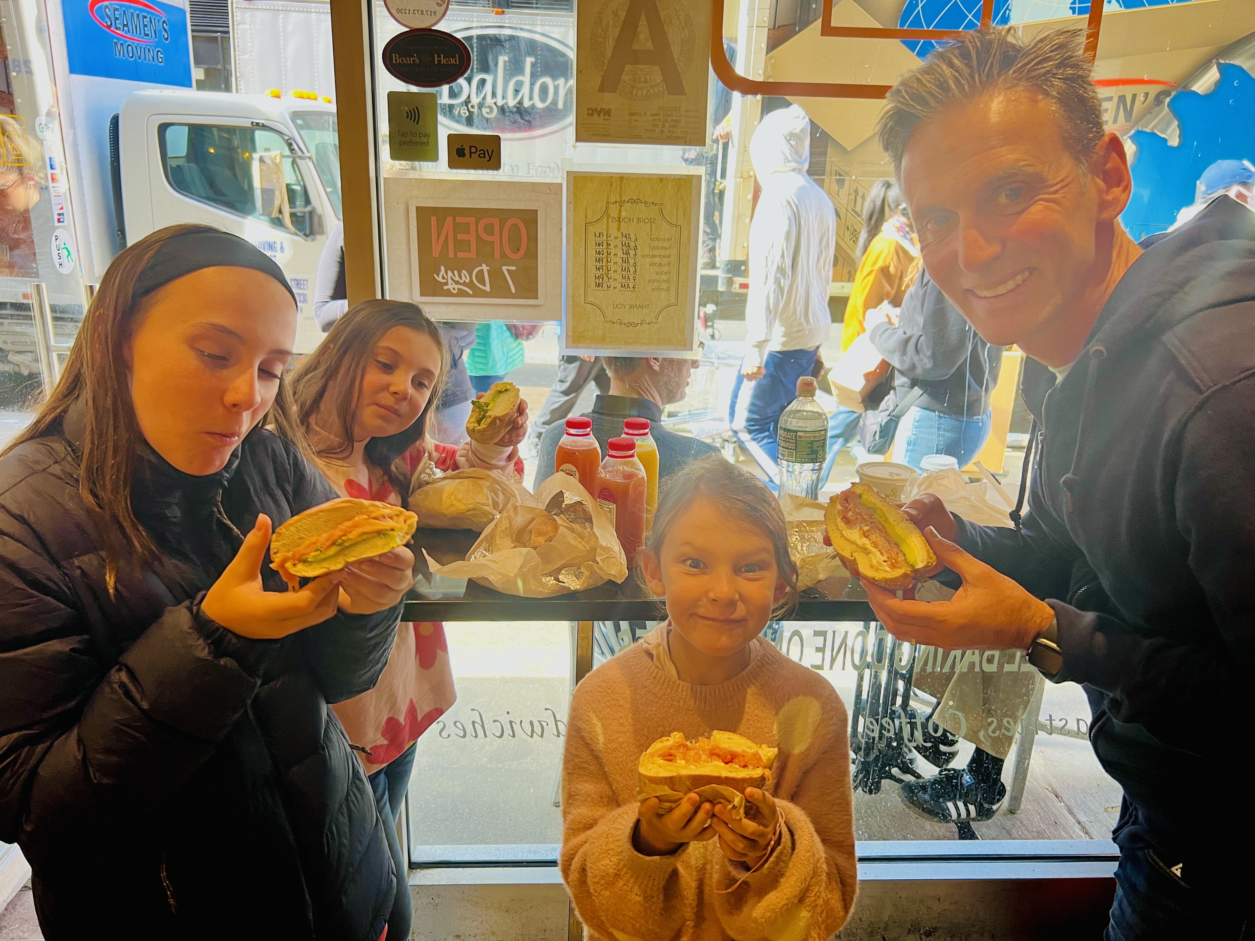 We made our way to the street below, heading for our first stop to the famous Best Bagel and Coffee shop (which was very reminiscent of ‘Elf’) to introduce the kids to a proper NYC bagel. These enormous bagels come out fully-laden with inch-thick toppings of lox and layered in cream cheese. They are tasty, but we could have probably shared one as a family.