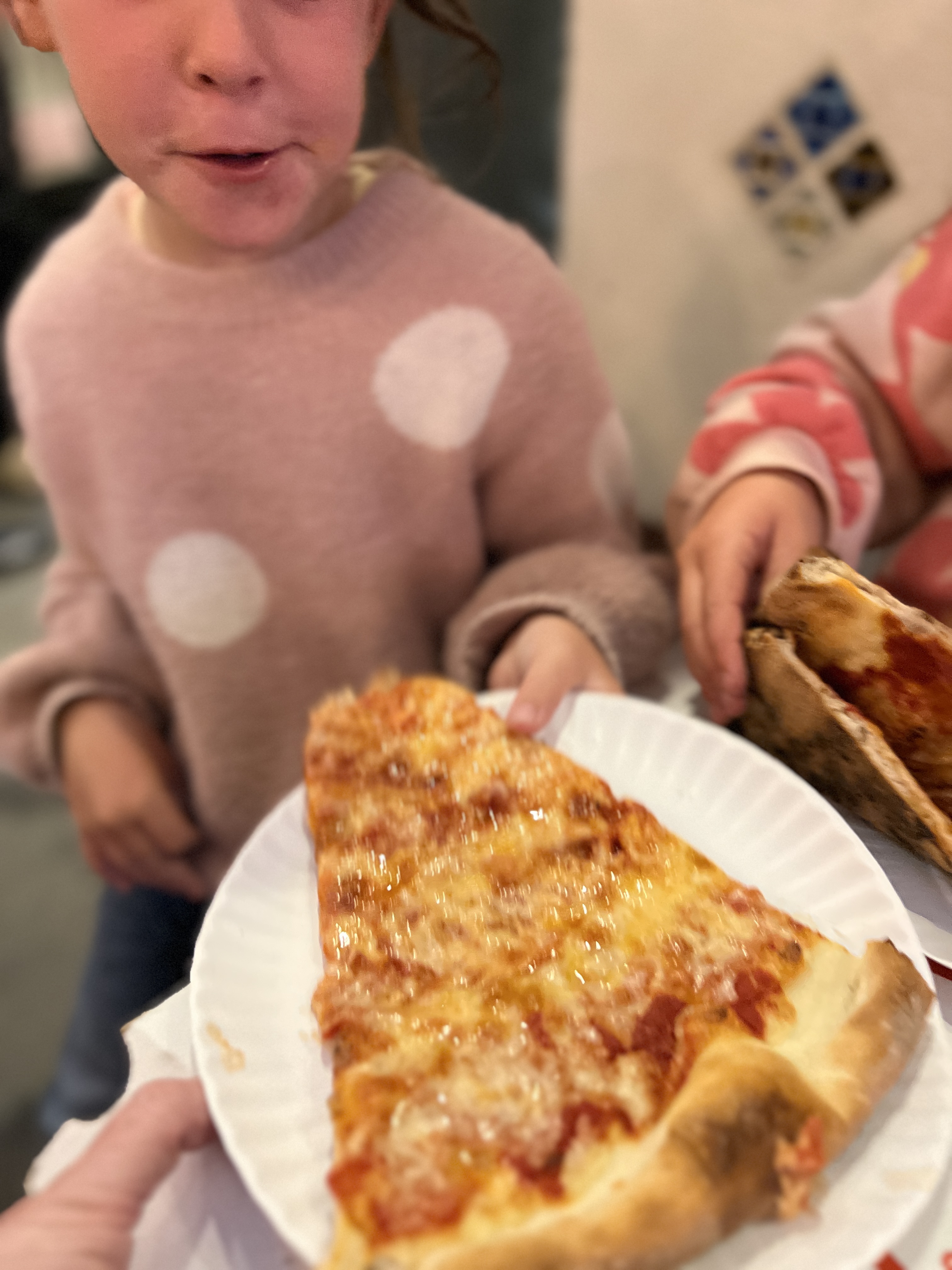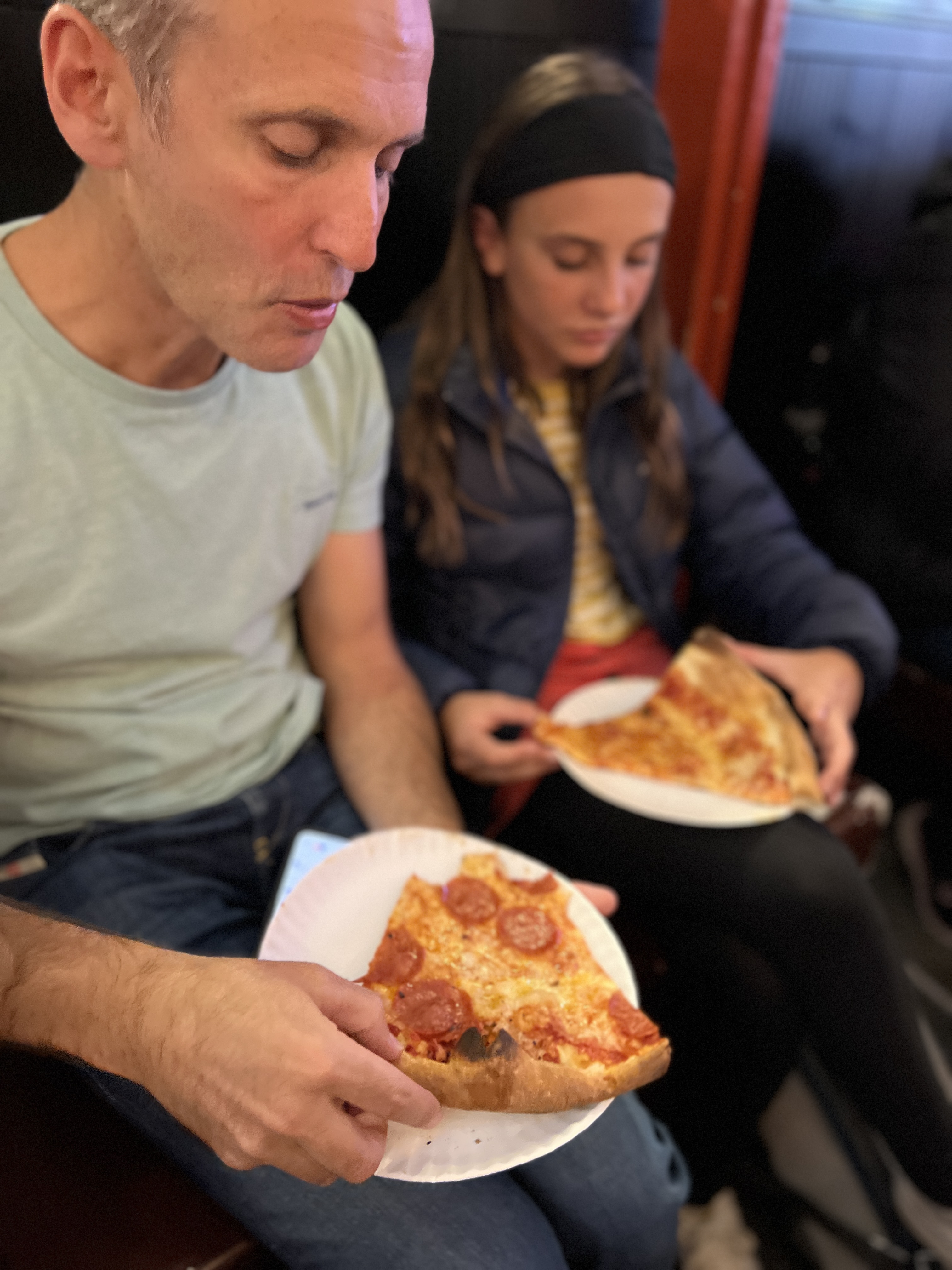 Our last stop for the day (courtesy of more of Liz’s amazing researching skills) was the famous Joe’s pizza just down for Times Square. At 10pm the line for this literally stretched down the block and around the corner but, like most of the lines we’ve seen here, it moved pretty quickly. They certainly know how to move people in this city. We (eventually) tucked into some incredibly tasty pizza (including a dairy and gluten free one for Liz) and then shepherded our semi catatonic children home.