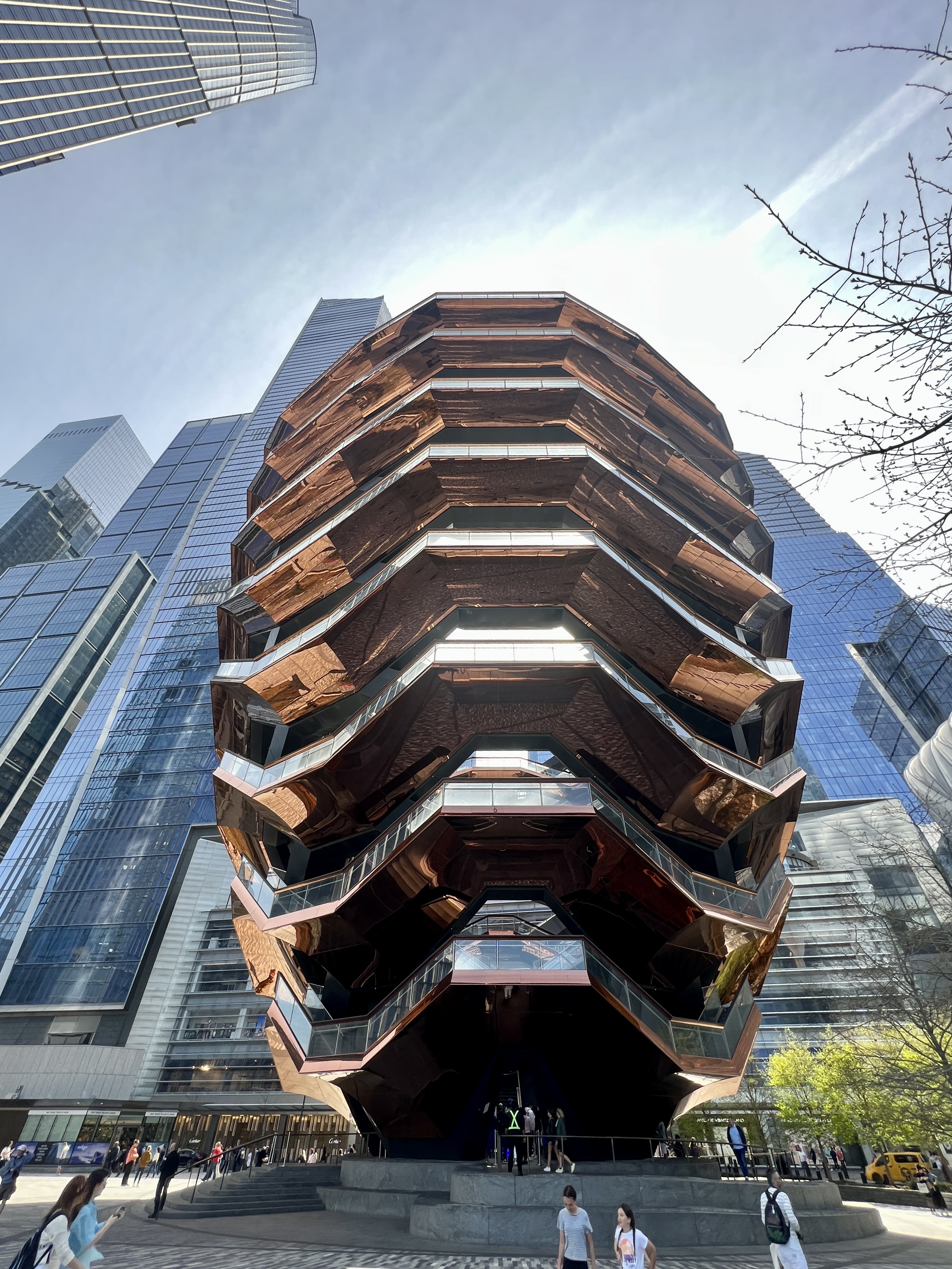 We jumped in a cab to go to 34th and 10th Avenue at the western edge of Manhattan. The first thing we noticed in this area is the extent and scale of new development happening in the city. It makes Barangaroo in Sydney look like a small-scale residential development. New sparkling glass towers dominate the skyline, and a number more are under construction, and there are some interesting open spaces including the Vessel – an almost Esher like series of staircases that leads (in this case) to an observation platform over the Hudson River.
