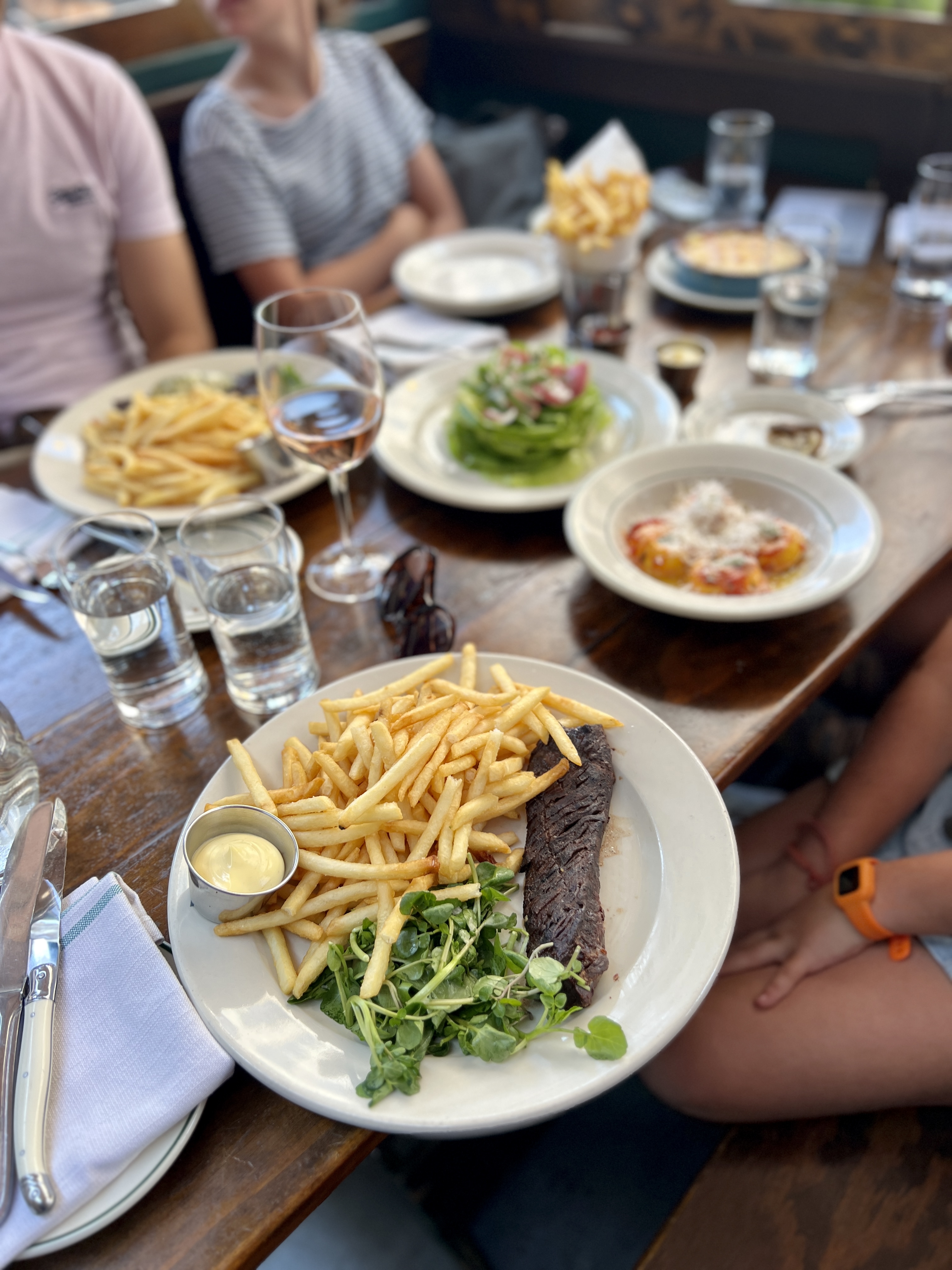 We sat outside in a booth – the style of which we had seen pop up all over New York (apparently a covid thing) – and tucked into a wonderful lunch of steak frites, salad and rose. So good.