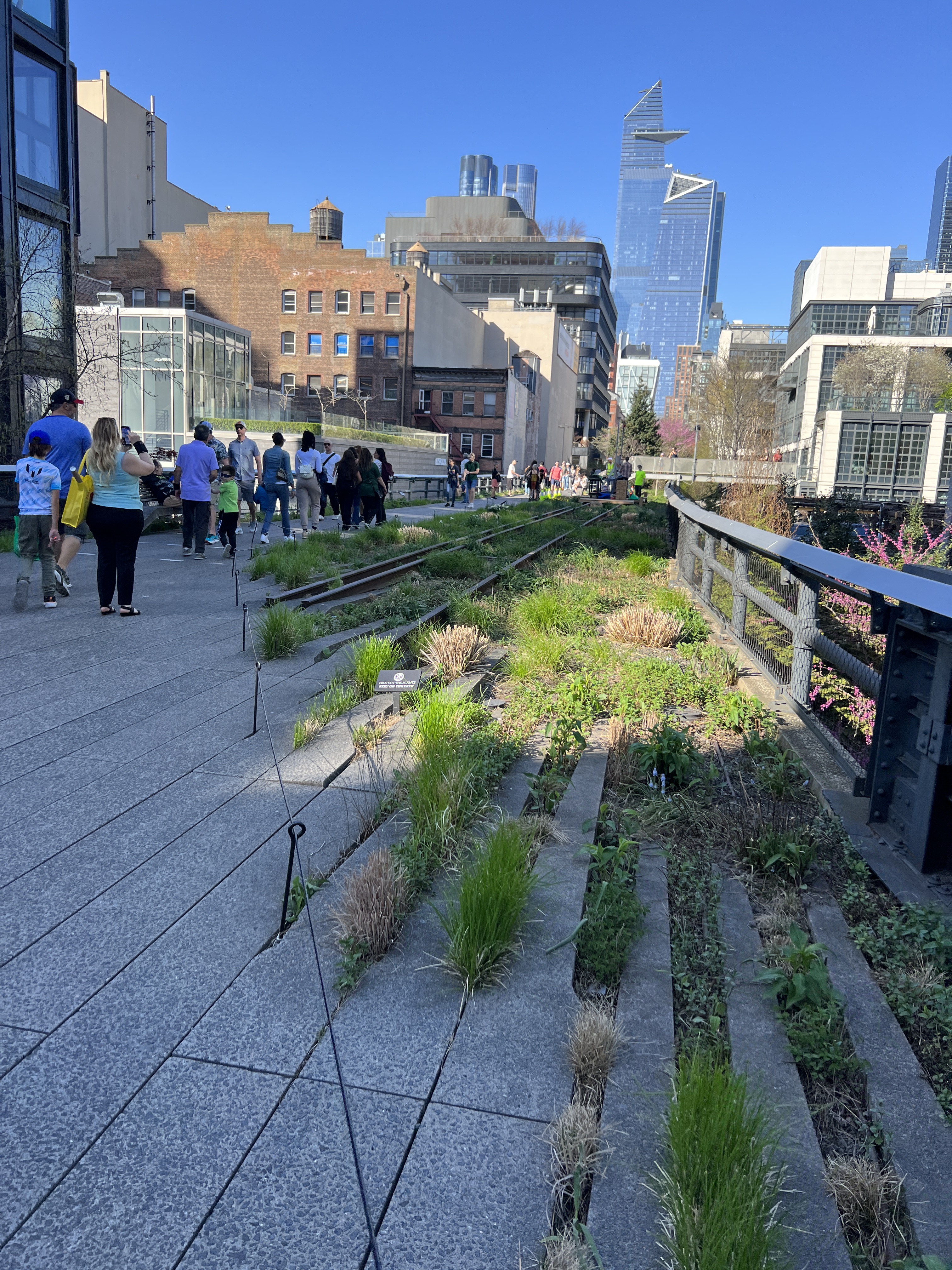 The city continued to put on beautiful summery weather for us for our second day. We learned from our bagel – fail of the previous day and opted for a more modest breakfast of coffee (best of the trip so far) and banana bread from the Copper Pot café on 30th street. Today’s mission would be west to the new ‘Highline’ raised walkway and then an exploration of the West Village and (critically) lunch at our favourite restaurant ‘Pastis’.