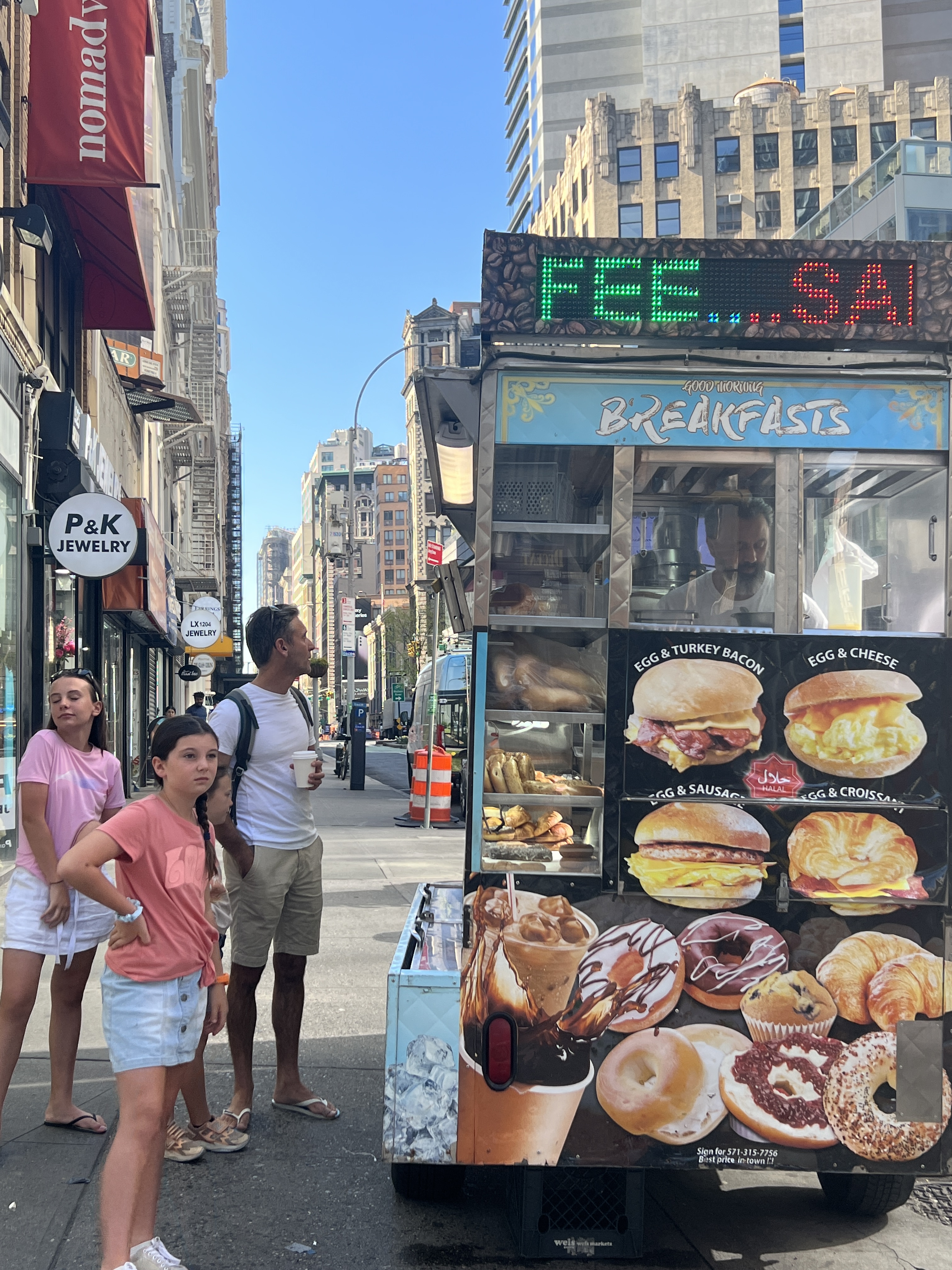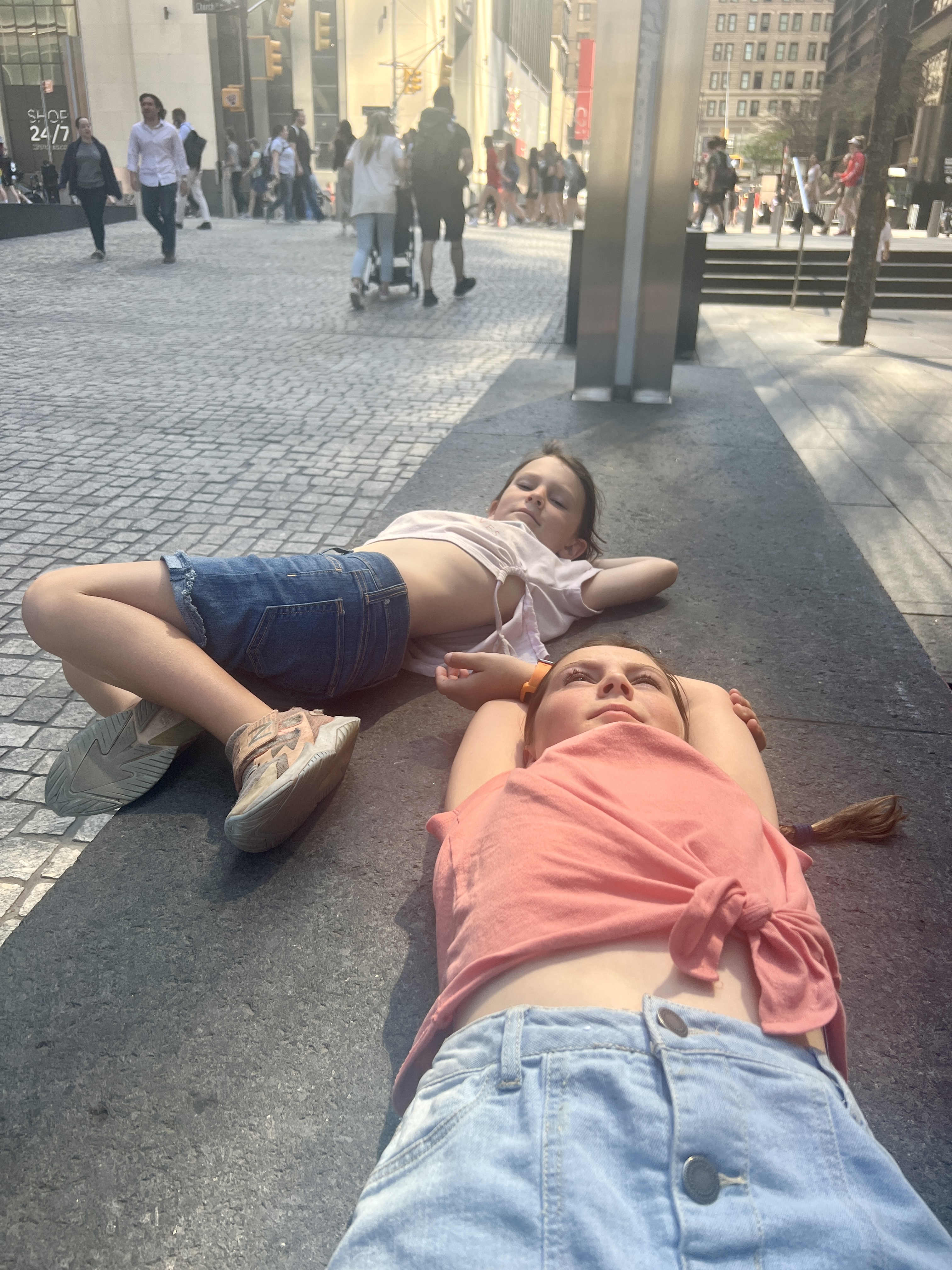 We had only walked about 12 kms today, but the kids were shattered and keen for some downtime. Being the good parents that we are, we acquiesced and took them back to the apartment, to chill (read: play roblox) for a couple of hours whilst we did the only honourable thing. We wandered down Broadway, found a wine bar, and enjoyed a couple of hours drinking mediocre French wine whilst watching the world go by. When the kids started to enquire if we’d abandoned them for good, we made our way back to apartment with Whole Foods and Chelsea Papaya hotdogs in hand, and all was forgiven.