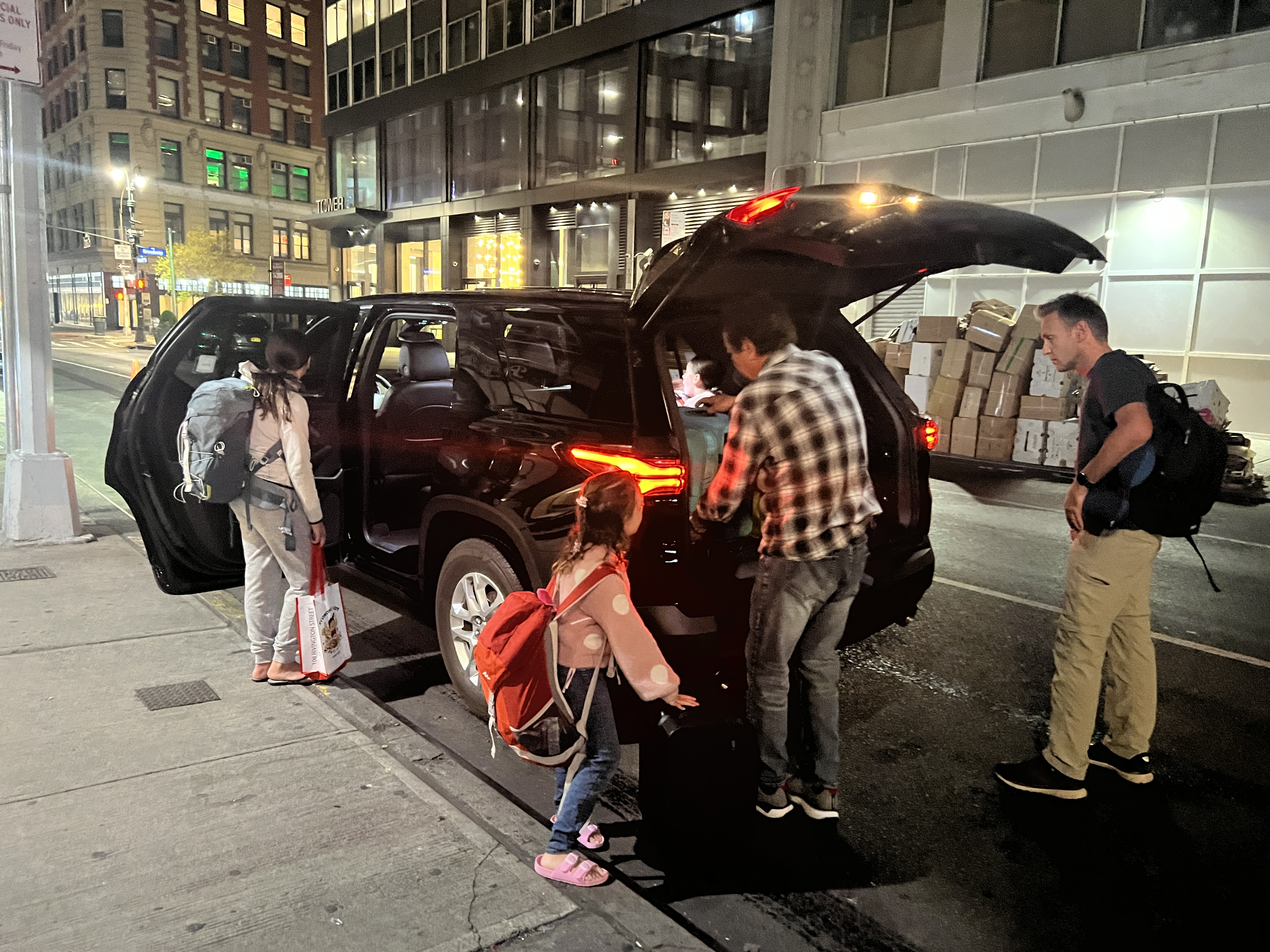Actually what we did is sit in traffic for an hour as our ride tried to navigate through endless roadwork, and by time the Manhattan skyline did pop up, everyone was passed out.