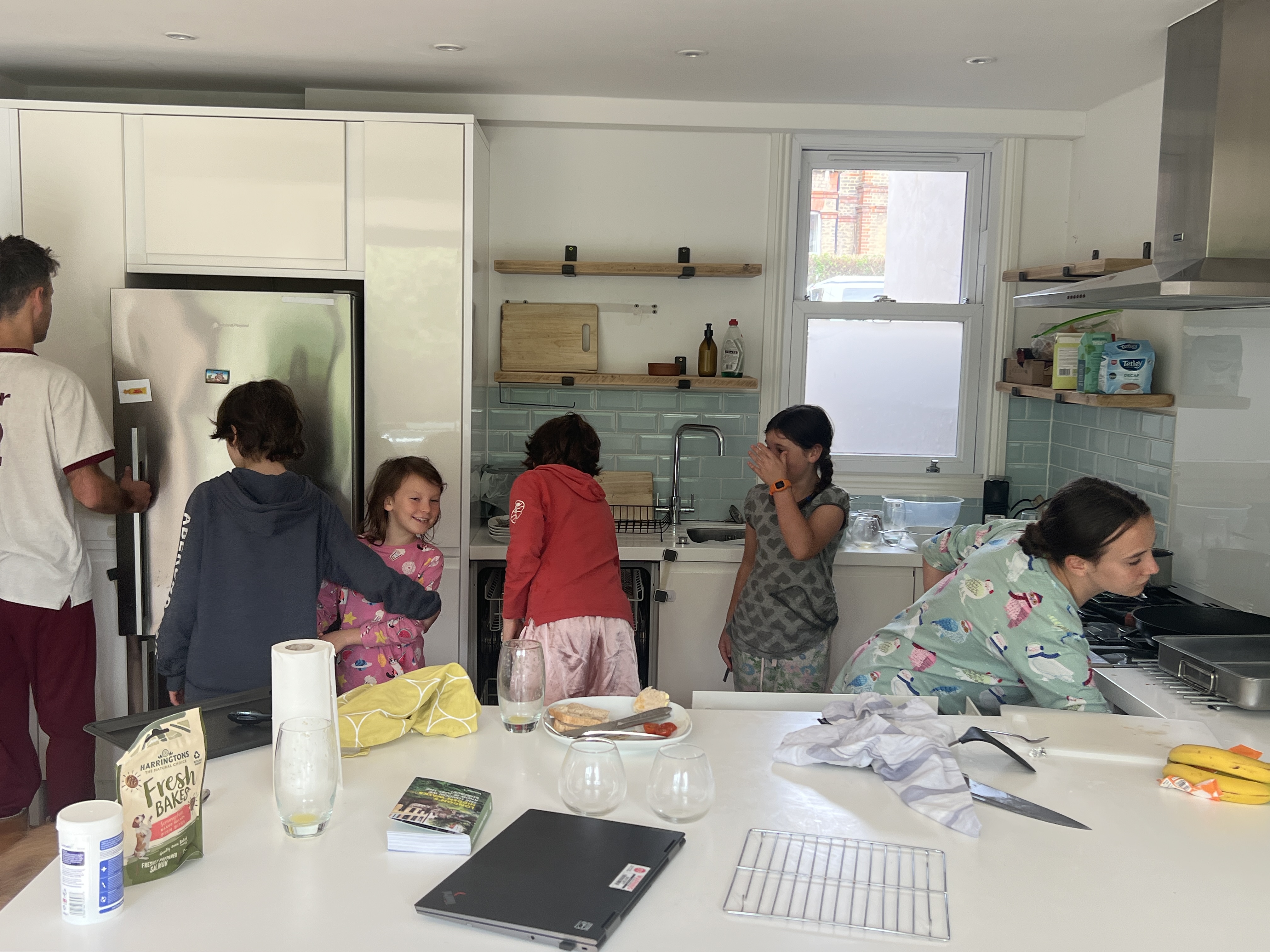 It is in Honor Oak right near the station (maybe a bit too near as we can see the trains go by while we eat dinner in the kitchen). This has its benefits as we can now label both the direction and destination of any train that goes by (and that can happen every 4-6 minutes depending the time of day) with a fair amount of certainty. We have ample space for us and for when the cousins come for sleepovers (generally every second weekend).