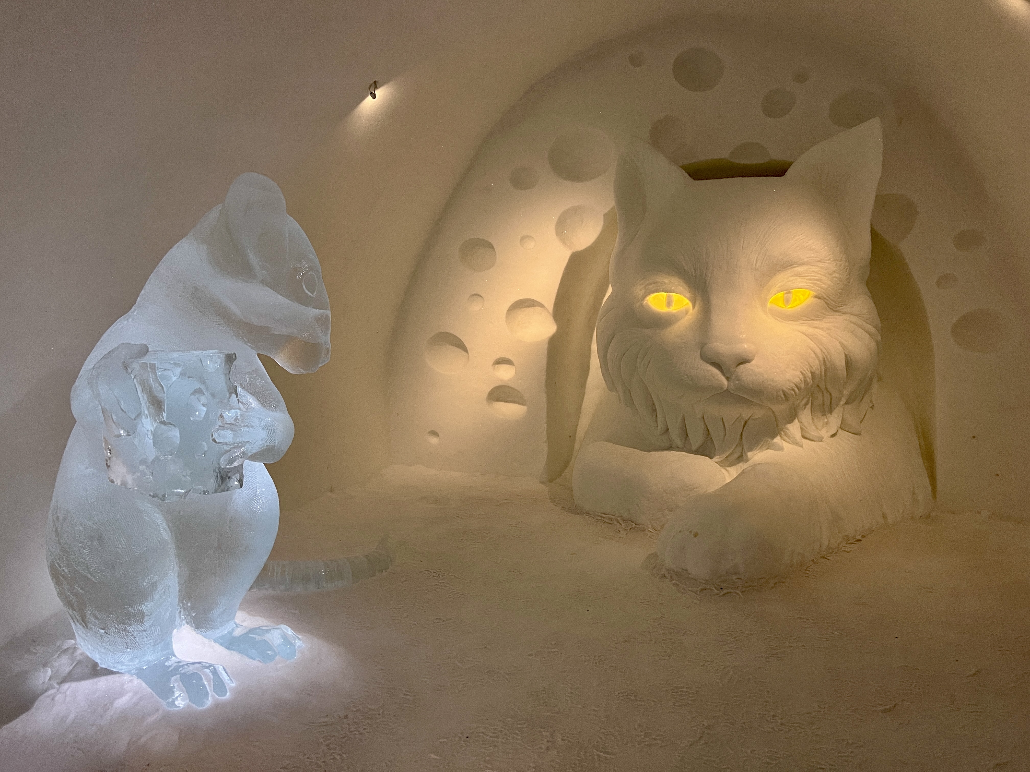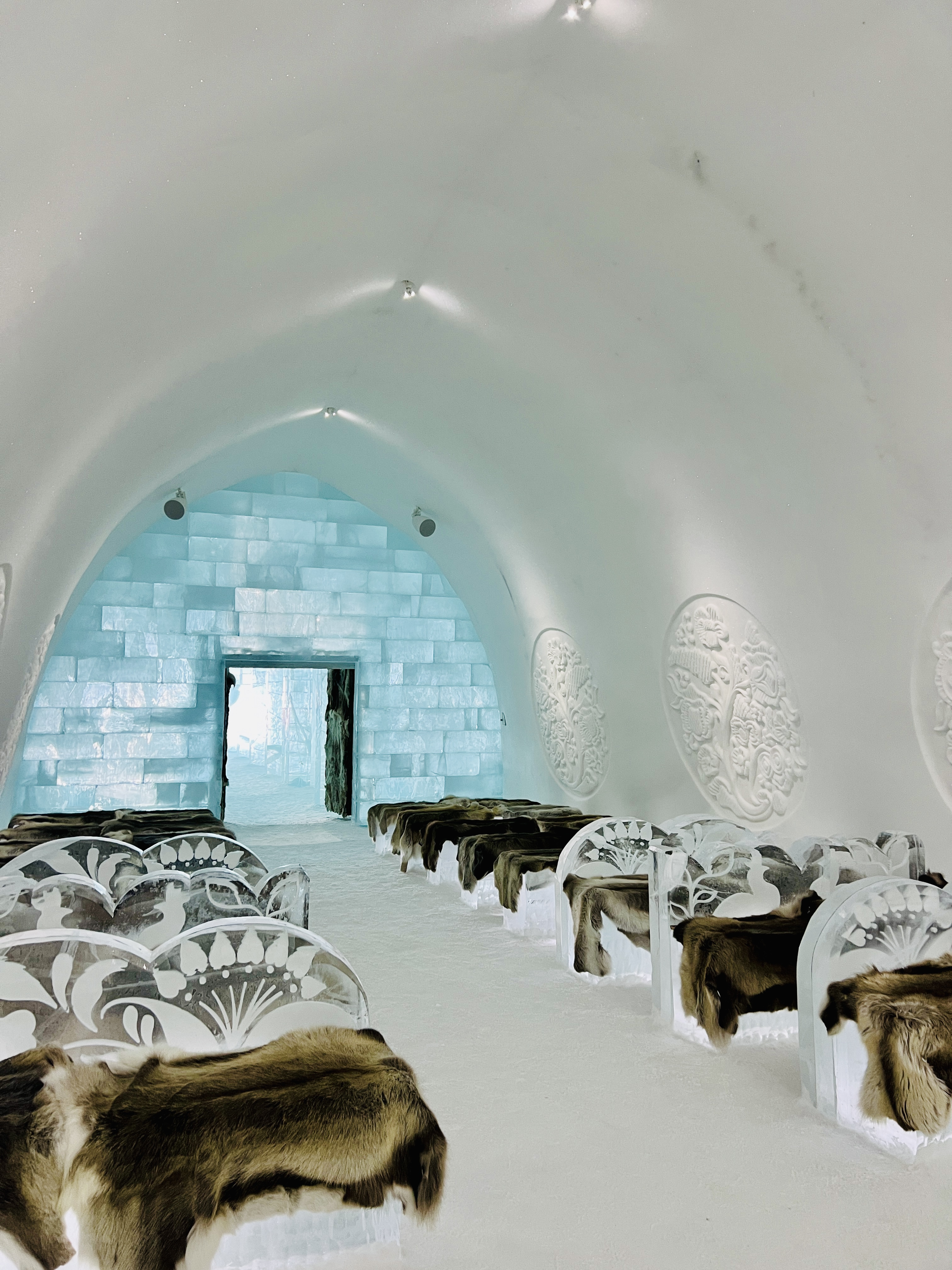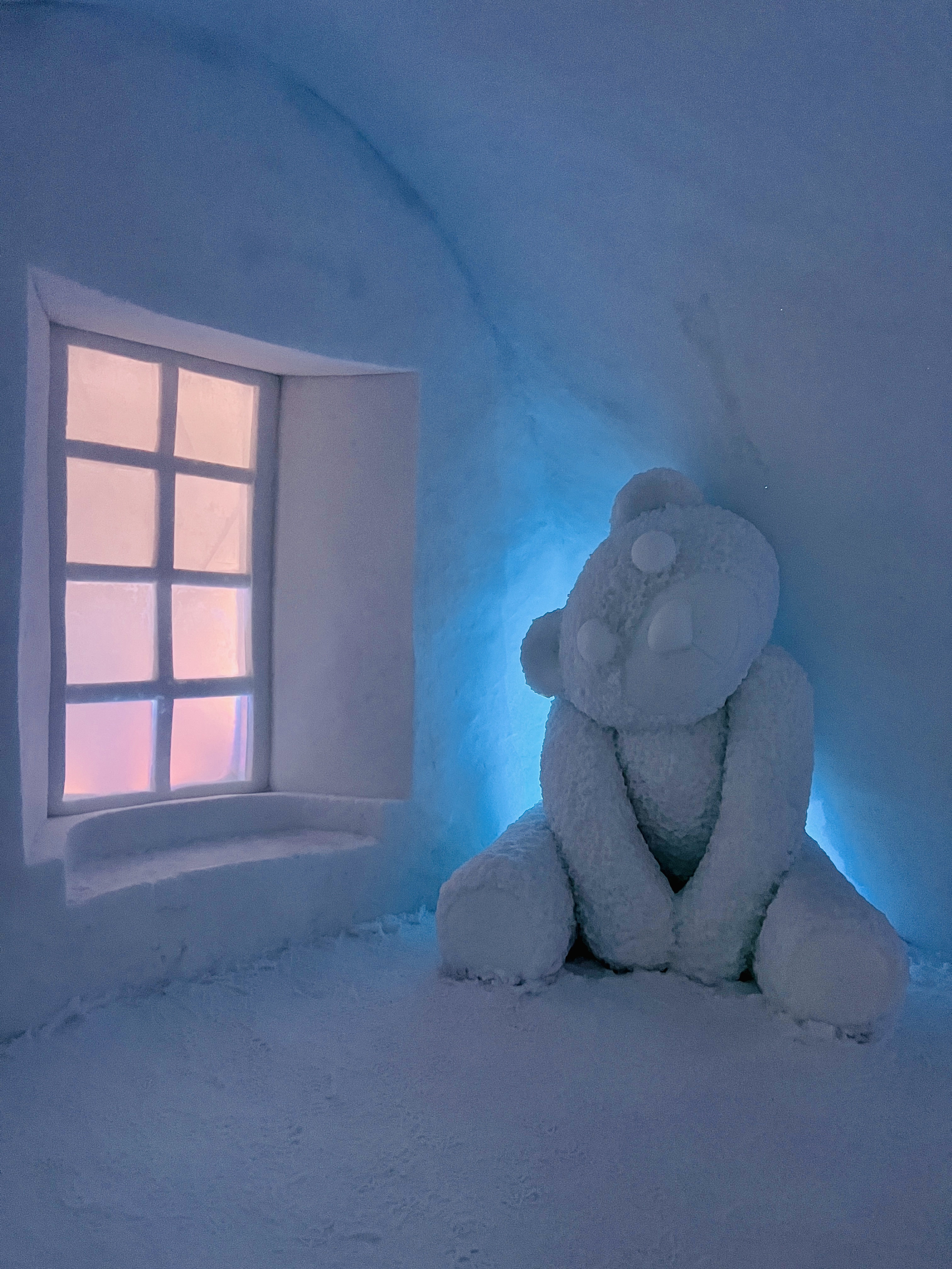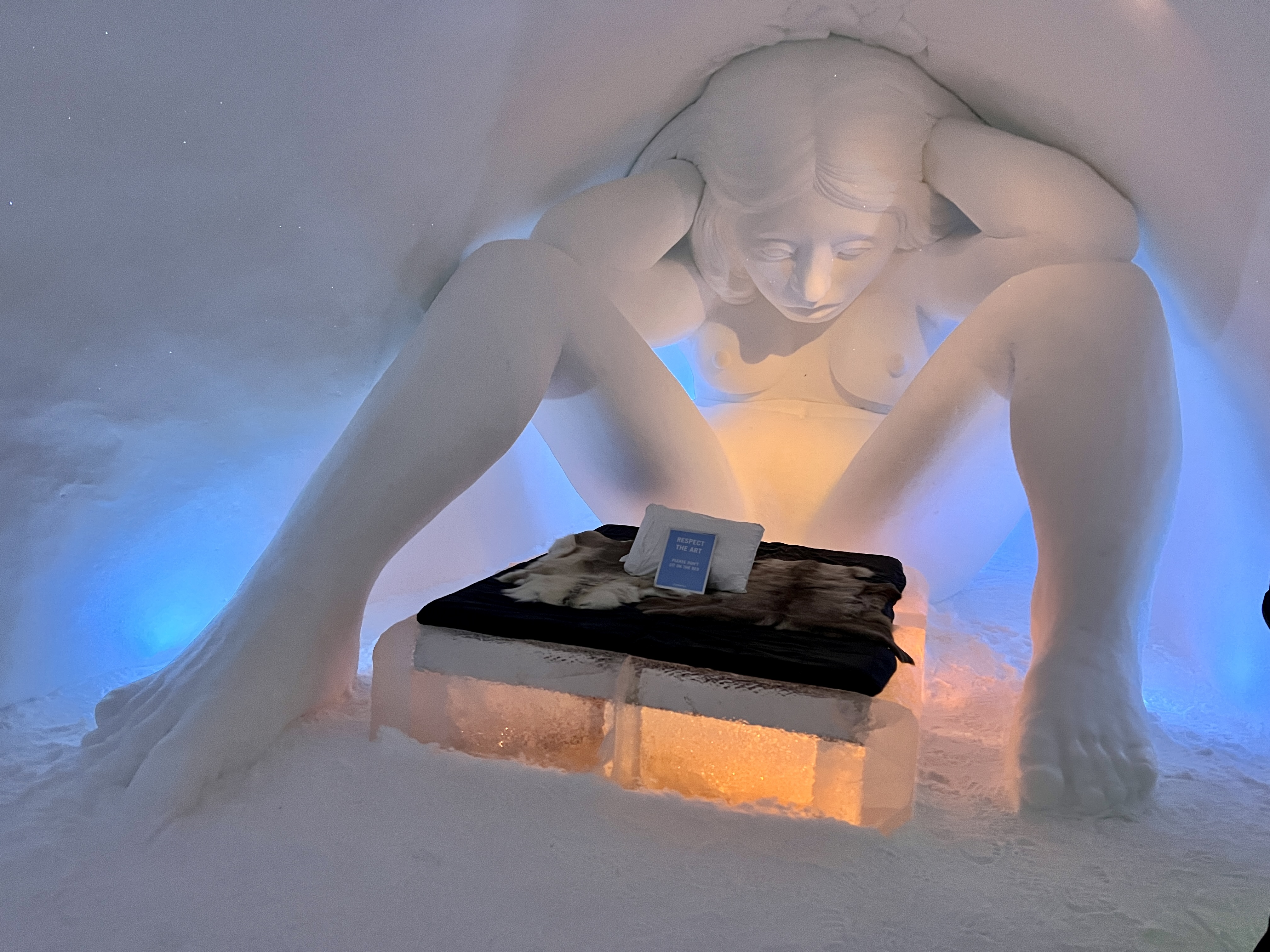 Each room in the hotel (which is effectively a giant igloo) is hand sculptured each year, the more expensive the rooms, the more elaborate the carvings – but even the basic ones are incredible.