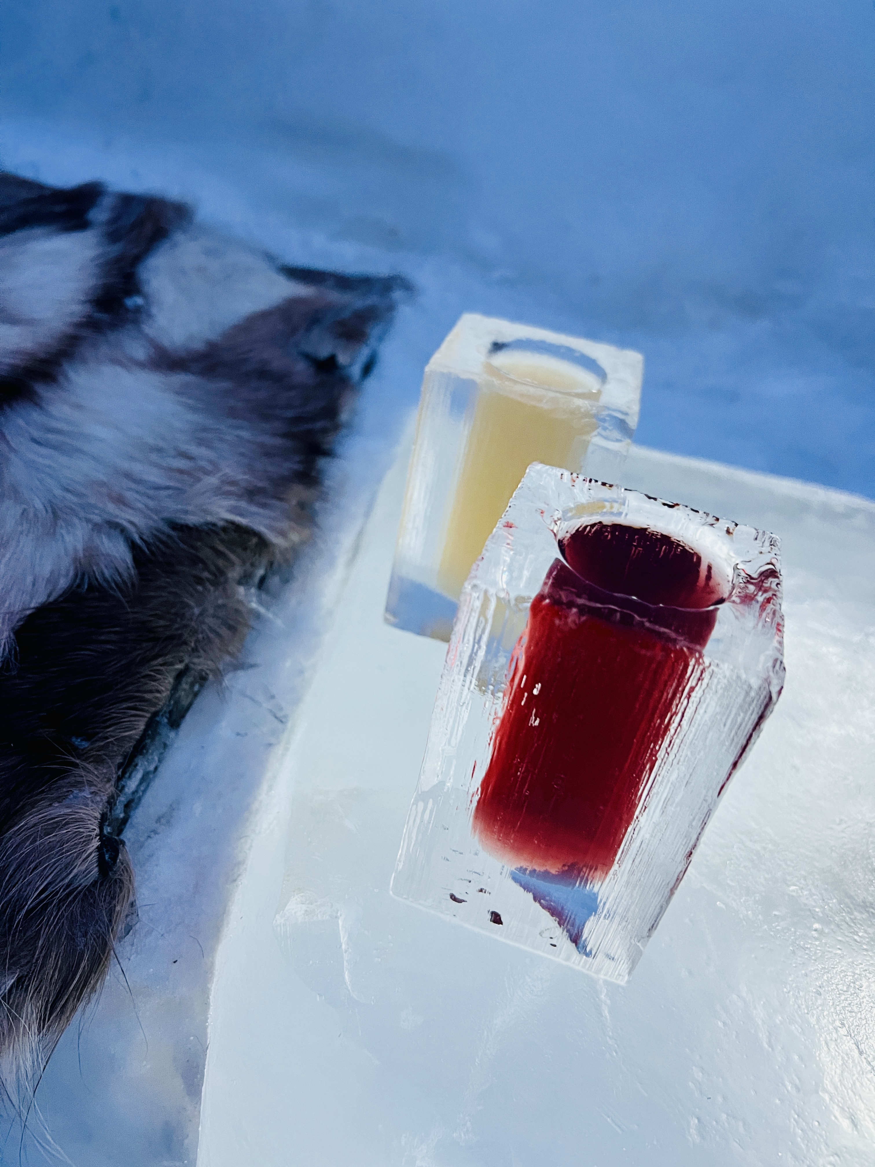 From there, we picked up our arctic sleeping bags, cleaned our teeth in the shared, gym style bathrooms, undressed down to our thermals and padded our way through the -15 degree outside into the -5 degree IceHotel, laid our sleeping bags on our reindeer skins and settled in for the night.