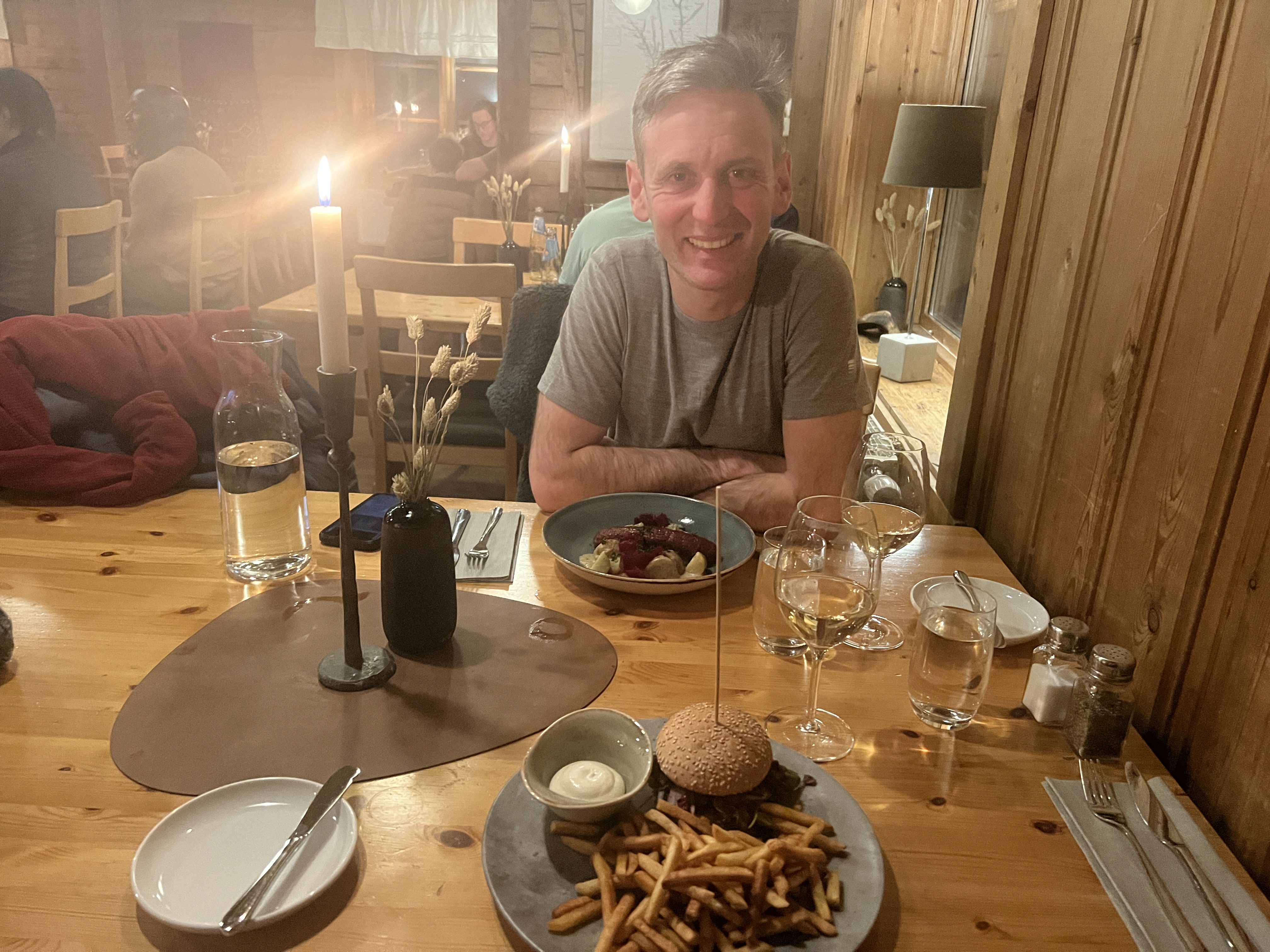 It turns out that it is the most expensive camping trip that we’re ever likely to do. After a fun couple of cocktails (out of ice glasses) at the stunning but completely empty IceBar, we walked down (on) the river to the Homestead for dinner – which served nothing but deer related products by Peter who later shared his dubious playlist with us. We hoped to spy some northern lights on the way home, but they were a bit shy tonight, so we had to settle for a beautiful moonlit night instead.