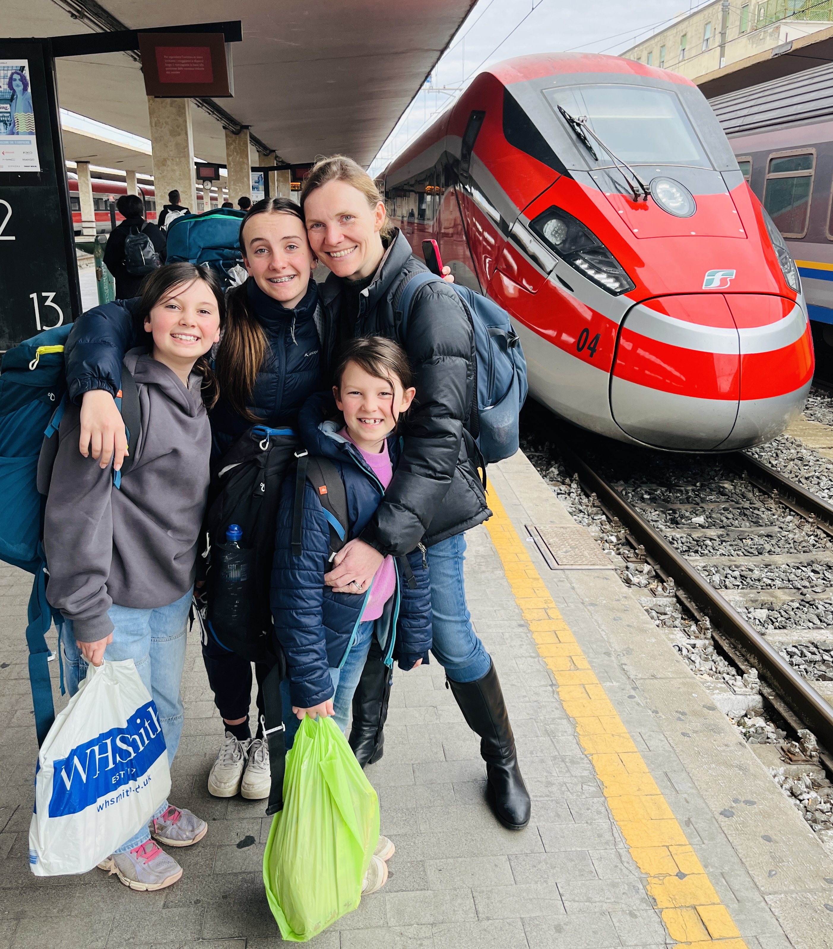We all felt a bit sad to be arriving at the train station, and back on ‘solid ground’ again, but we were excited to take our first train trip for the holiday, across the country to Cinque Terre.