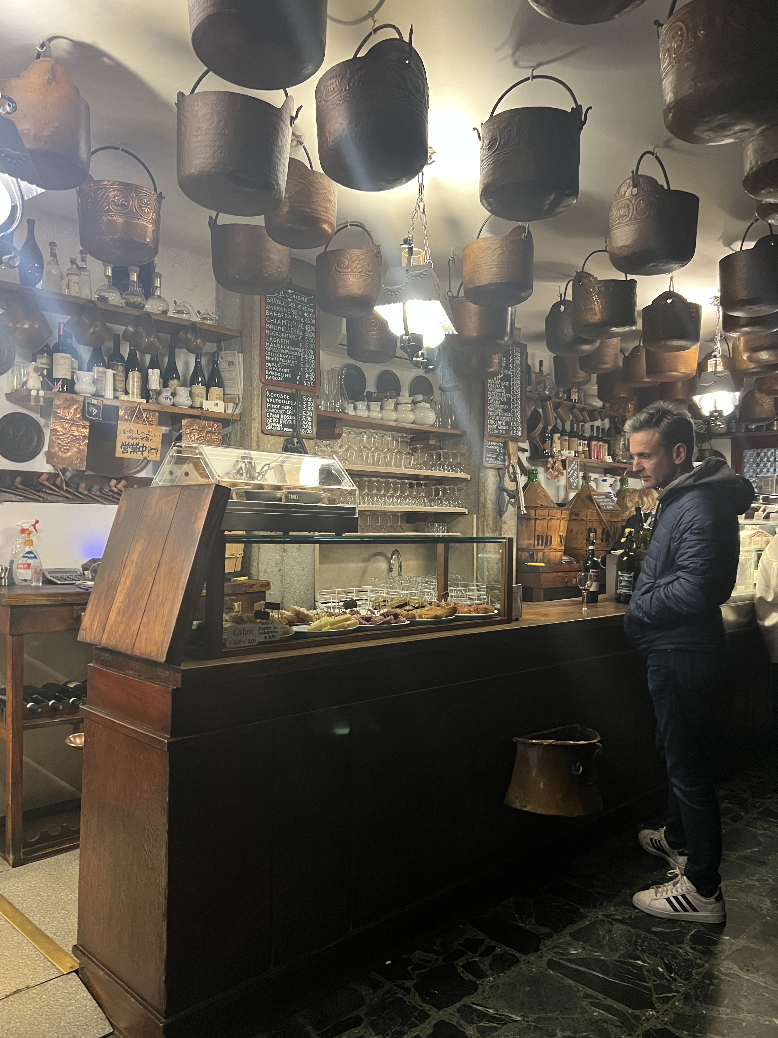 Fun fact – Venice doesn’t have to be expensive (at least not for food) as long as you don’t mind standing up, and eating/drinking in the equivalent of a very non-covidsafe packed underground car. It is illegal (and enforced) to eat food on the street and to sit anywhere on streets or bridges, and there are heaps of good takeaway pizza or pasta places – so the order of the day seems to be to order your pasta in a box and then smash it whilst standing up in these tiny little shops. Or you can pay double to sit down and watch the tourists walk by.
