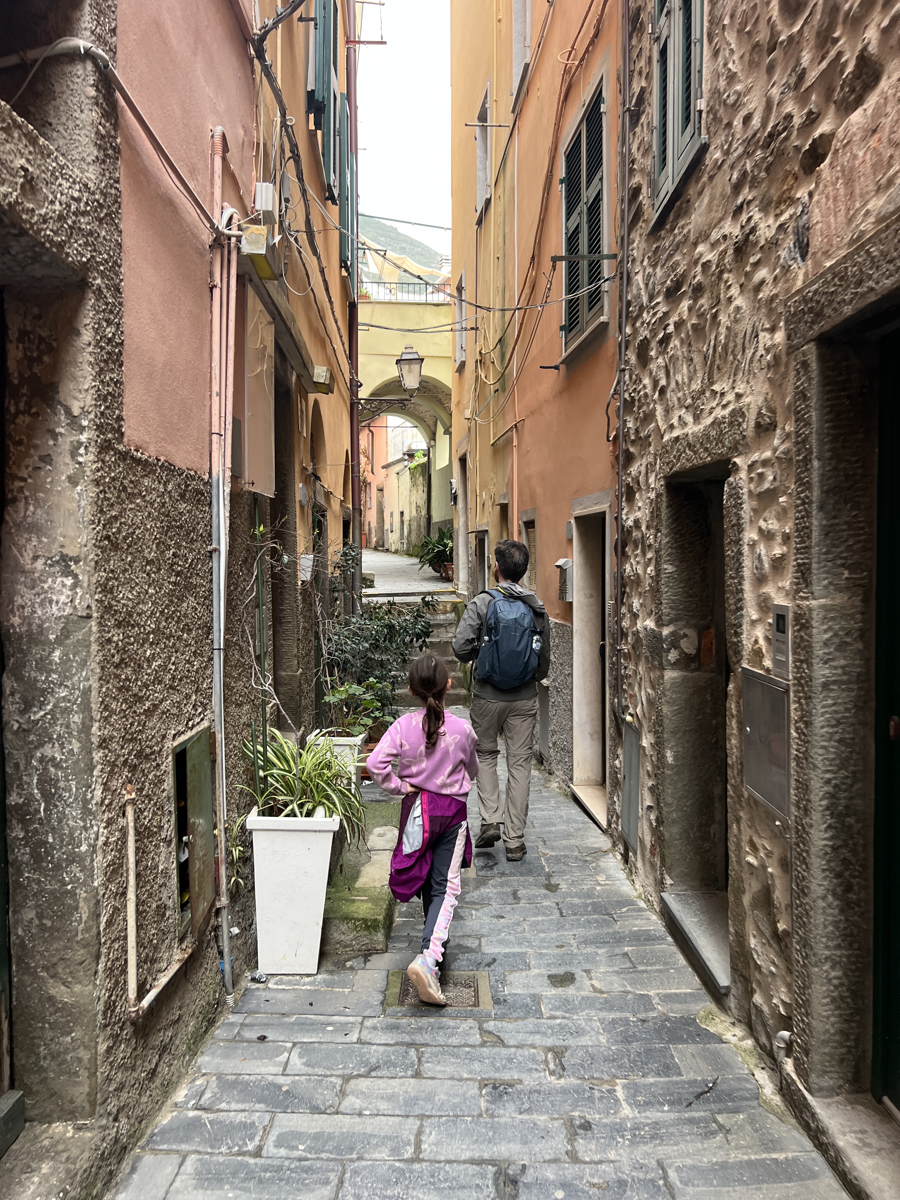 We were told that the paths were well marked and the main hazard was likely to be falling over other tourists. In any event, we were excited to be doing some walking with the girls (something they haven’t exactly been ‘all in’ on previously) – this time they were curious, mainly because of the promise of pasta and gelato based bribery.