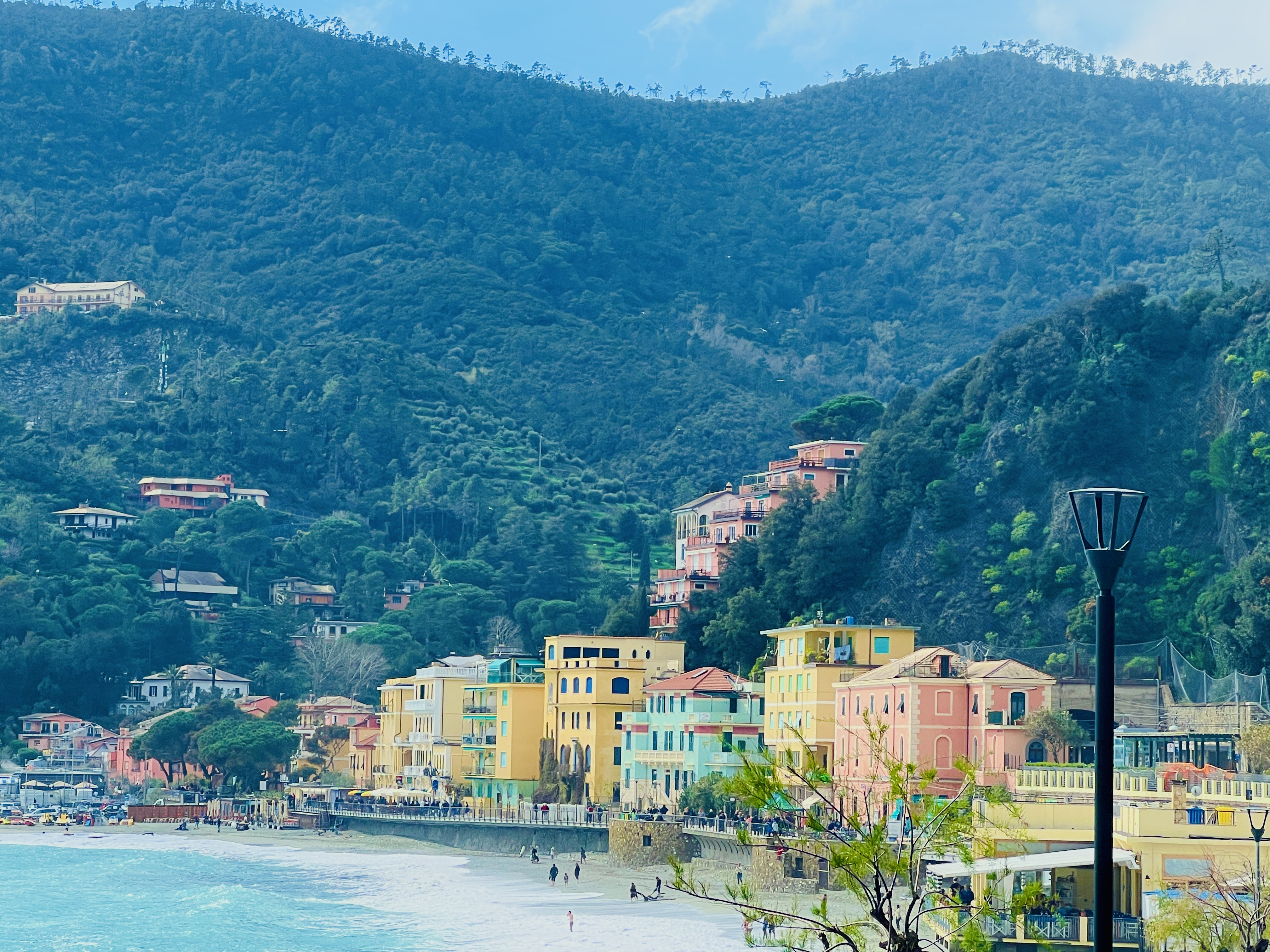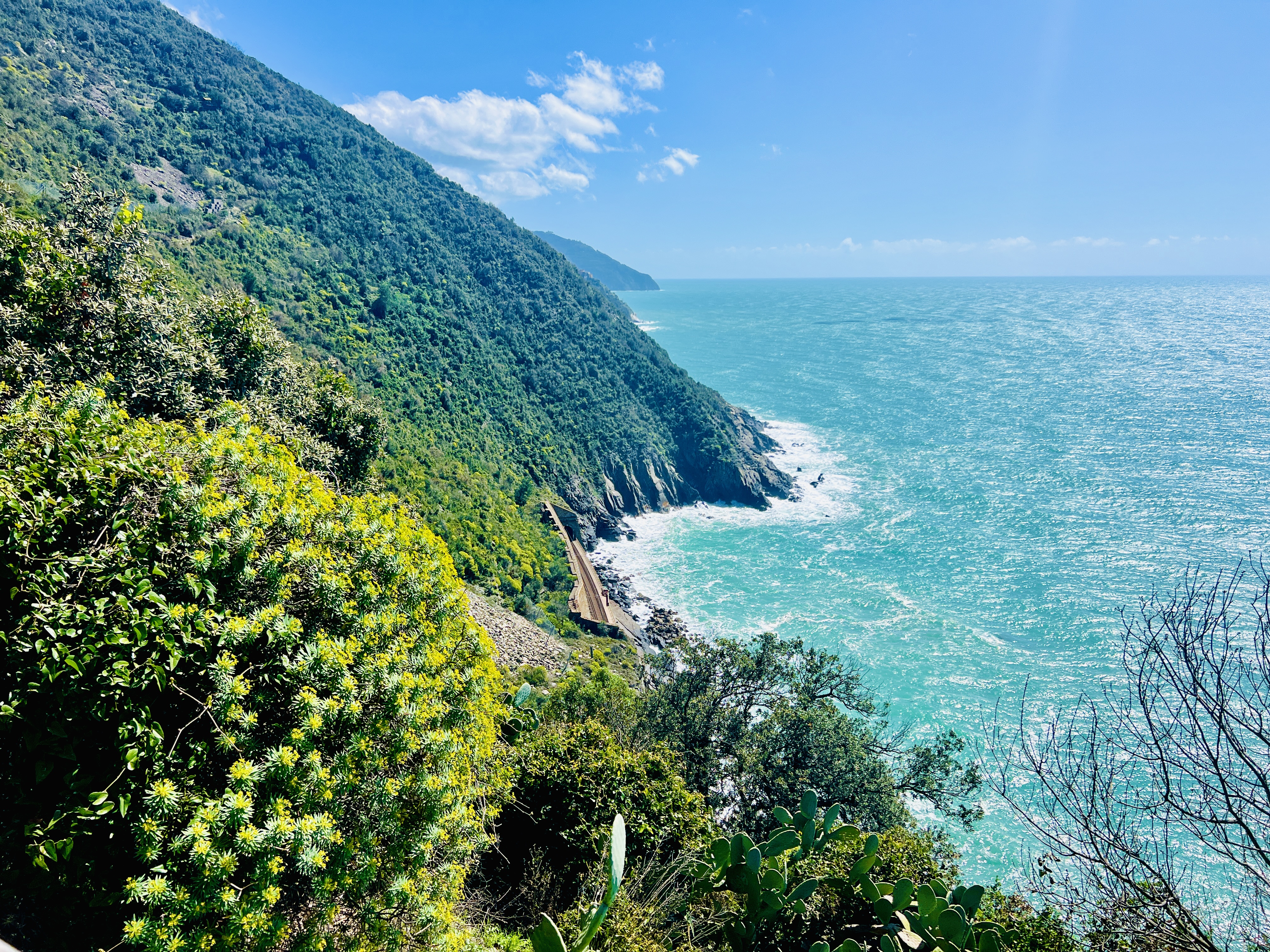 It took us 4 trains, 5 hours and some brisk hustling across Florence, Pisa and La Spezia stations to make our tight connections between trains, but we started catching glimpses of the Mediterranean by early afternoon, and shortly we were pulling into Monterosso del Mar, our base for the next couple of days. No bags or children were misplaced in the journey, so that was a success. The train trips were comfortable, relaxing and so much better than driving – so we’ll be looking to factor these into more of our trips going forward.