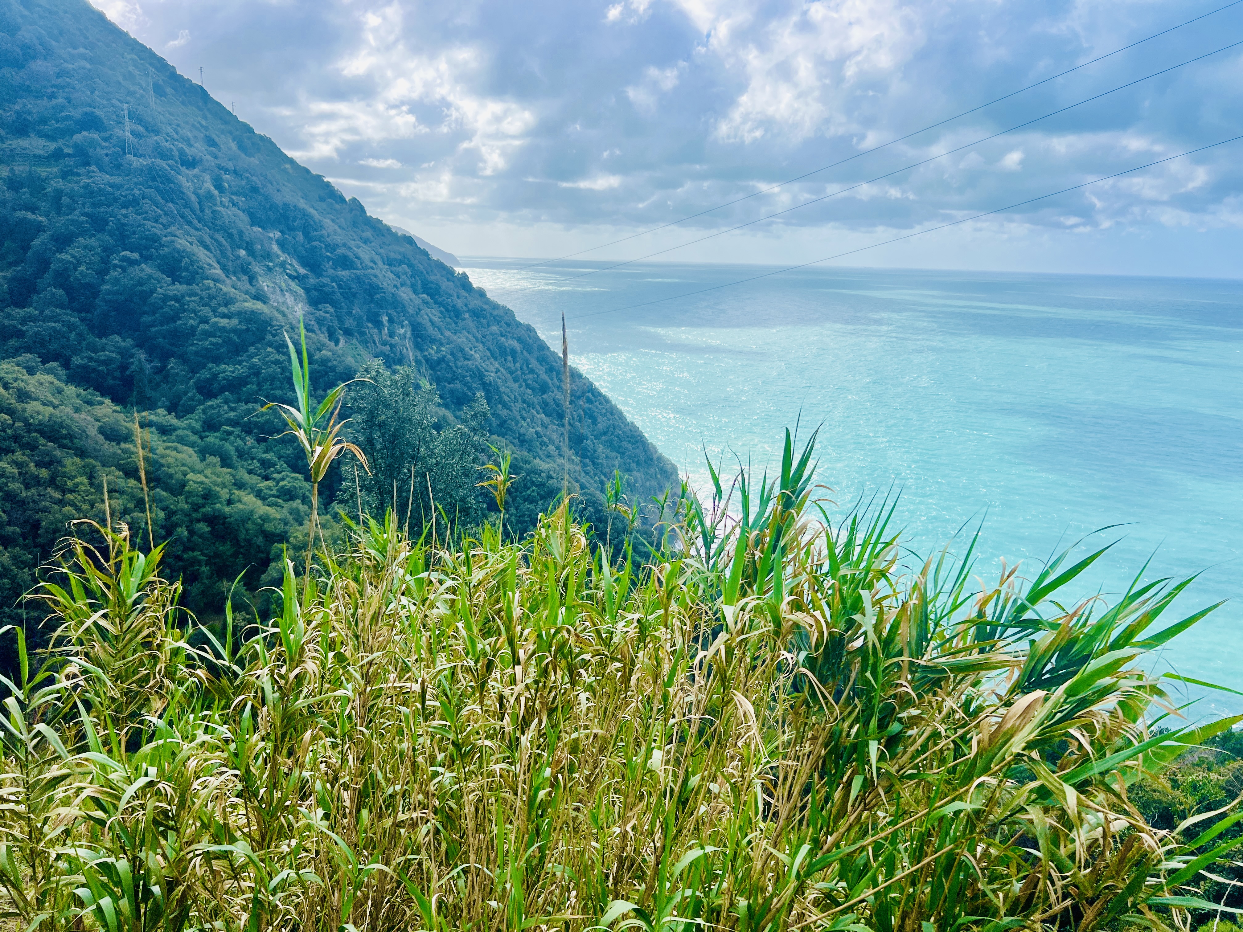 Having made our way back into Manarola we spied other humans for the first time since leaving Riomaggiore and spirits lifted. We connected with a different trail that made its way back up and over the ridge towards Riomaggiore and the much promised lunch. This trail was better sign posted and better maintained, and had a few people on it. It climbed steeply out of Manarola and had amazing views across both the hinterland and the coast beyond, before making its way back down to Riomaggiore over a 5km stretch.