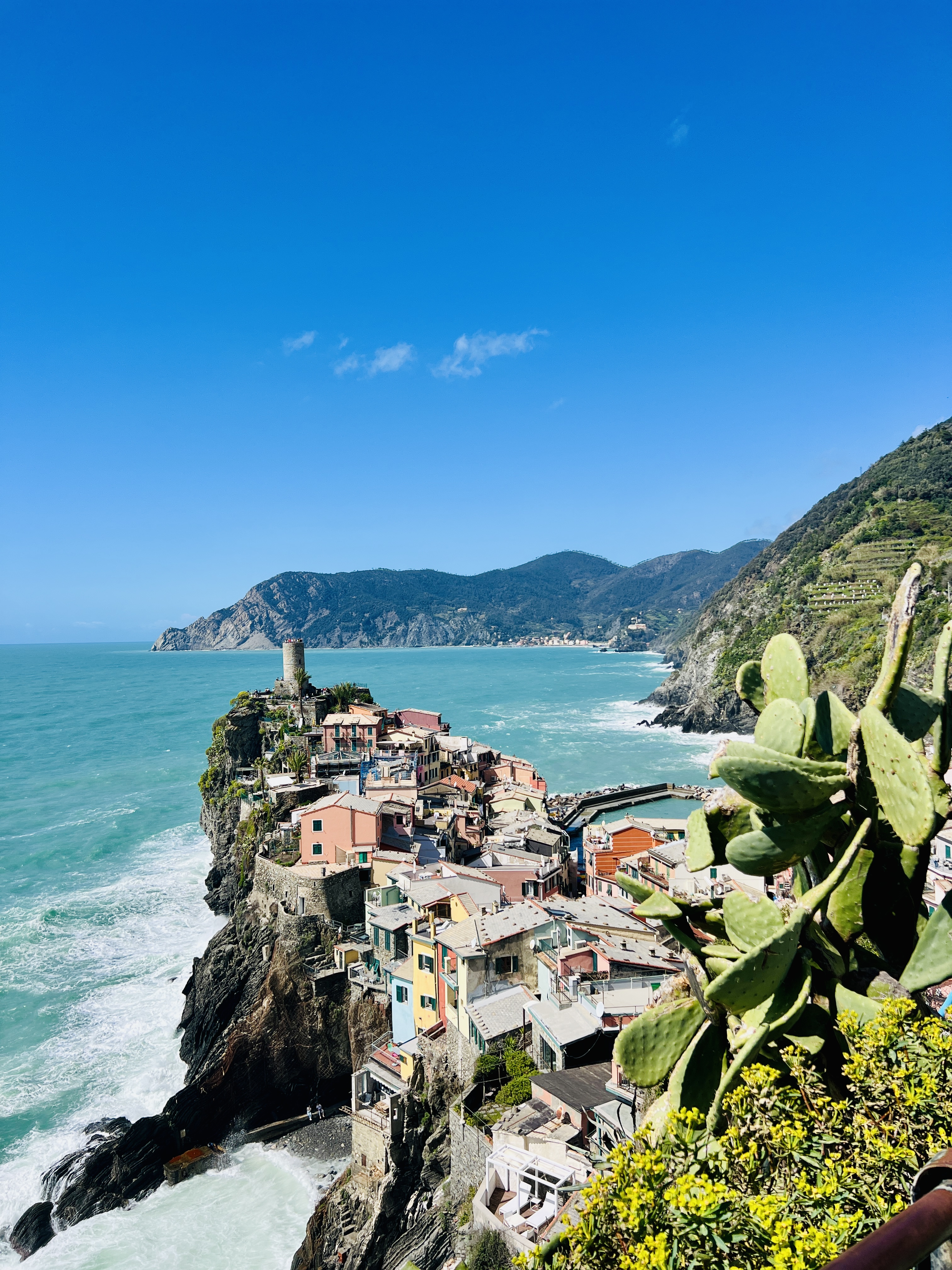 Cinque Terre is famous for its 5 picturesque villages nestled within about 15 kms of each other and connected by walking trails (and trains) that meander along the stunning coastline between them (think Bondi to Bronte coastal walk but with beautiful hilltop villages rather than 1960s apartments between them).