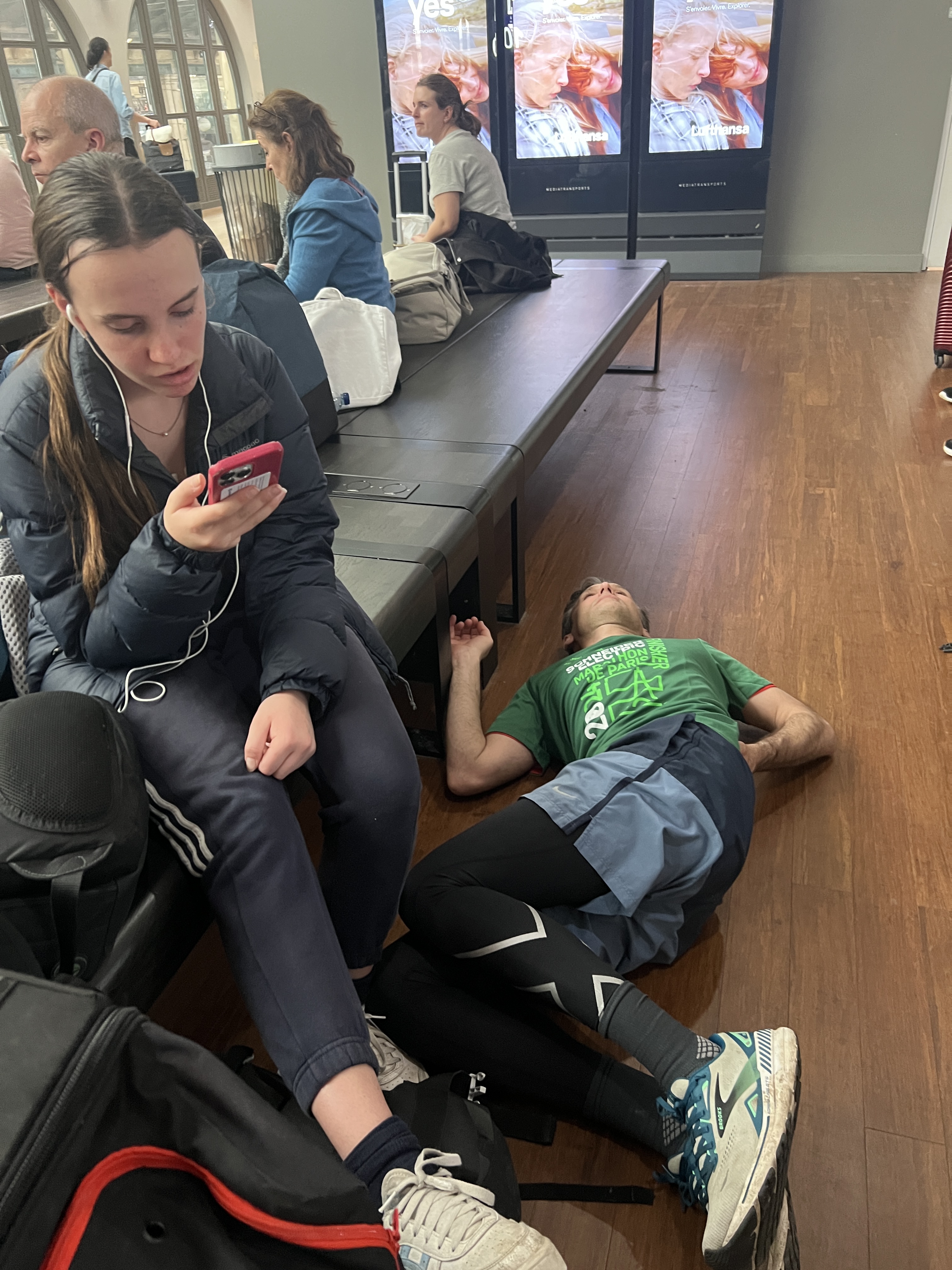We all met at Liverpool Street Station for the girls’ first trip to Stansted Airport. Immediately, Ant was given Liz’s bag – meaning that he was now carrying his own pack + day pack + Liz’s bag. Apparently independence only goes so far.