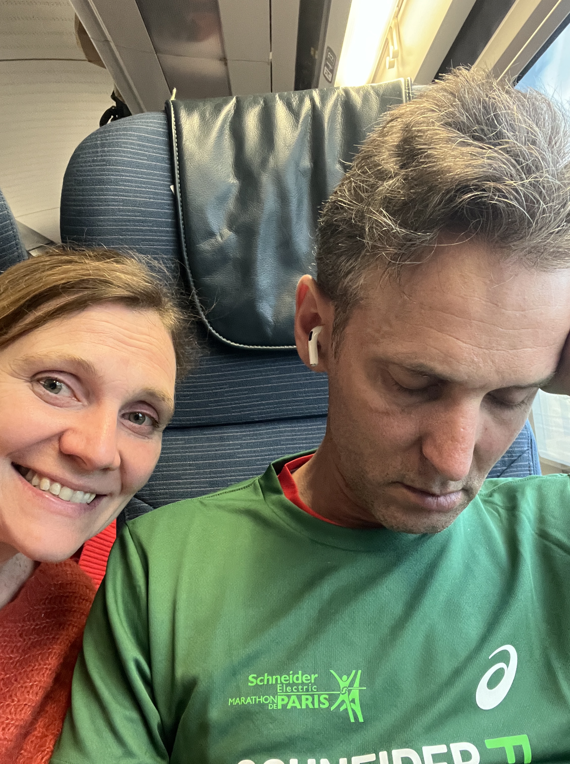 Finally Ant made it across the finish line, and as others collapsed and warmed down, he continued on without stopping, grabbing the medal and t-shirt and pushing into the packed metro station to get to the Gard du Nord. Warming down would have to wait until the Eurostar line – which attracted more than a few strange looks.