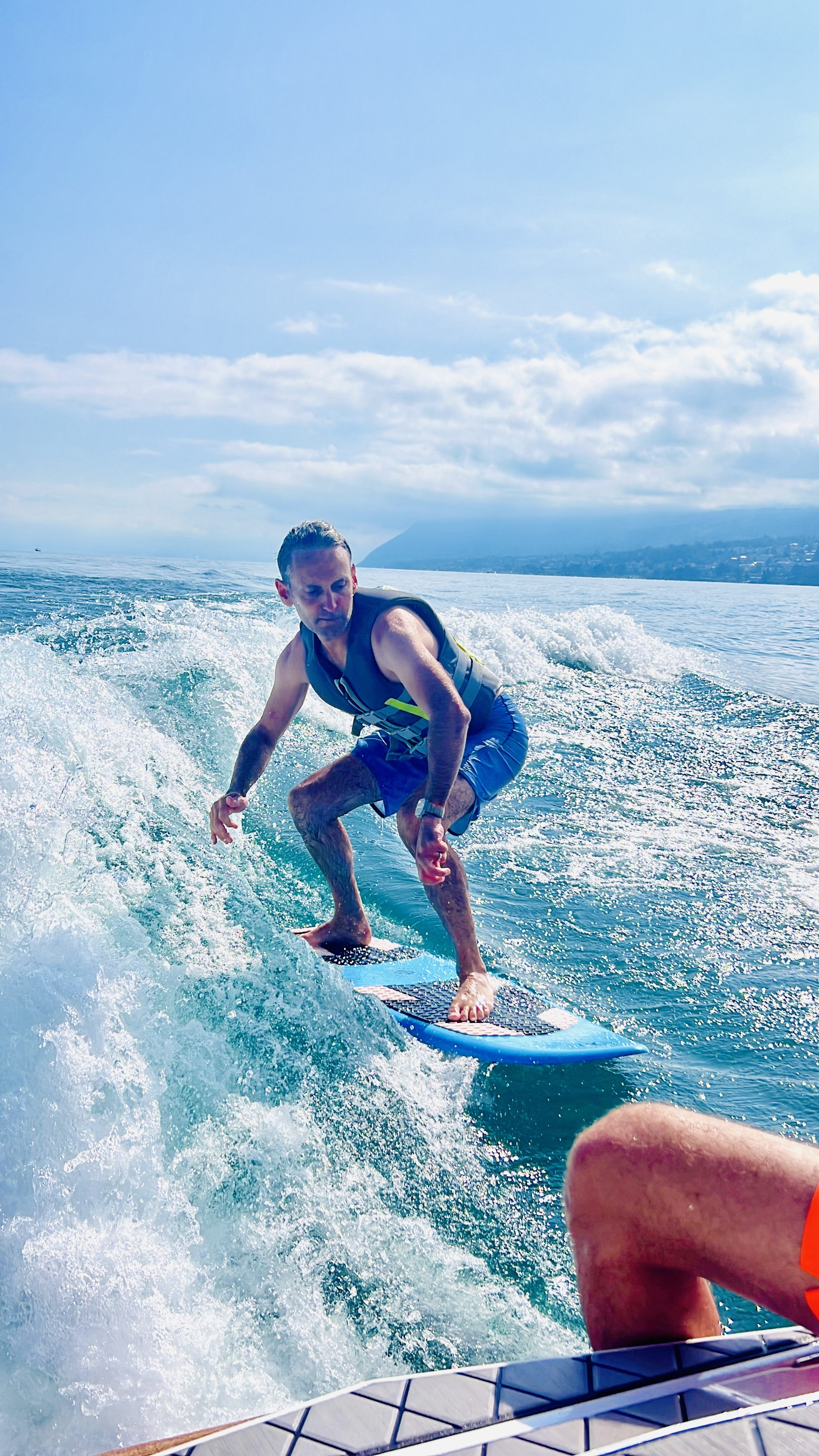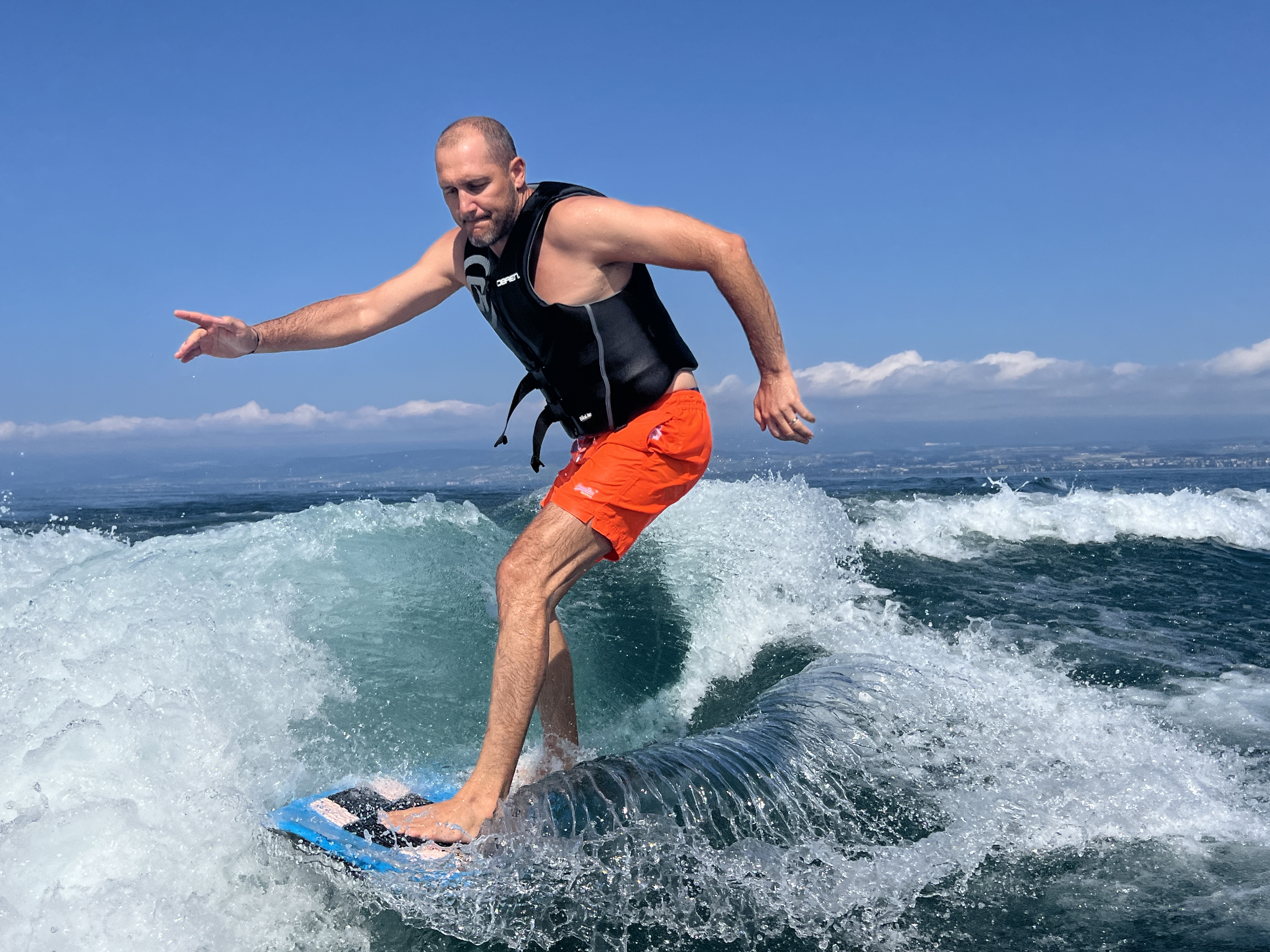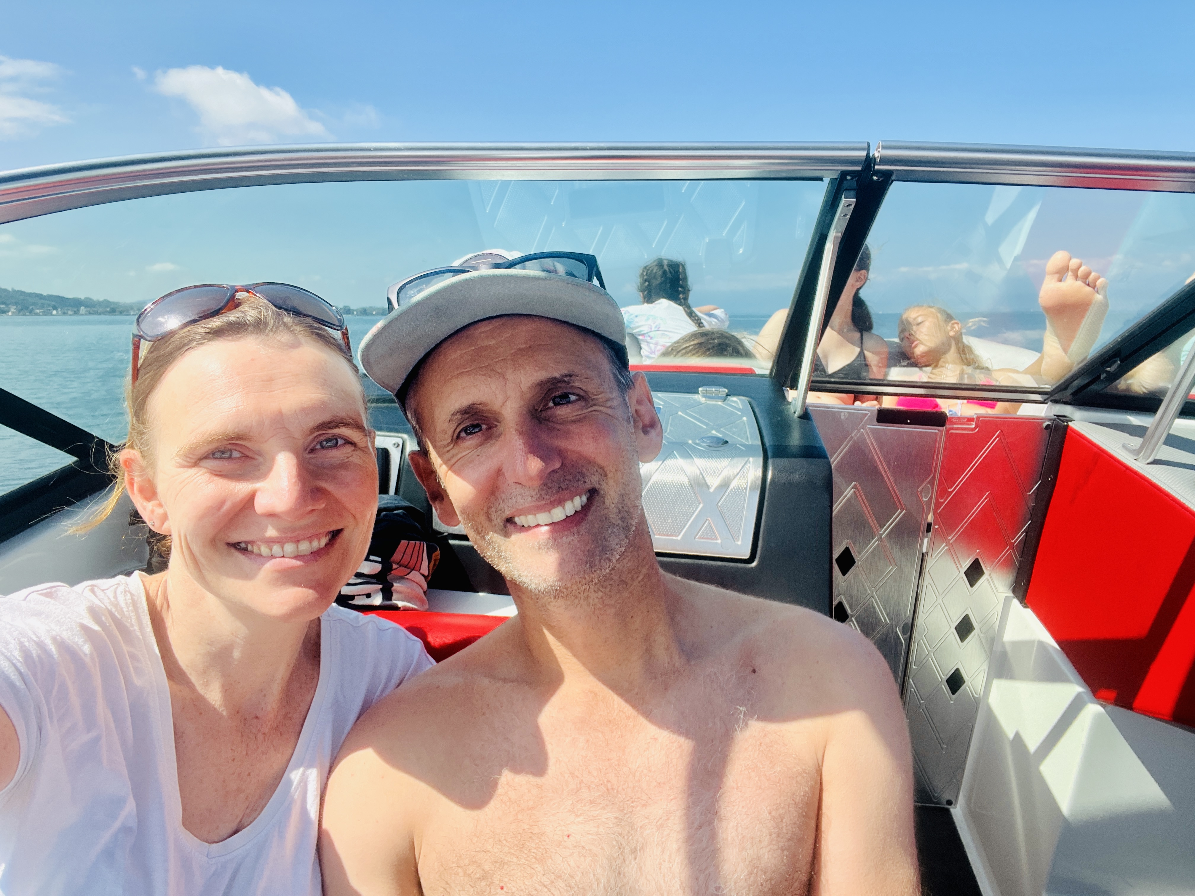 Despite the drizzly conditions, we were on their boat and on the lake within a couple of hours, and learning how to wake surf, with highly variable success. Once it did click, however, it was super fun.
