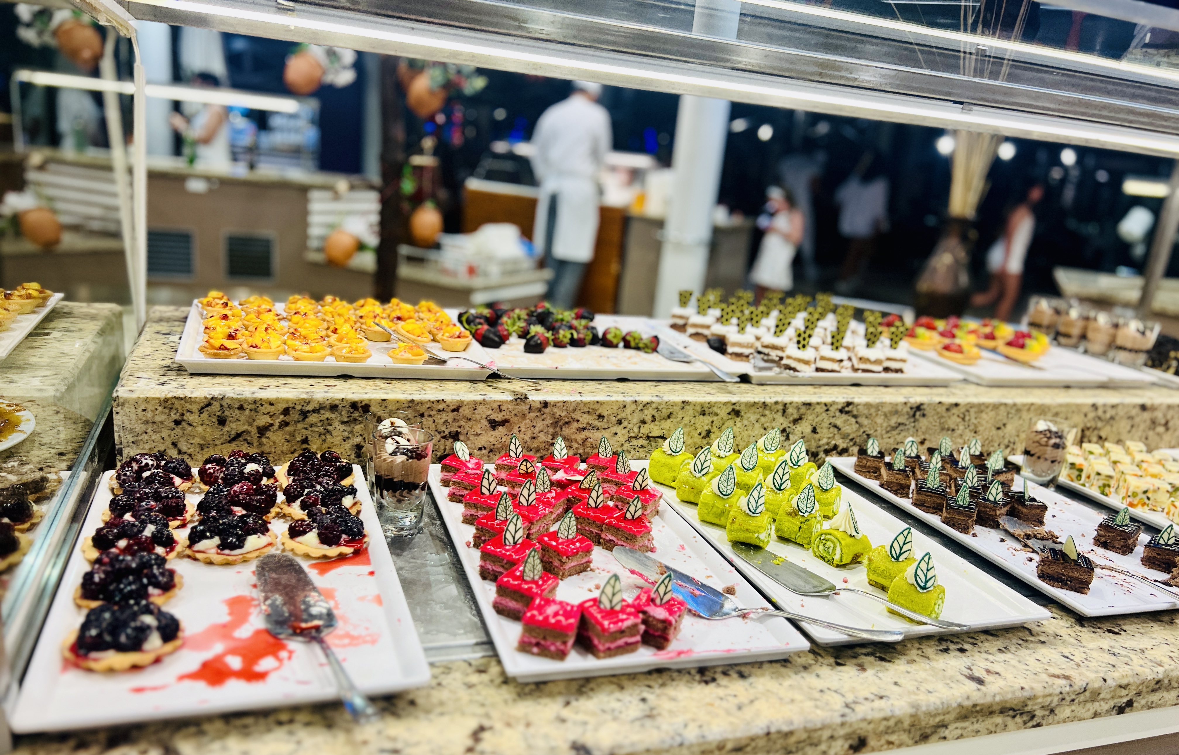 6. The food is like nothing we have ever experienced – the sheer variety and quality of the food at both the buffets or restaurants was incredible. Freshly BBQed fish, steak, amazing fresh fruit and vegetables, local cuisine, sushi, sashimi and freshly made pasta all hit the buffets at various times and never ran out. French and local desserts, not to mention the bread. All accompanied by decent free wine, good cocktails and amazing fresh juices, mocktails and coffee meant we were absolutely spoilt for choice.