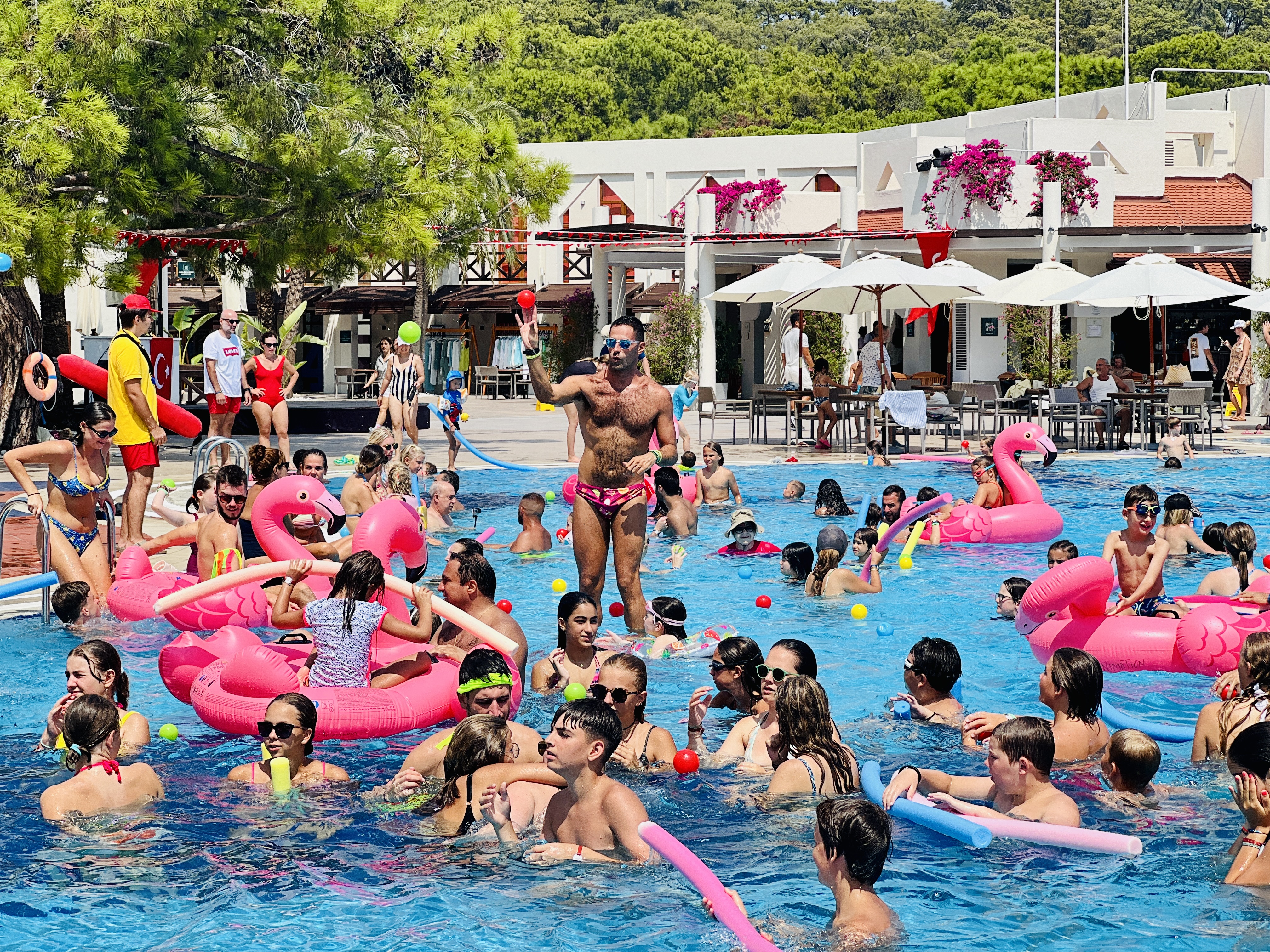 4. The ‘GOs’ are the key to success – the place is operated by two types of staff members. The GOs are the 100+ ‘front of house’ animators who run the reception desk, the kids/teenage clubs and all the activities. The ‘back office’ staff run the kitchens, hotel, gardens etc etc – these guys are basically all locals. The GOs are from around the world (including many local Turks) and are selected due to their skills (for example in archery or circus arts) and their personality (think friendly, engaging and very hard working) plus their ability to get up on stage 6 nights a week and perform – whether it be in the nightly shows or in the club). They are working 6 days a week and something like 16 hours a day, with a few breaks in the middle. It’s pretty reminiscent of Disney staff. It’s tough, but the fact that everyone we spoke to was doing multiple seasons, and often at multiple resorts, suggests its also pretty good fun. GOs run the activities, compete against GMs in competitions, eat with GMs in the restaurants and then perform at night (which is kind of funny – by the second night, you can’t help but play the ‘that dancer got Jessie her kayak today’ game). They are key to creating the ambience of the resort – if you want to a dress code theme to catch on, it’s no bad thing having 100 fit young 20 somethings interspersed in the crowd dressed in theme; likewise if you want to create a ‘spontaneous’ dance party around a pool or in the club.