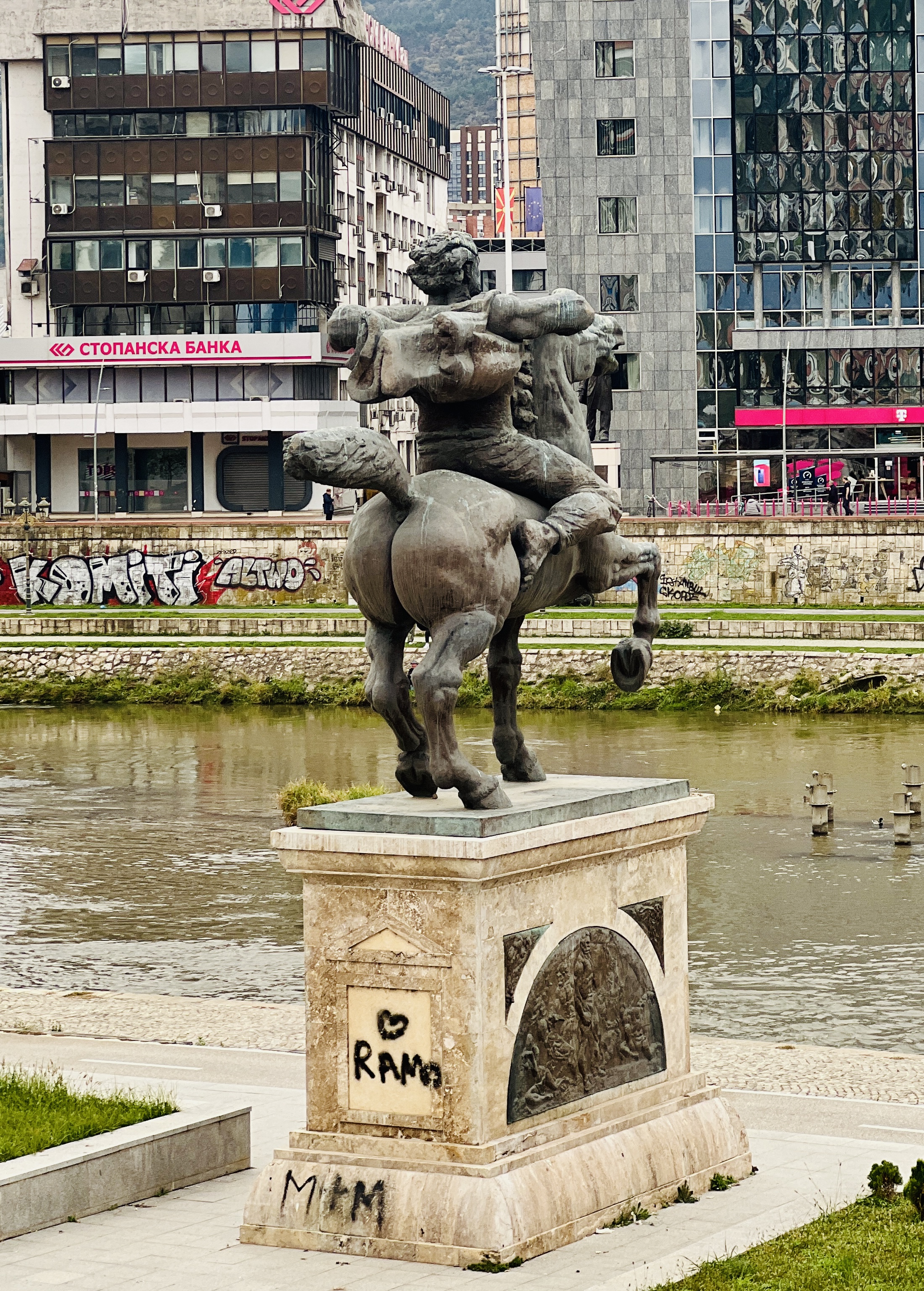 Fair to say that Aleksander was not a man to mince his words. His opening salvo was around why the statue of Aleksander the Great in whose shadow we were standing was now to be referred to as ‘the mounted horseman’ or similar as the locals had signed away their claim to Macedonia or Aleksander in a recent agreement with Greece. Macedonia was now forever to be the claim of Greece, and Aleksander the Great was forever to be referred to as the (anonymous) mounted horseman. And the country needed to add “North” to their name.