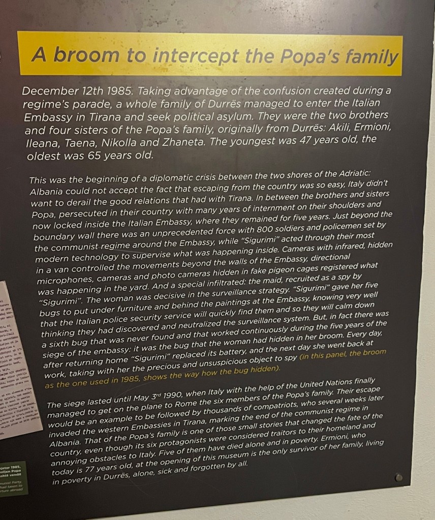 For the uninitiated, Albania since WWII was in the communist sphere of influence but not part of Yugoslavia, led largely by a psychotic hardliner by the name of Enver Hoxha. Over time, Hoxha fell out with Russia in the 1950s (I think finding them both a bit soft and not Stalinist enough) and aligned with China until the 1970s. It was still a hard core communist state into the 1990s after the fall of the Berlin Wall – and one of the poorest countries in Europe.