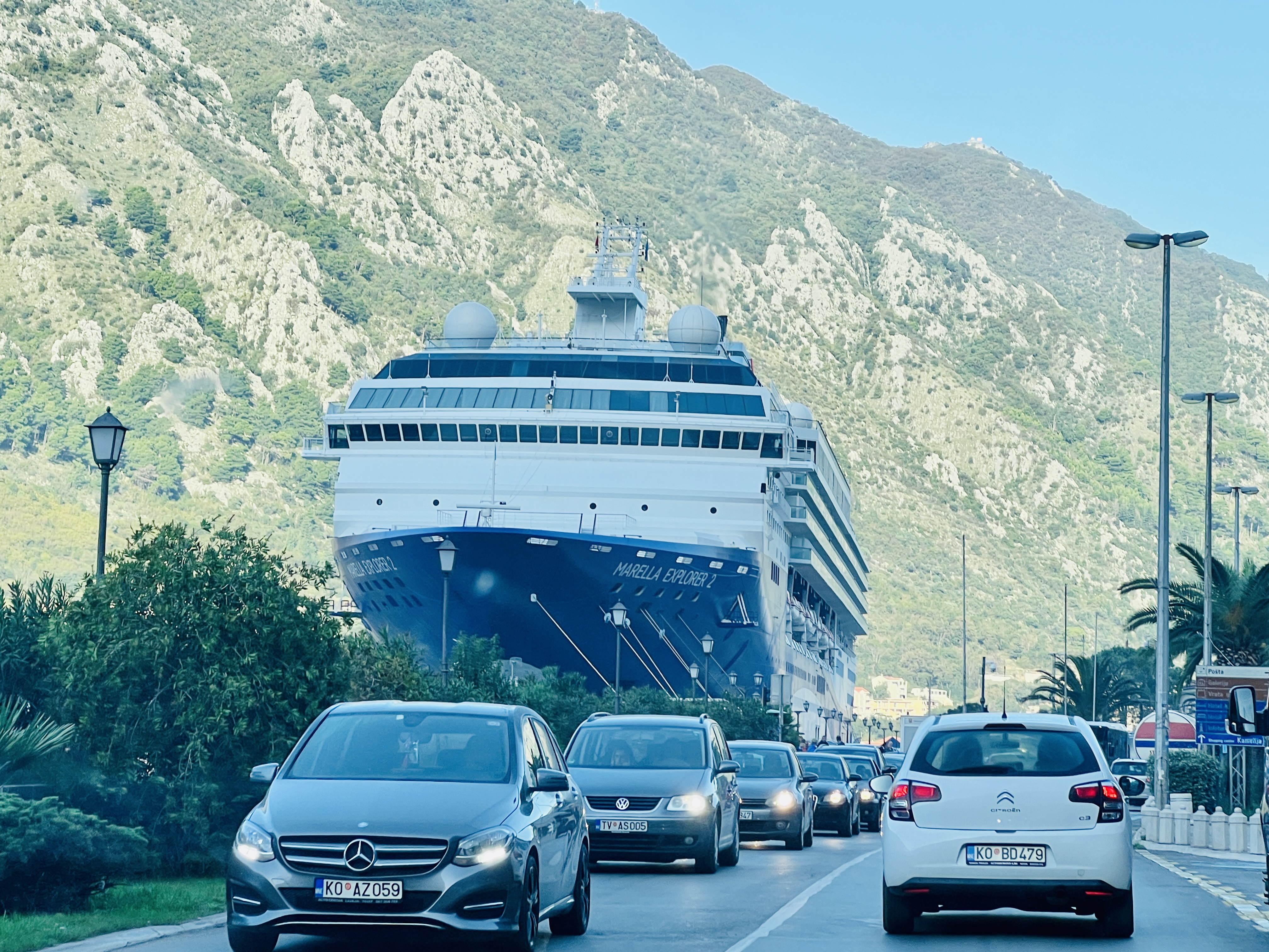 We arrived and checked in, the kids immediately melted into screens and we had a drink on the balcony overlooking the bay, looking slightly nervously across at the cruise ship towering over the port and the old town.