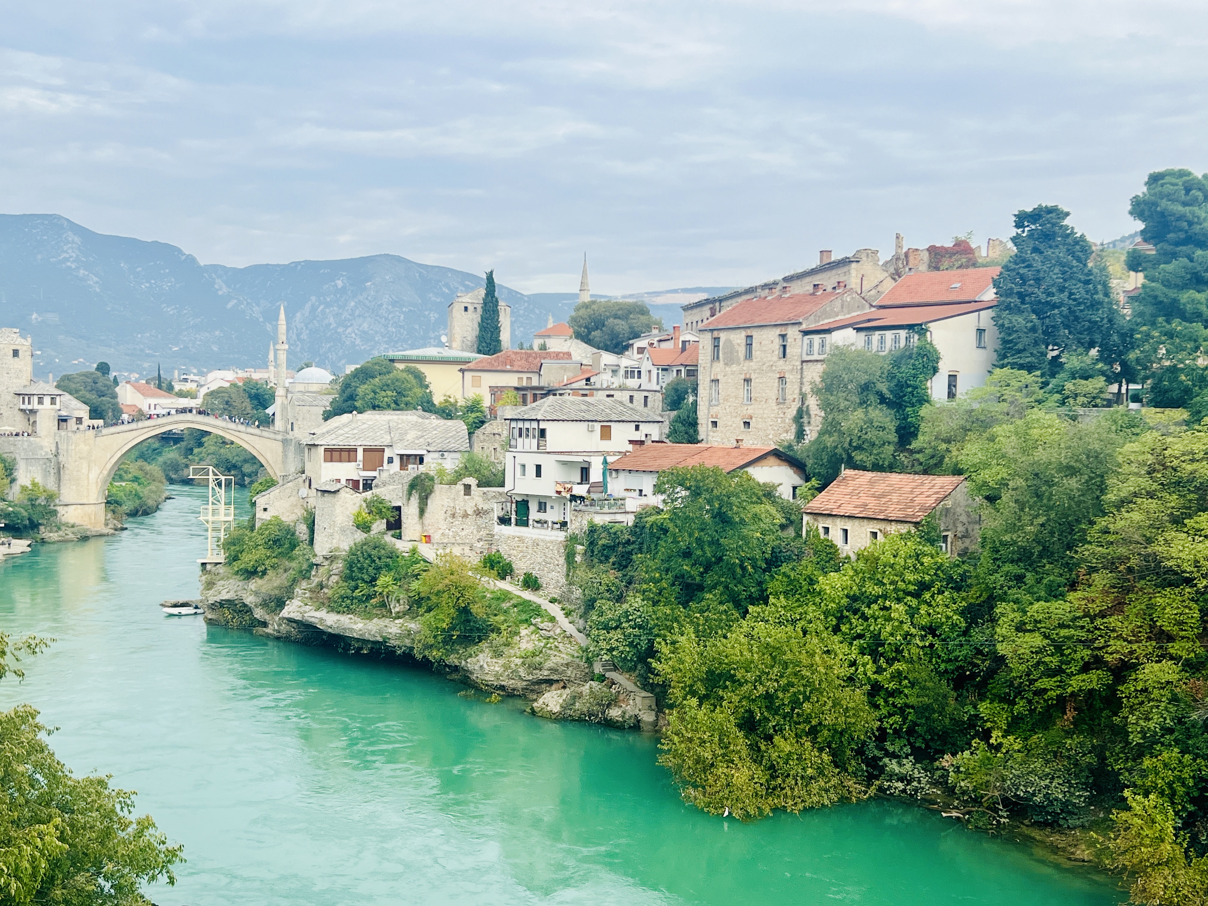 Our apartment here is in a prime position – directly overlooking the old town with its minarets, church towers and even the Stari Most. In the evening, the church bells compete with the call to prayer for the population’s attention – this is the first time we had the privilege to hear both of these things at once, and it seems to summarise the region.