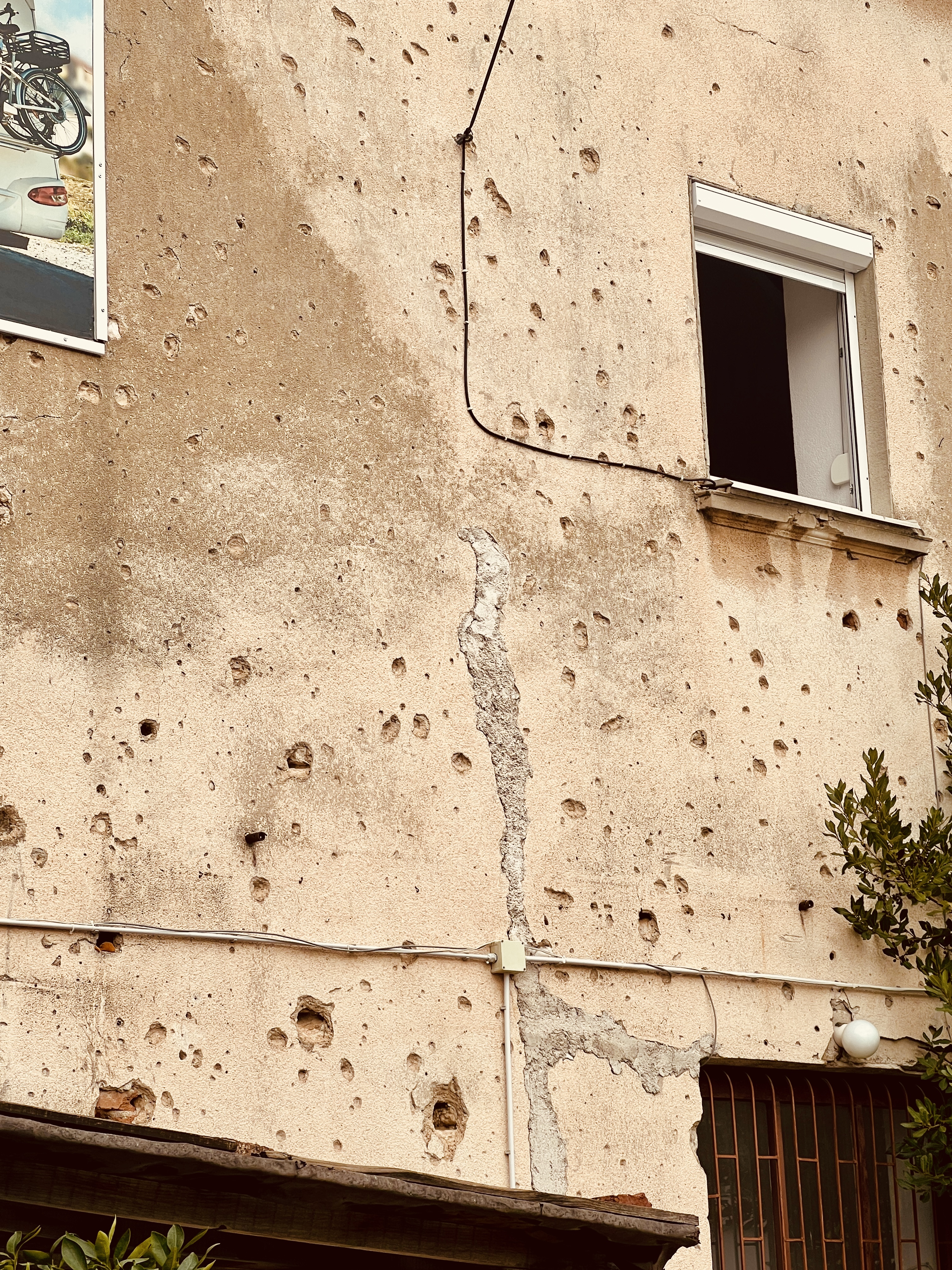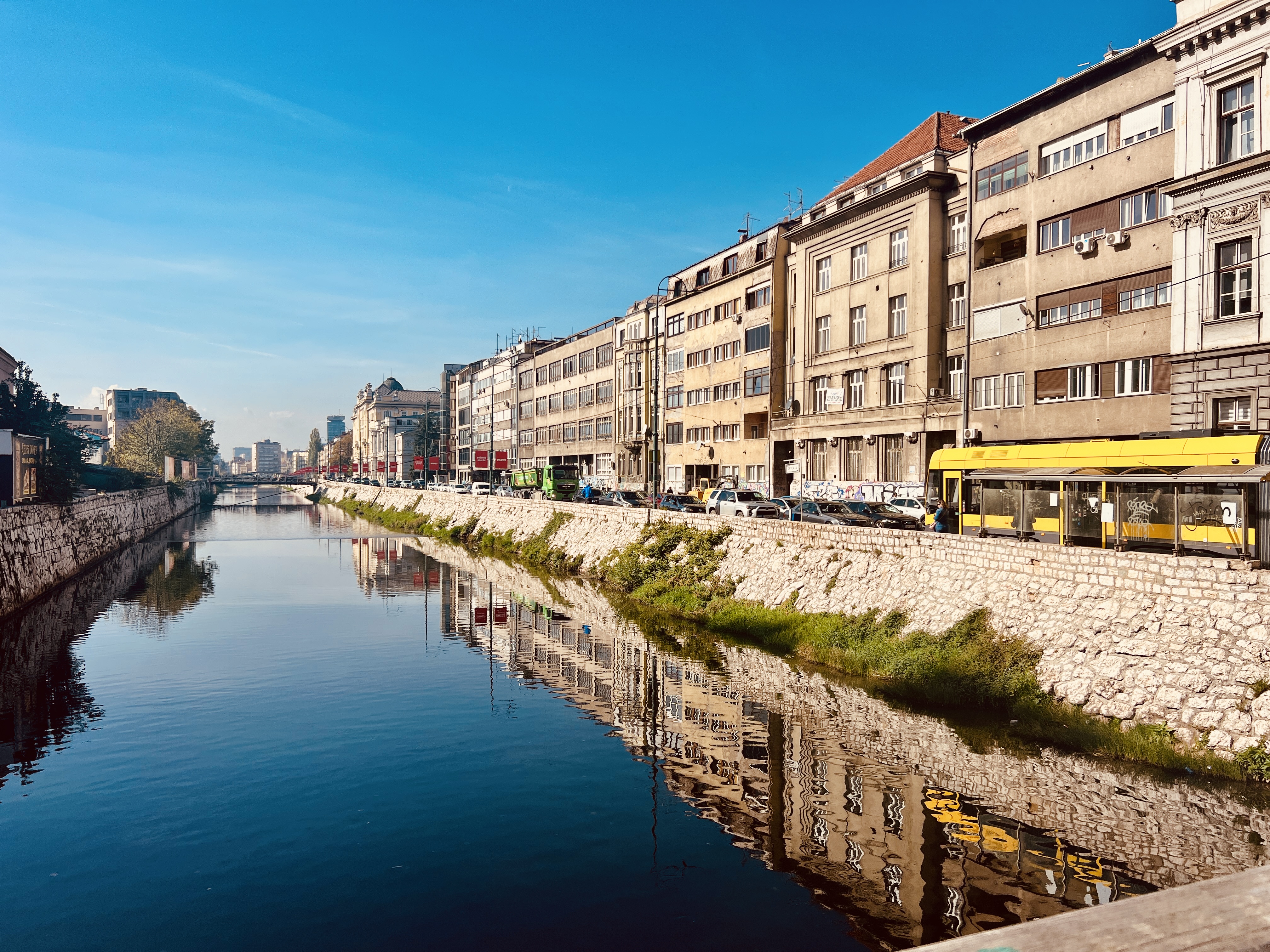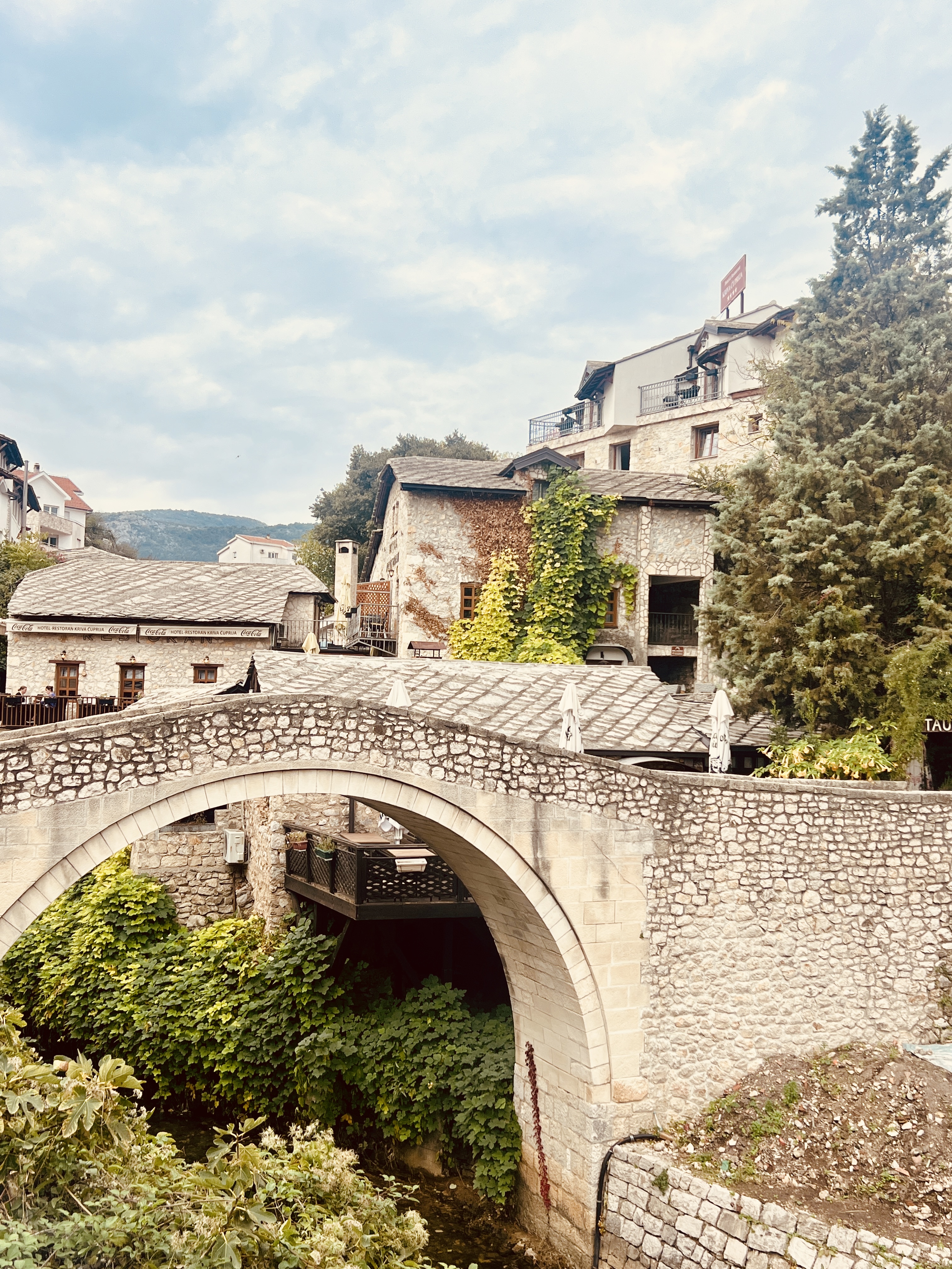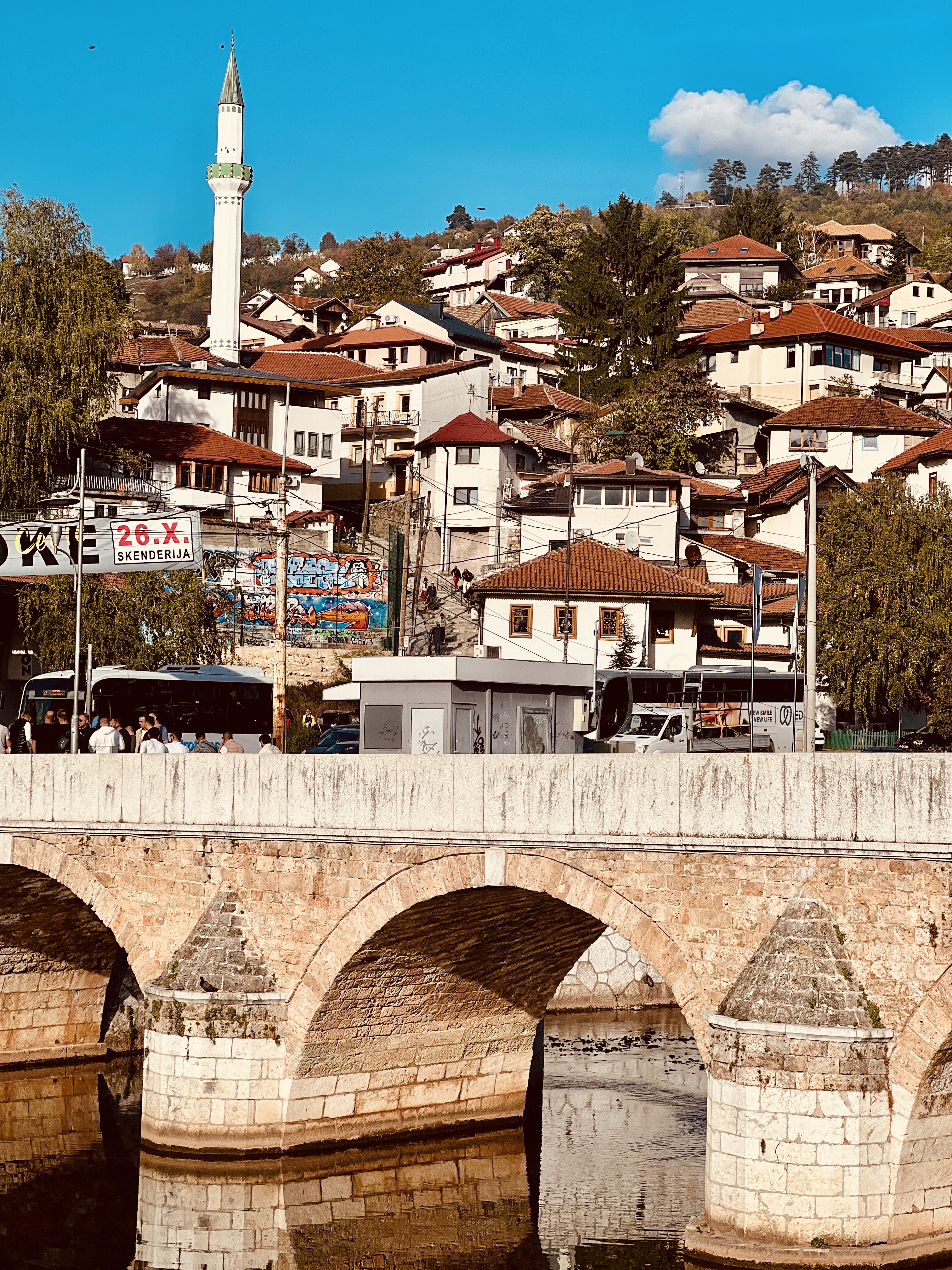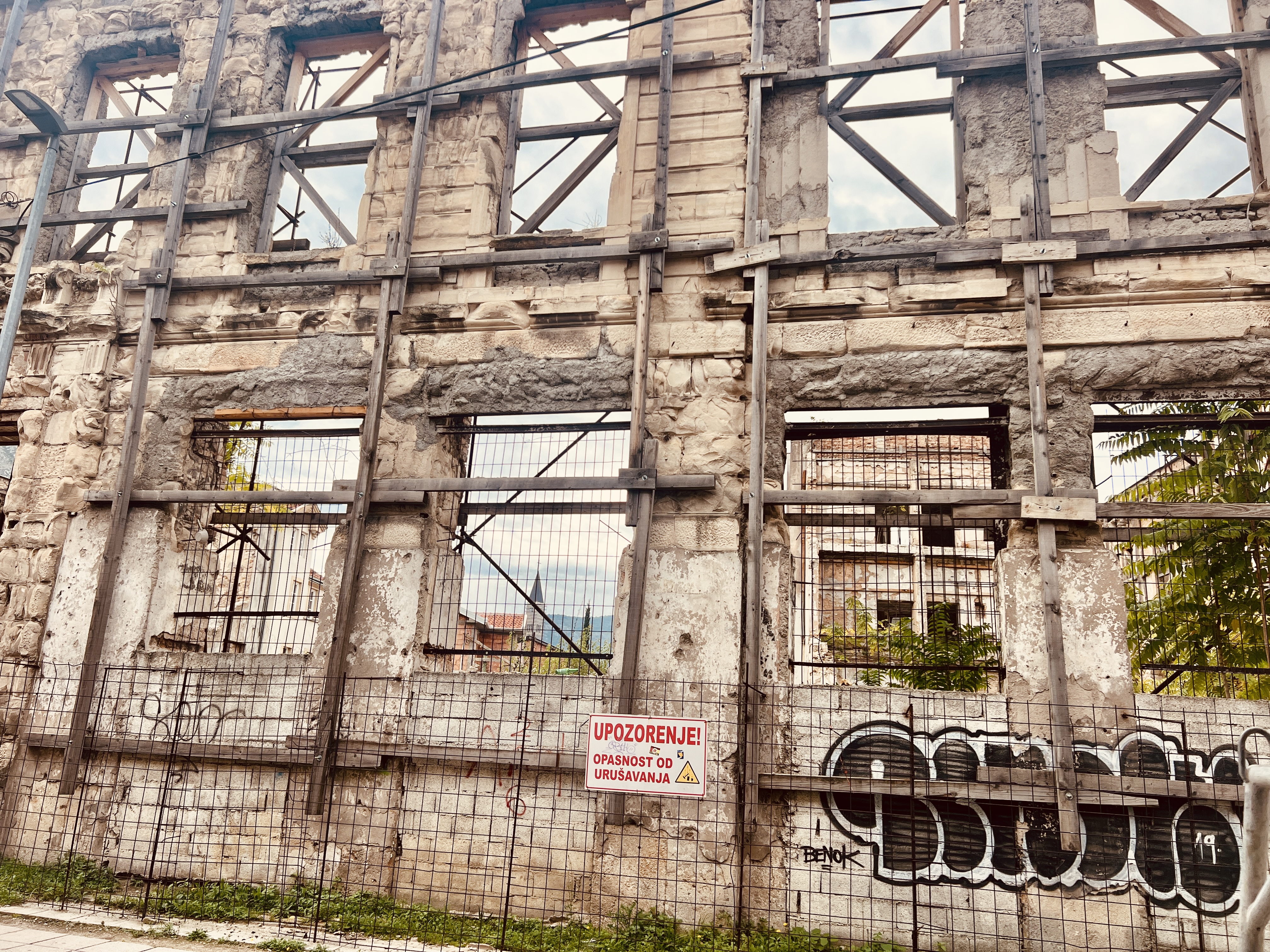 the minute you walk outside this small area of mosques, bridges, castles and fast flowing streams/rivers you quickly get to pock-marked buildings, scaffolded facades and ruined buildings – the sign of the war are still very much front and centre here.