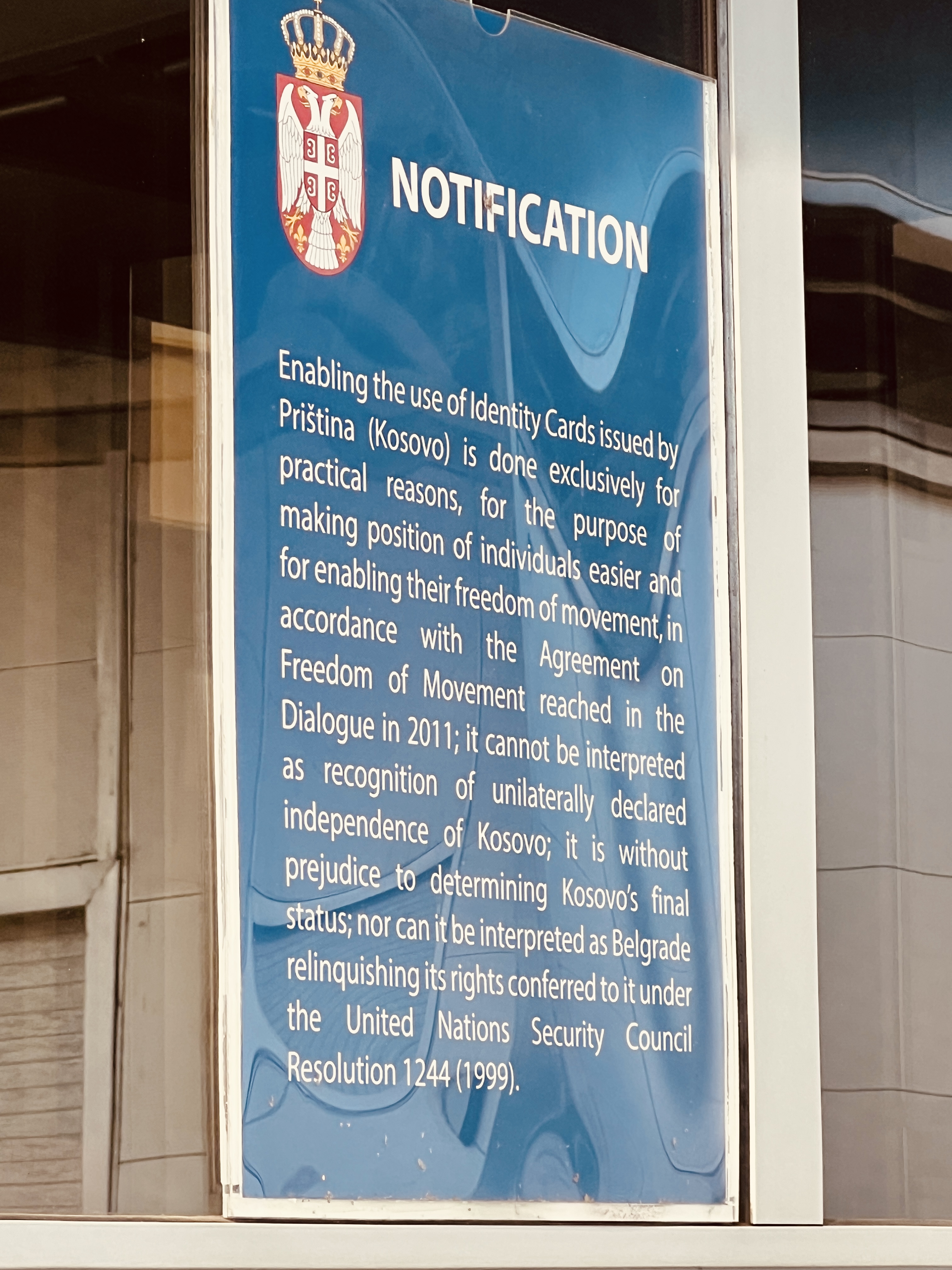 The first thing we saw was a sign noting that Serbia would accept Kosovan ID cards, but this should not be taken as an acknowledgement of Kosovo as a separate country. The conflict continues to this day.