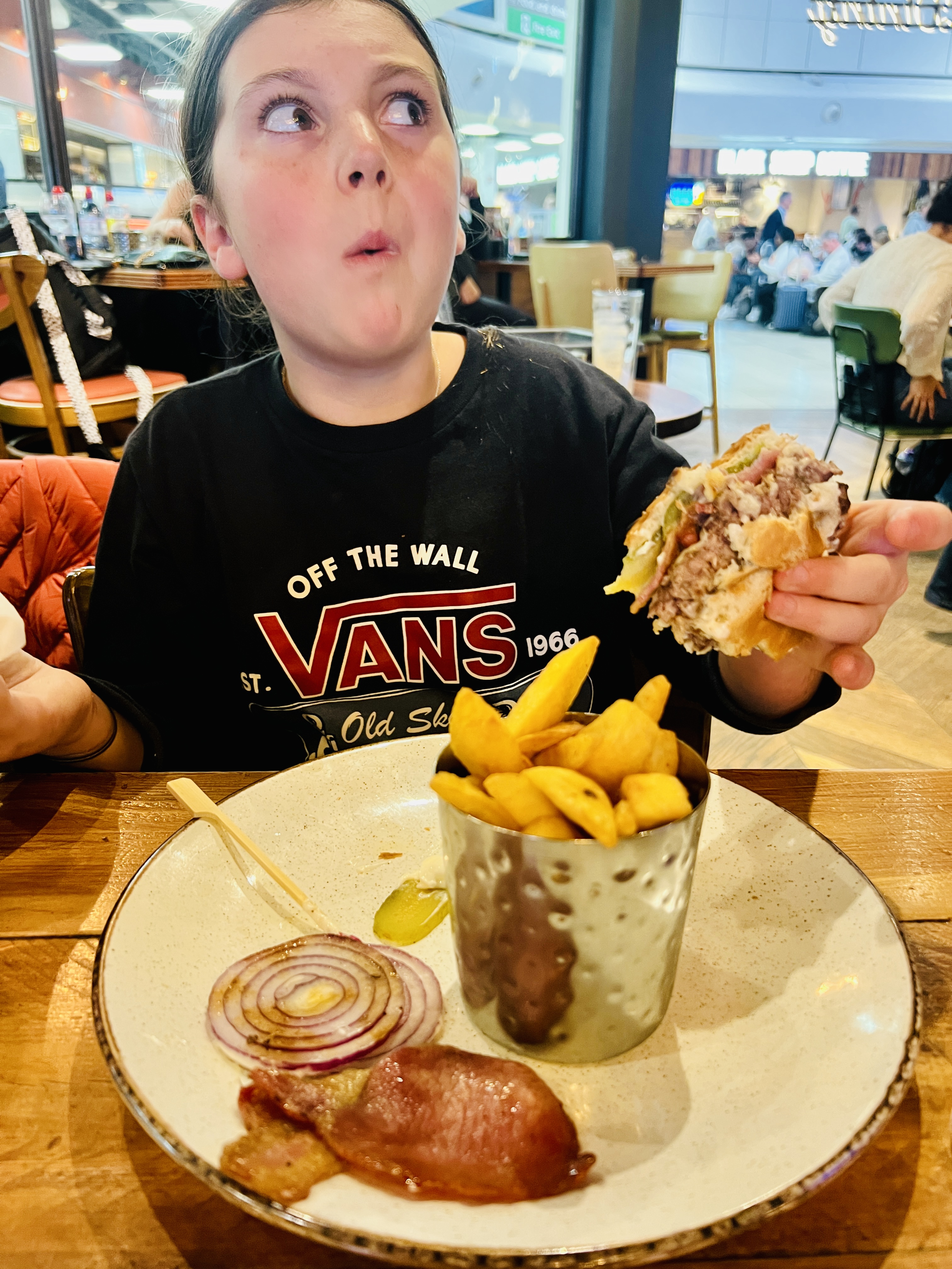 We sat down at a reasonably priced pub after security and had, according to the kids, ‘the best burger they’d ever had’.