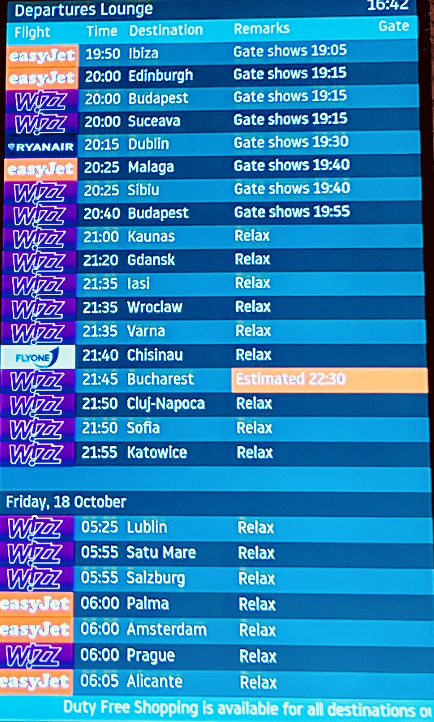 We made our way to the gate, formed an orderly and efficiently moving line with a largely Balkan looking crowd. Clearly this route was targeted at the ‘Kosovans returning home’ rather than the ‘Brits Abroad’ crowd.