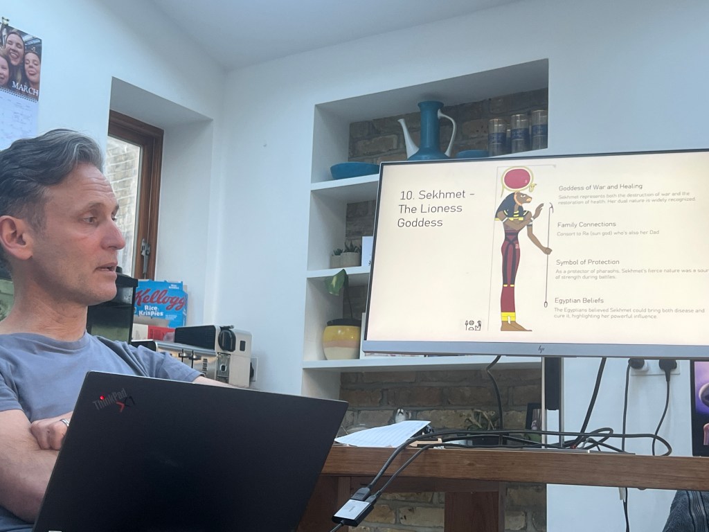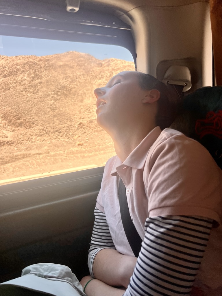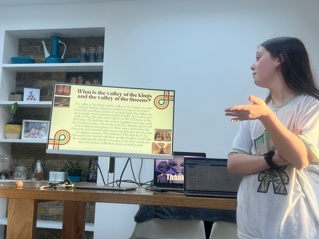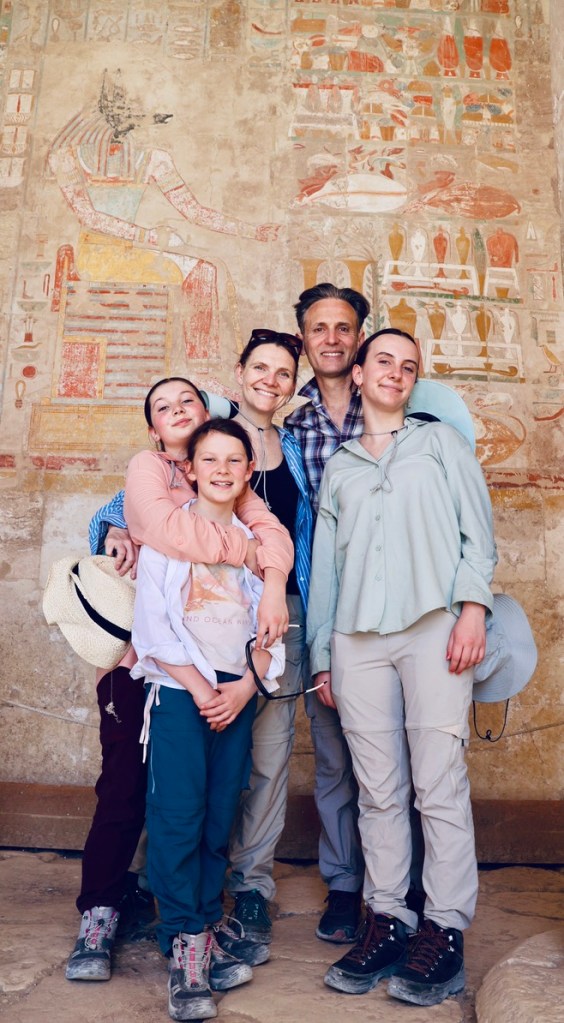 As has become tradition, family assignments were set, ready for a pre-departure presentation evening. Sienna chose Mount Sinai, Ellie the Pyramids, Jessie the West Bank and Hieroglyphics, Ant covered the gods of Ancient Egypt, and Liz the modern history of Egypt. Presentations were made, scored and feedback provided. Ellie won, with Jessie a close runner up. Ant was disqualified for overuse of ChatGPT (again).