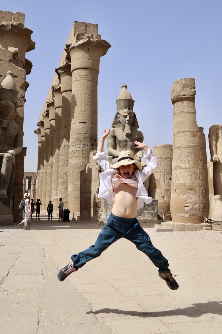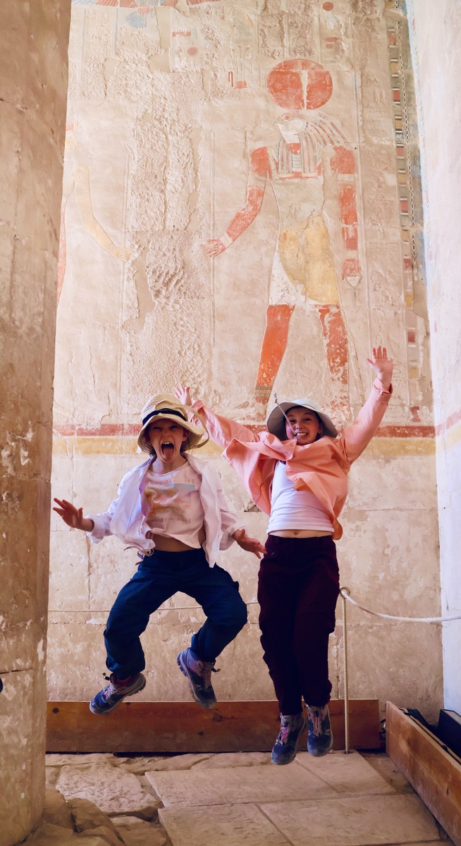 Hatchepsut managed to convince her peers that she was ‘reborn’ as a man and so was eligible to lead Egypt – we she did with significant success for 20+ years. Much of the art on the first floor of the temple tells of her life and successful voyage to Somalia. The girls – and Jessie in particular – loved the stories of Hatchepsut, mainly because she was clearly totally hardcore.